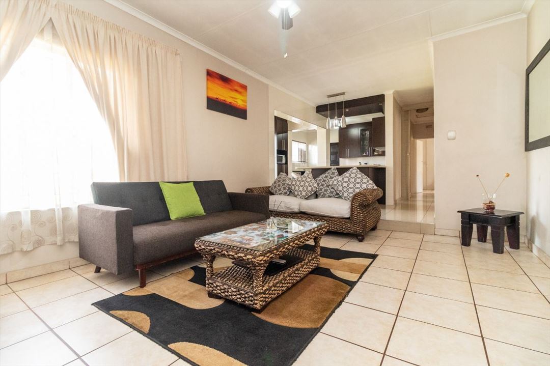 A spacious lounge and a separate dining room create ideal areas for relaxation and entertaining guests. The property includes three well-proportioned bedrooms, all fitted with built-in cupboards (BIC) to ensure sufficient storage. There are two bathrooms in total, including a main bathroom and a private en-suite attached to the main bedroom for added convenience.
