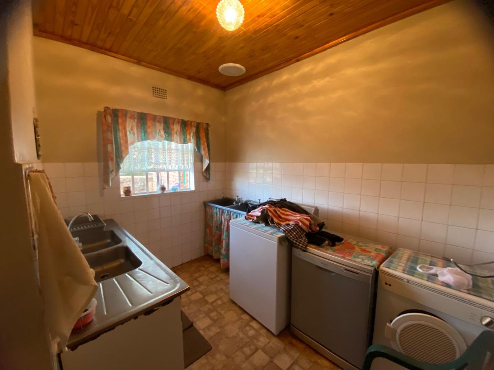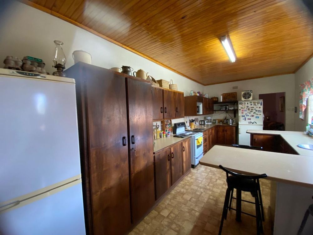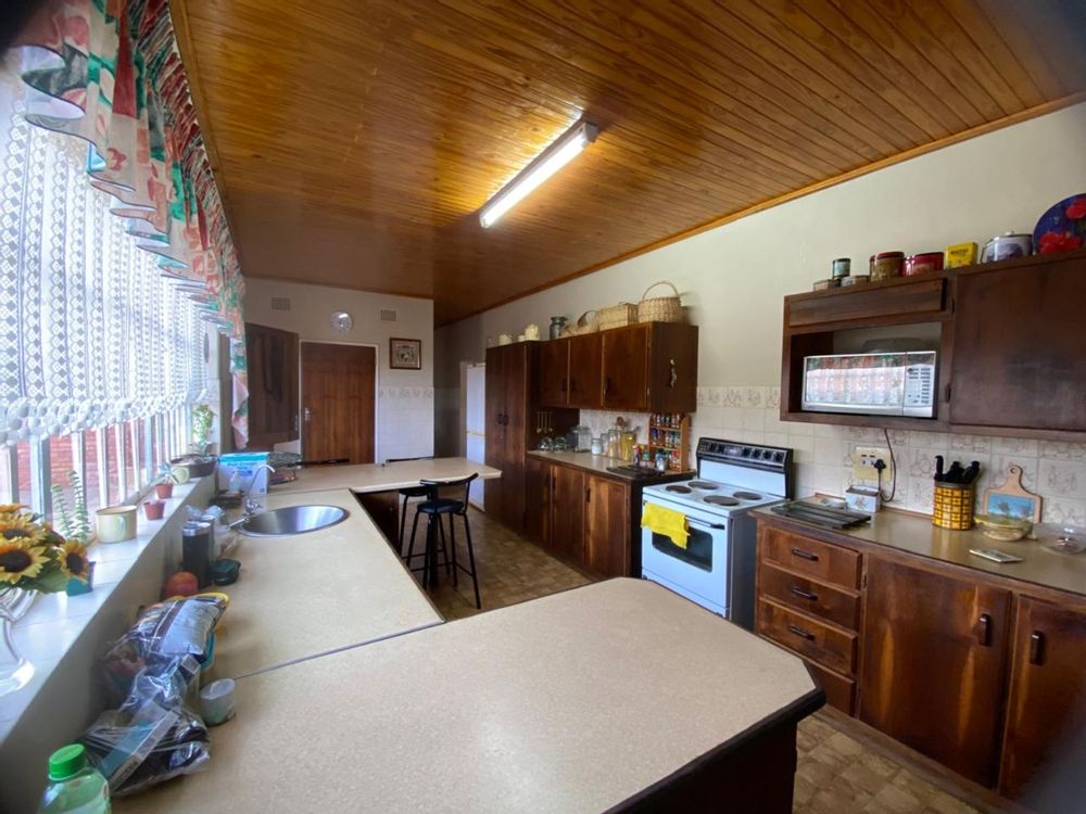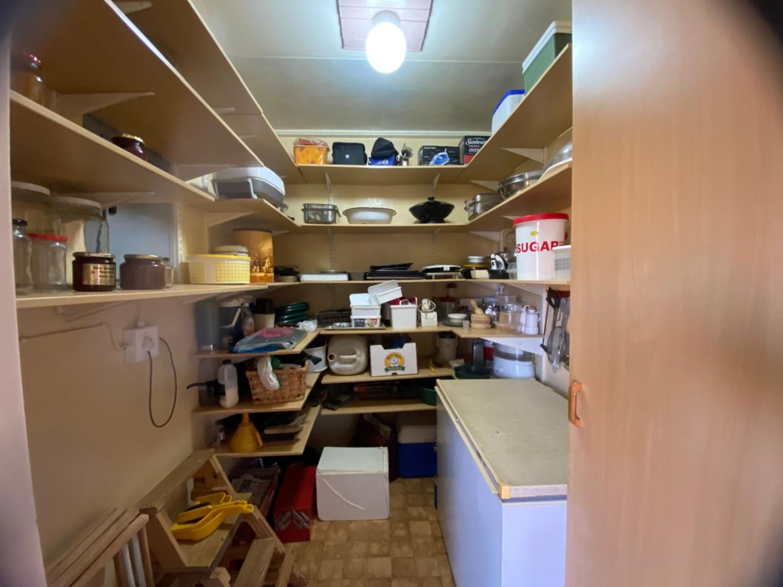 Kitchen with built-in cupboards, stove, scullery, and pantry