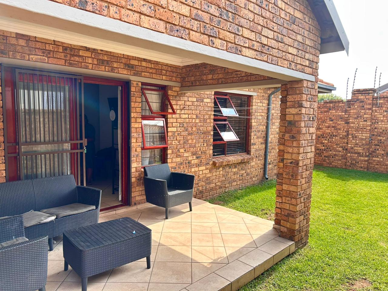 Sliding doors open onto a large covered patio with a built-in braai, creating an inviting outdoor space for weekend gatherings or tranquil evenings at home.