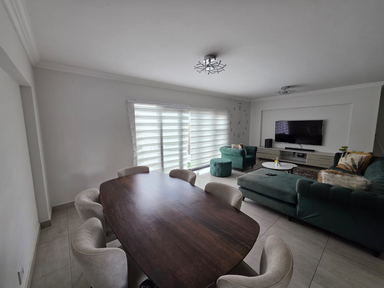Open-plan dining and lounge areas flow seamlessly into a private enclosed garden, complete with a built-in braai—perfect for entertaining.
