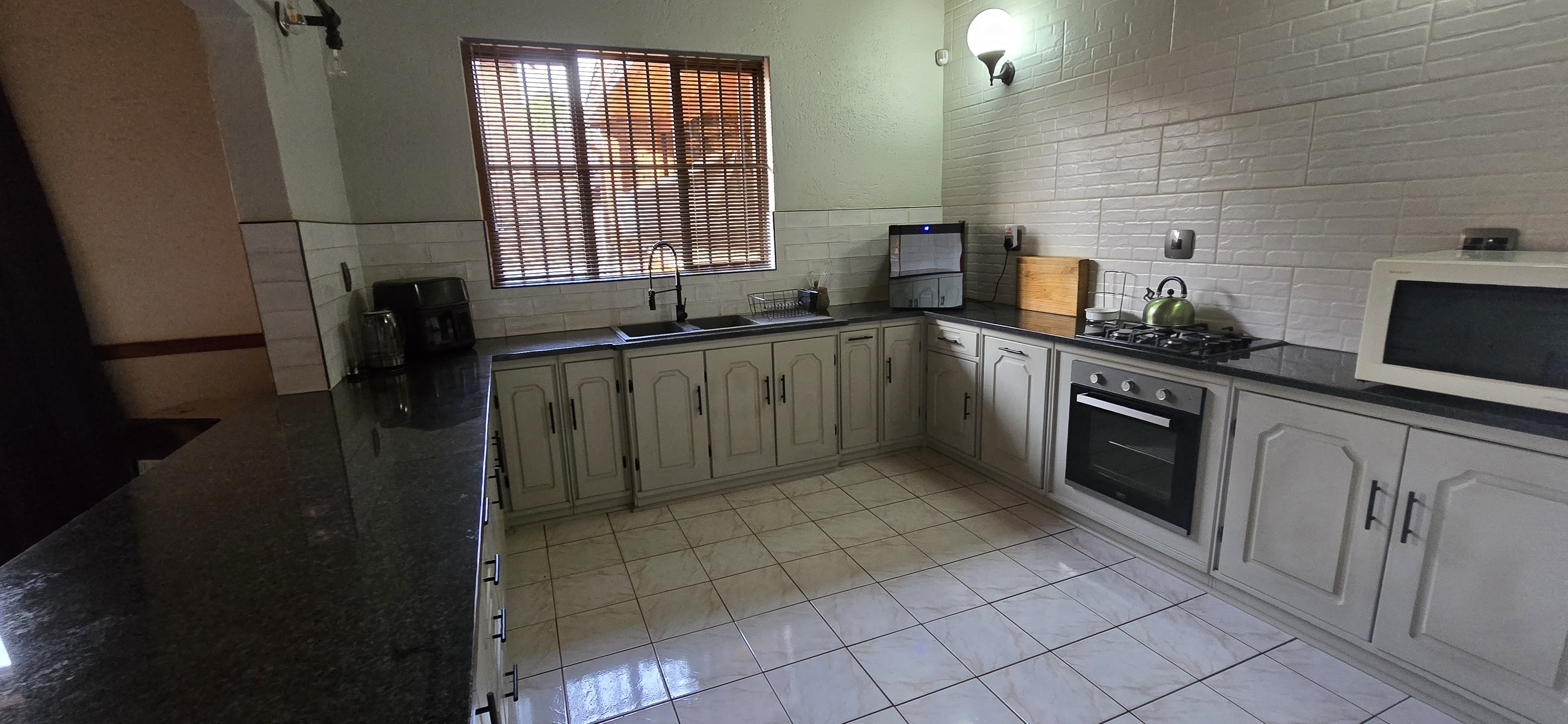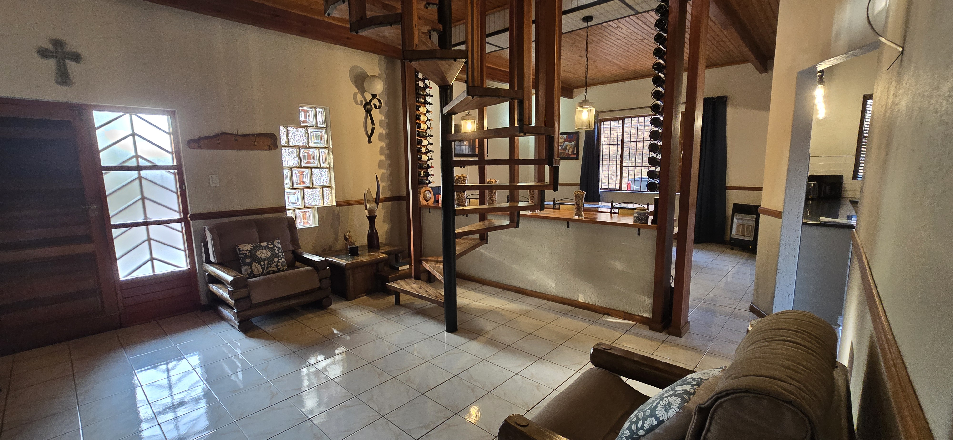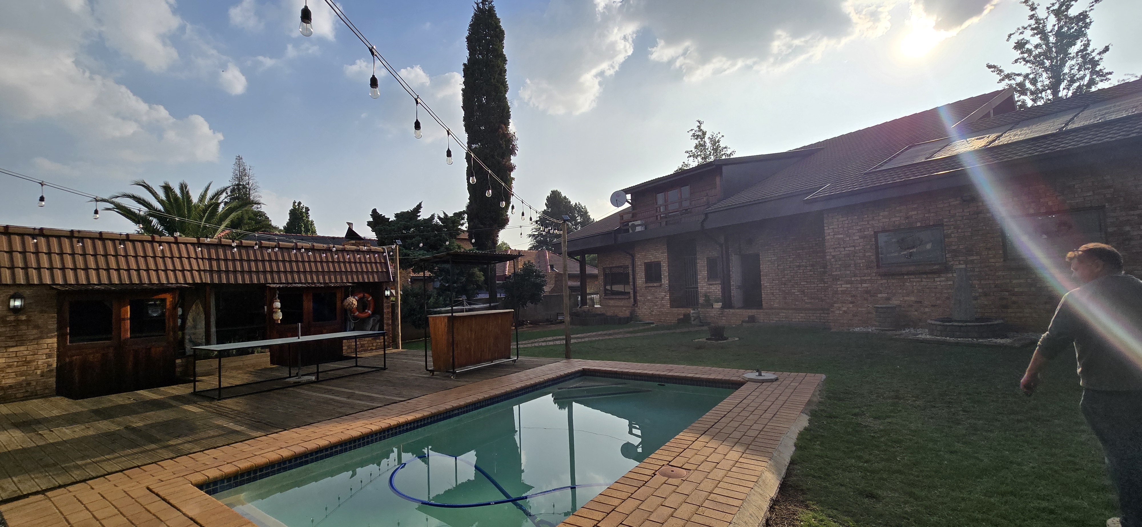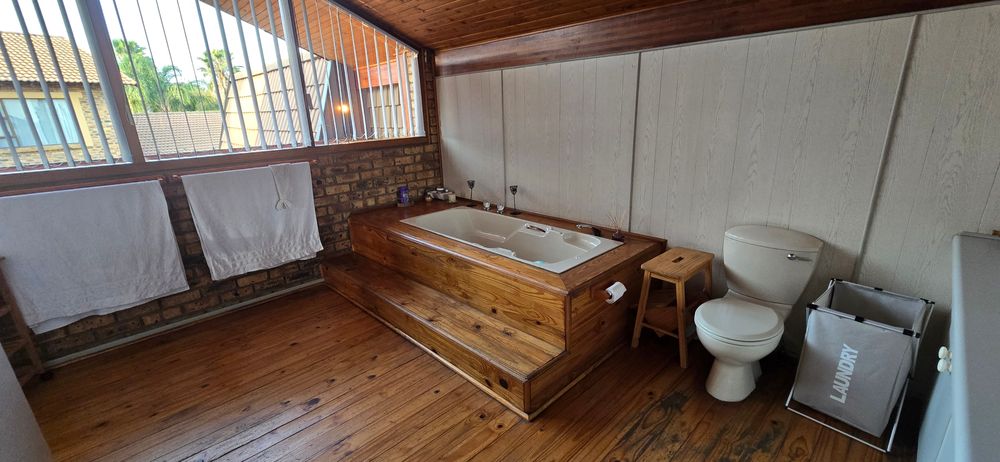 Step into this stunning 5-bedroom, 3-bathroom home designed for both comfort and unforgettable entertaining. Upstairs, you’ll find three bedrooms—all with air-conditioning and direct access to their own private balconies—including two with en-suite bathrooms. There’s also a lounge upstairs with a large balcony and a convenient storeroom. Downstairs offers a versatile layout with two bedrooms and a study that could easily be converted into a home office or even a flat, perfect for work-from-home needs or visiting family. The open-plan lounge and dining area flows seamlessly into a spacious kitchen, complete with generous cupboard space, a gas stove, separate scullery, and laundry for ultimate convenience. Entertainment is at the heart of this home! Step outside to your private swimming pool, a built-in braai, bar, and dining area—plus two additional toilets in the entertainment space—perfect for hosting friends and family in style. Parking is effortless with three carports for up to five vehicles, plus additional loft storage above the carport. Whether you’re looking for a family home, a space to entertain, or even the potential for a flat or home office, this property has it all. Don’t miss out—experience the lifestyle this home offers today!