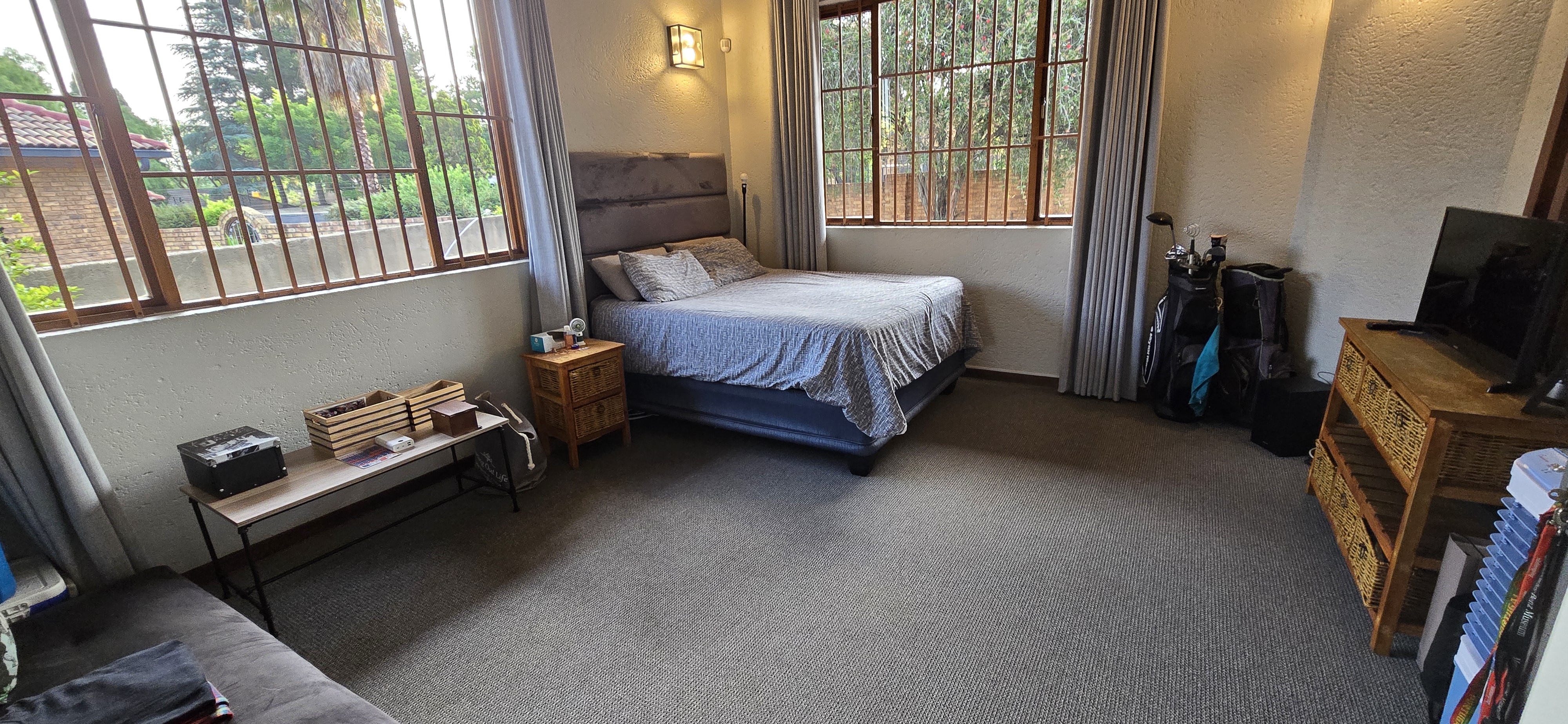 Downstairs offers a versatile layout with two bedrooms and a study that could easily be converted into a home office or even a flat, perfect for work-from-home needs or visiting family. The open-plan lounge and dining area flows seamlessly into a spacious kitchen, complete with generous cupboard space, a gas stove, separate scullery, and laundry for ultimate convenience.