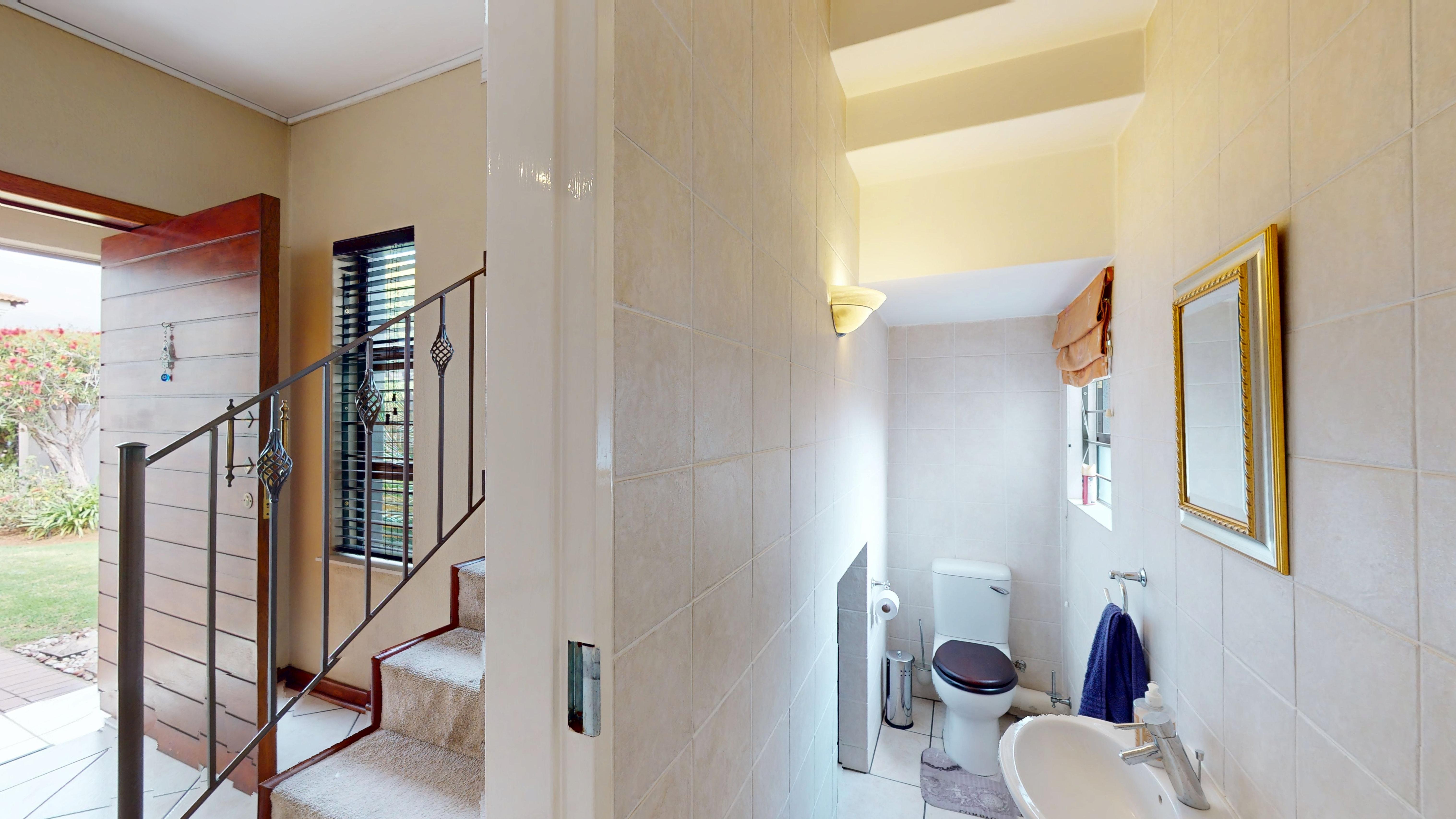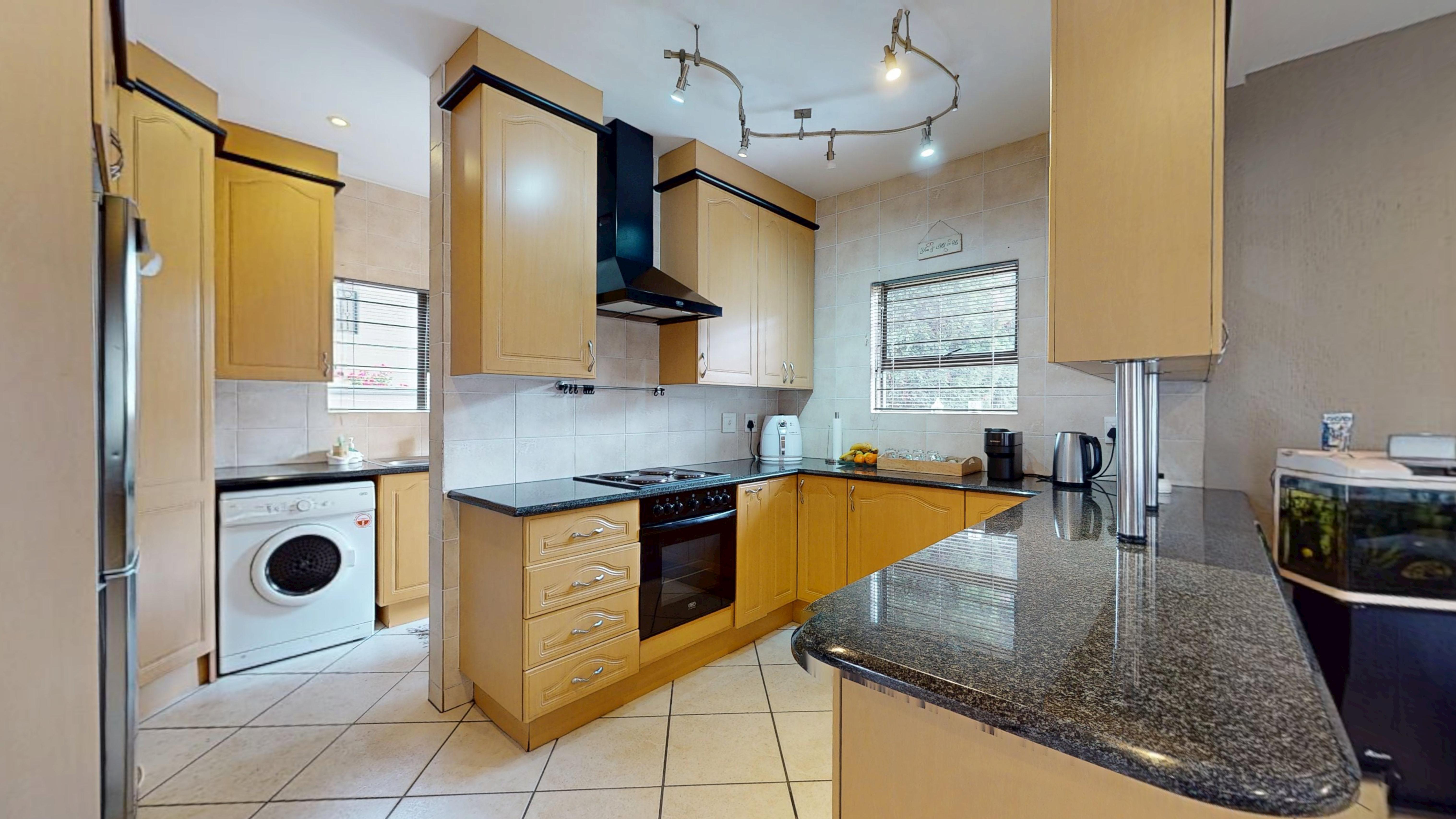 The modern kitchen is well appointed with granite countertops and a separate scullery offering space for three appliances and direct access to the garden and washing line. A guest toilet downstairs adds everyday convenience.