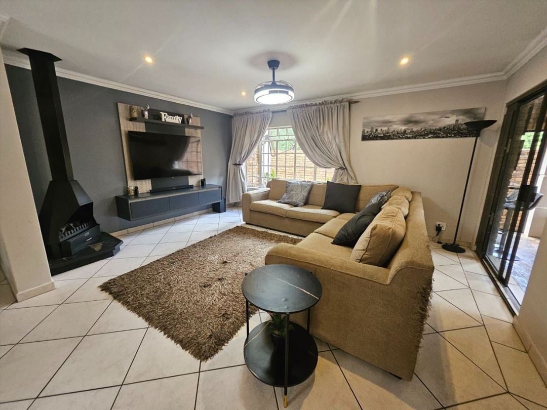 The welcoming entrance hall leads to a spacious lounge and dining area, perfect for family gatherings. The well-equipped kitchen includes a scullery for added functionality. With two garages providing secure parking, this home ensures peace of mind.