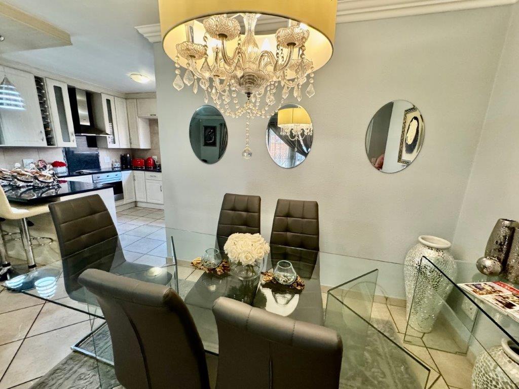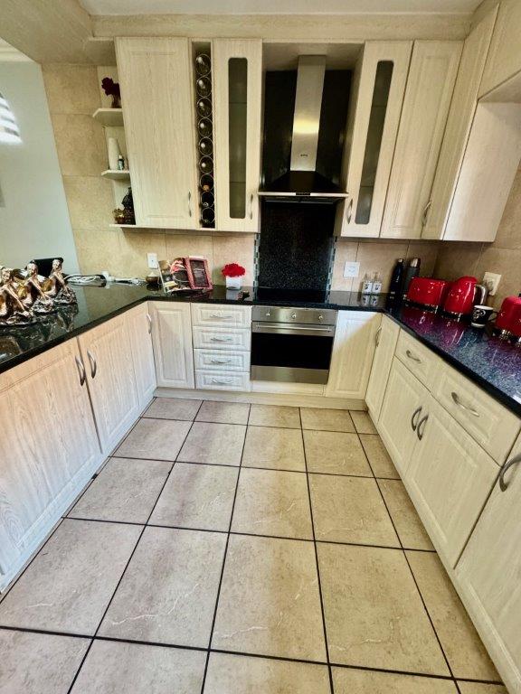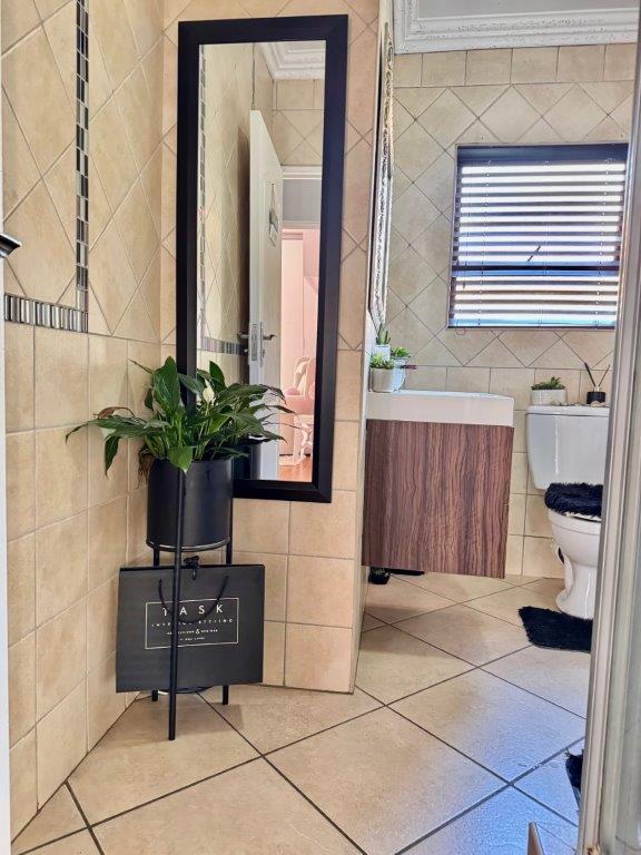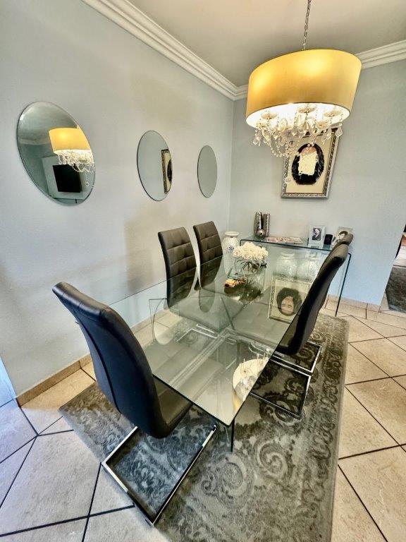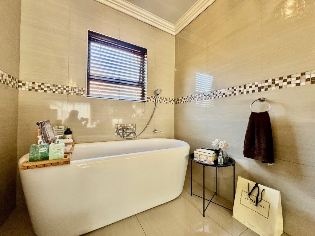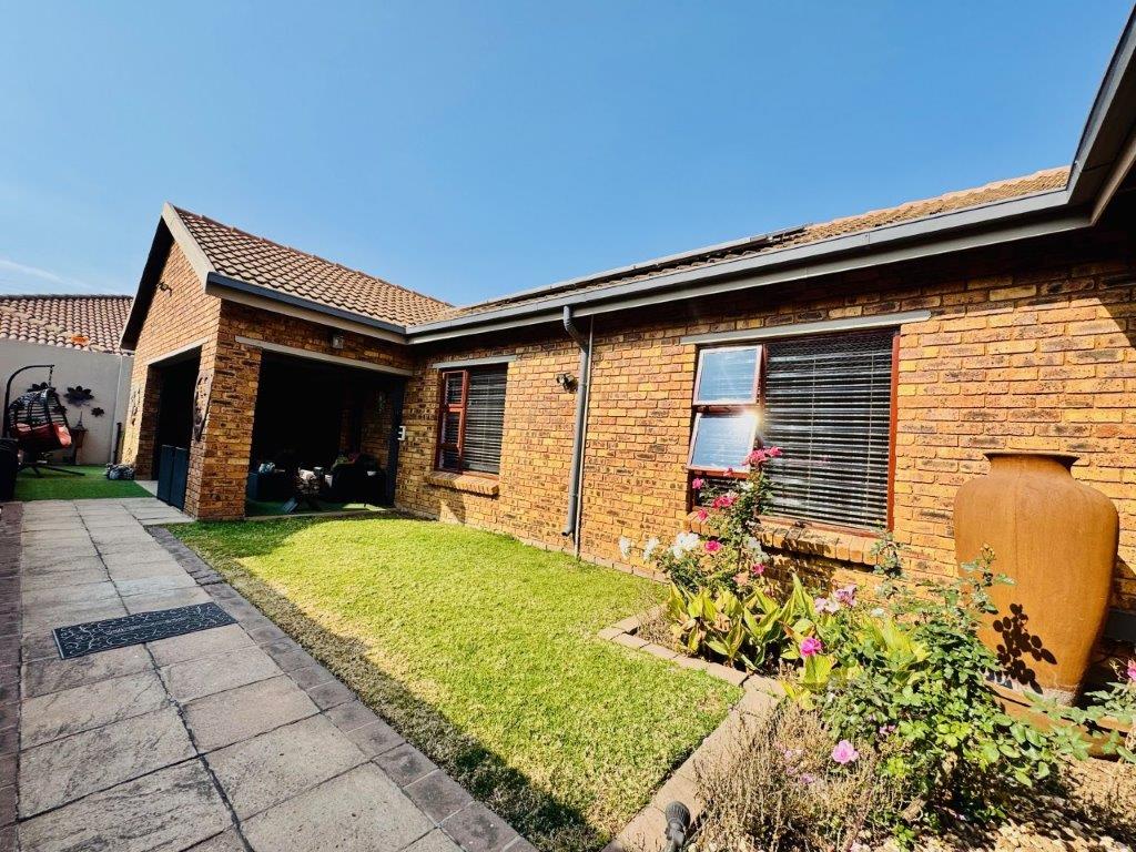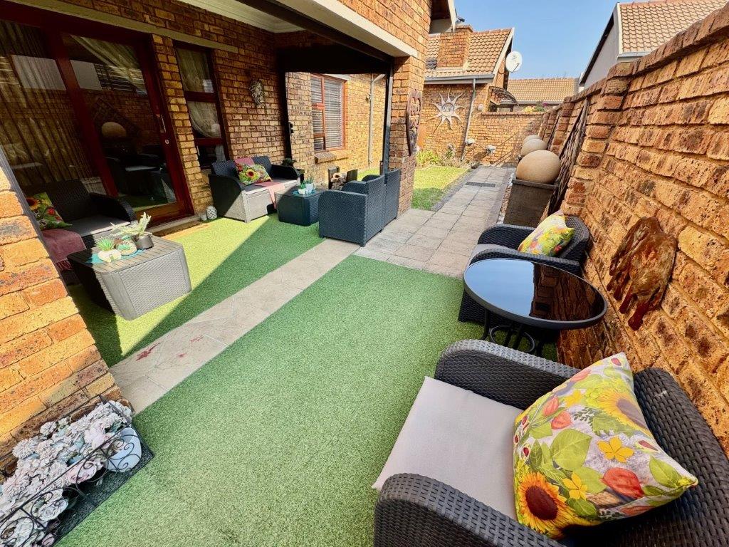 The large lounge flows seamlessly to a covered patio with a built-in braai and a manicured private garden – perfect for entertaining. A newly installed awning adds extra comfort and shade.