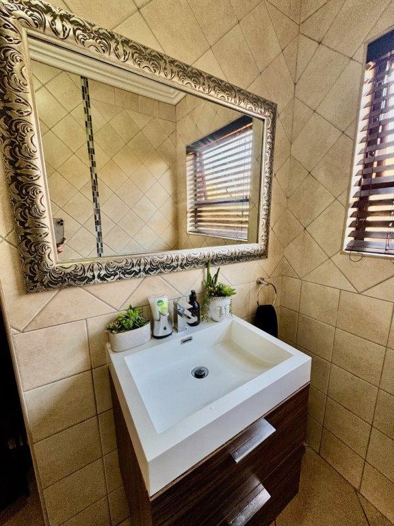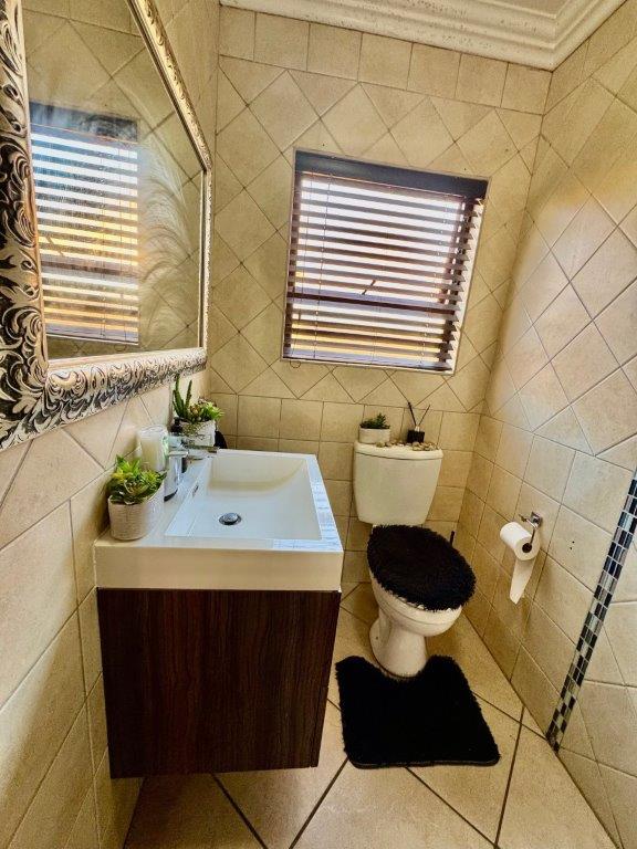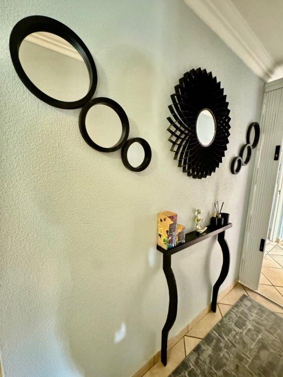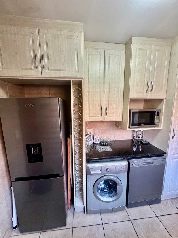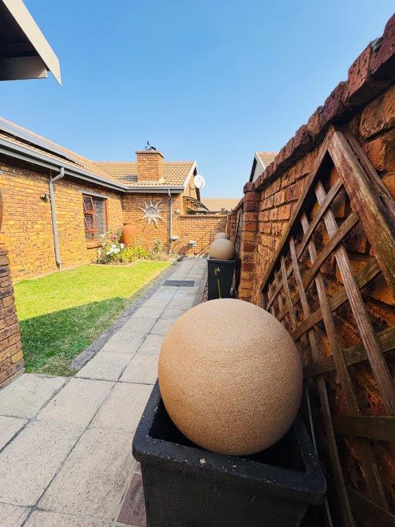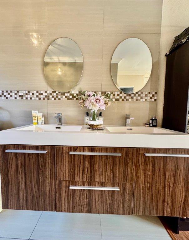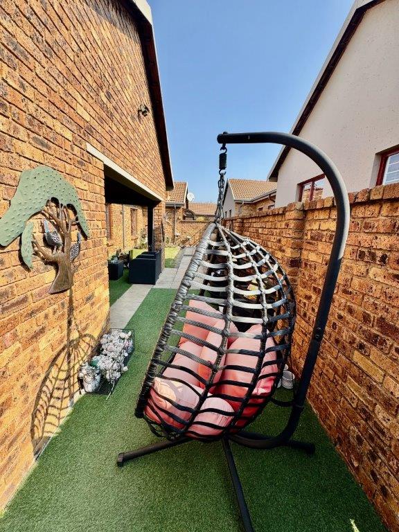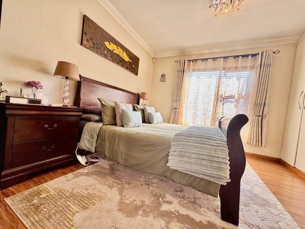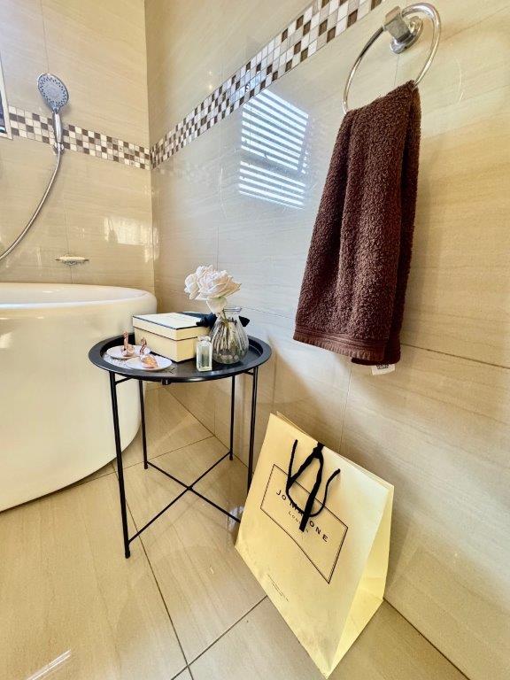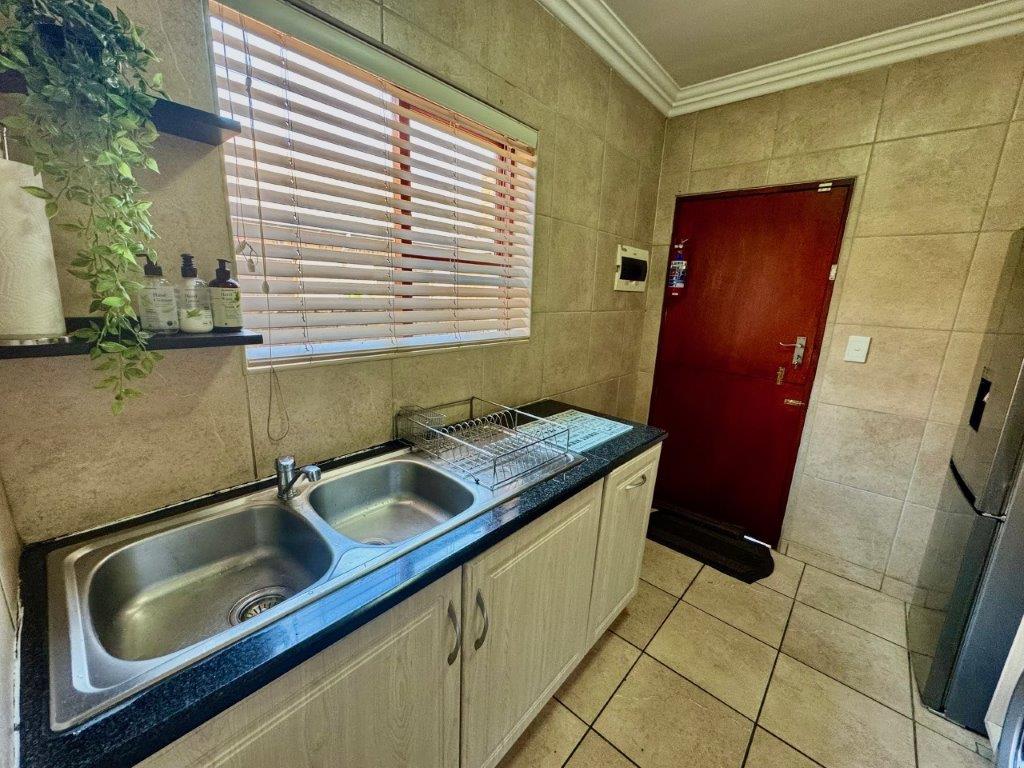 The large lounge flows seamlessly to a covered patio with a built-in braai and a manicured private garden – perfect for entertaining. A newly installed awning adds extra comfort and shade.