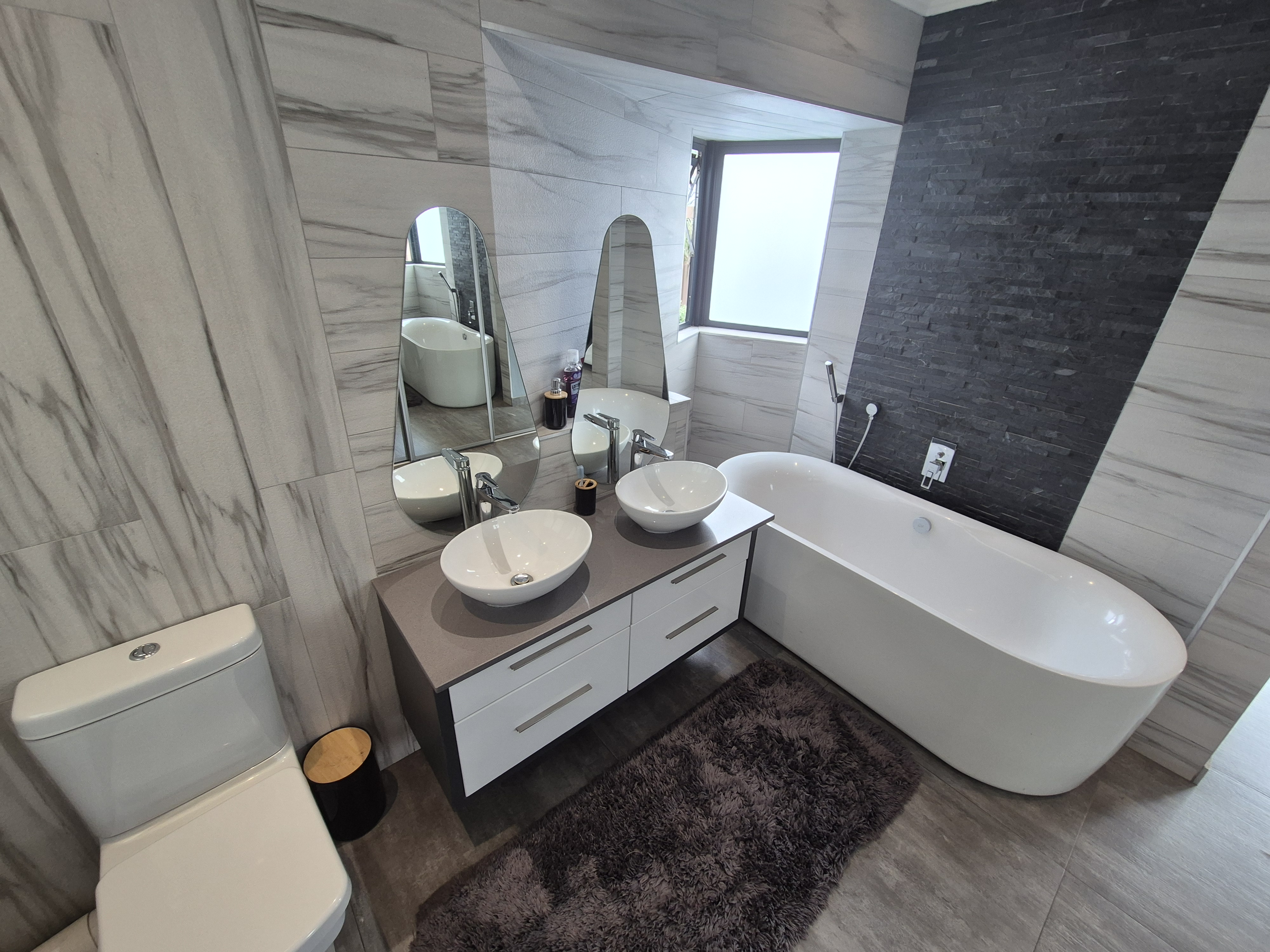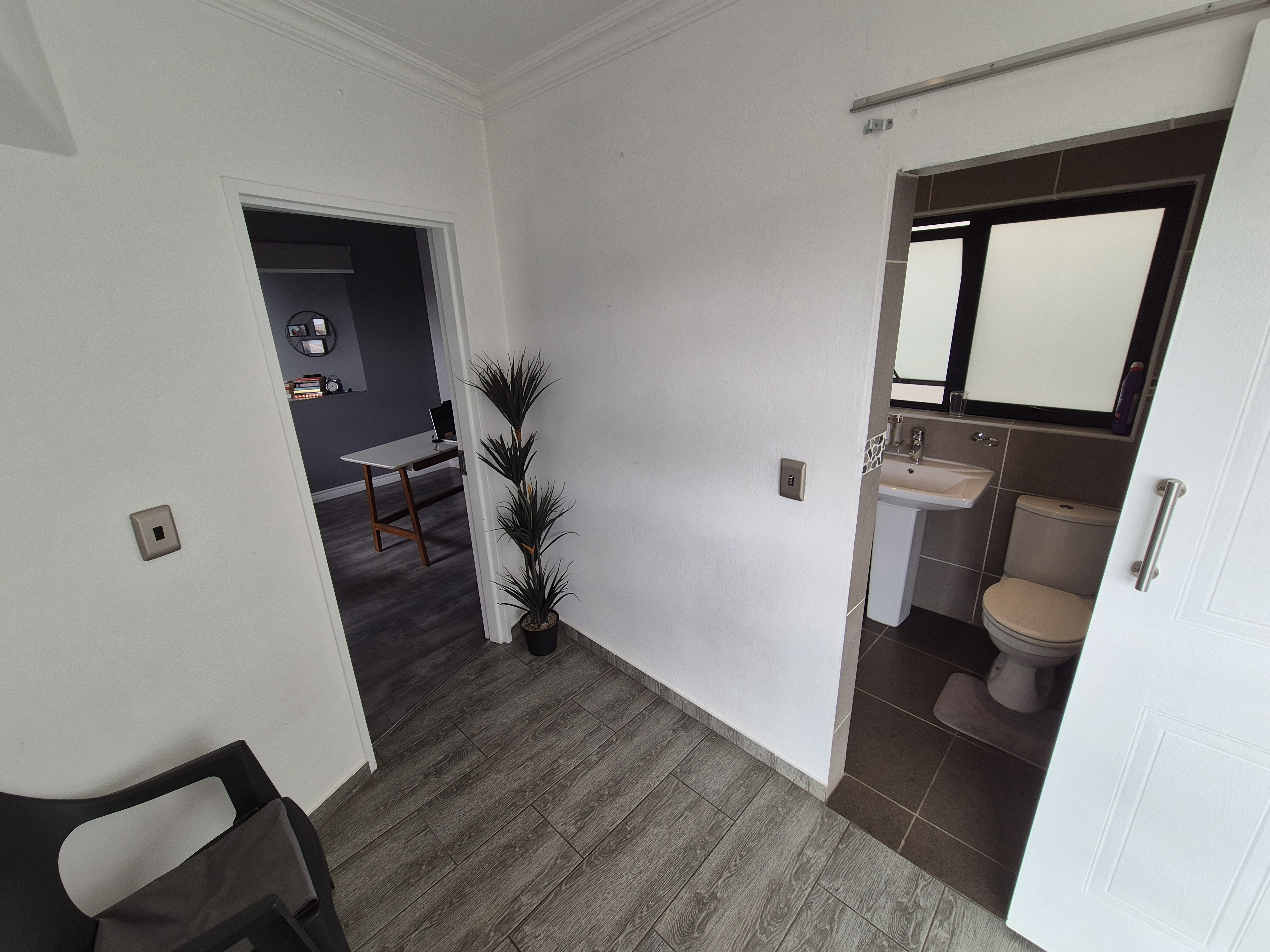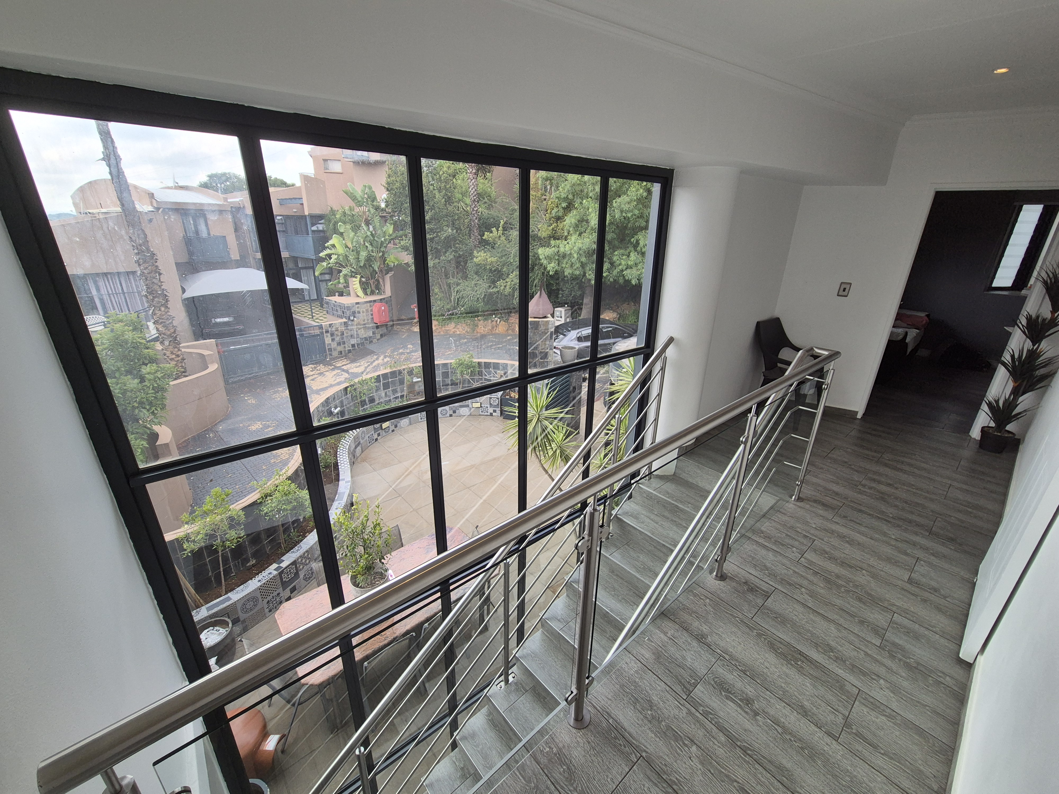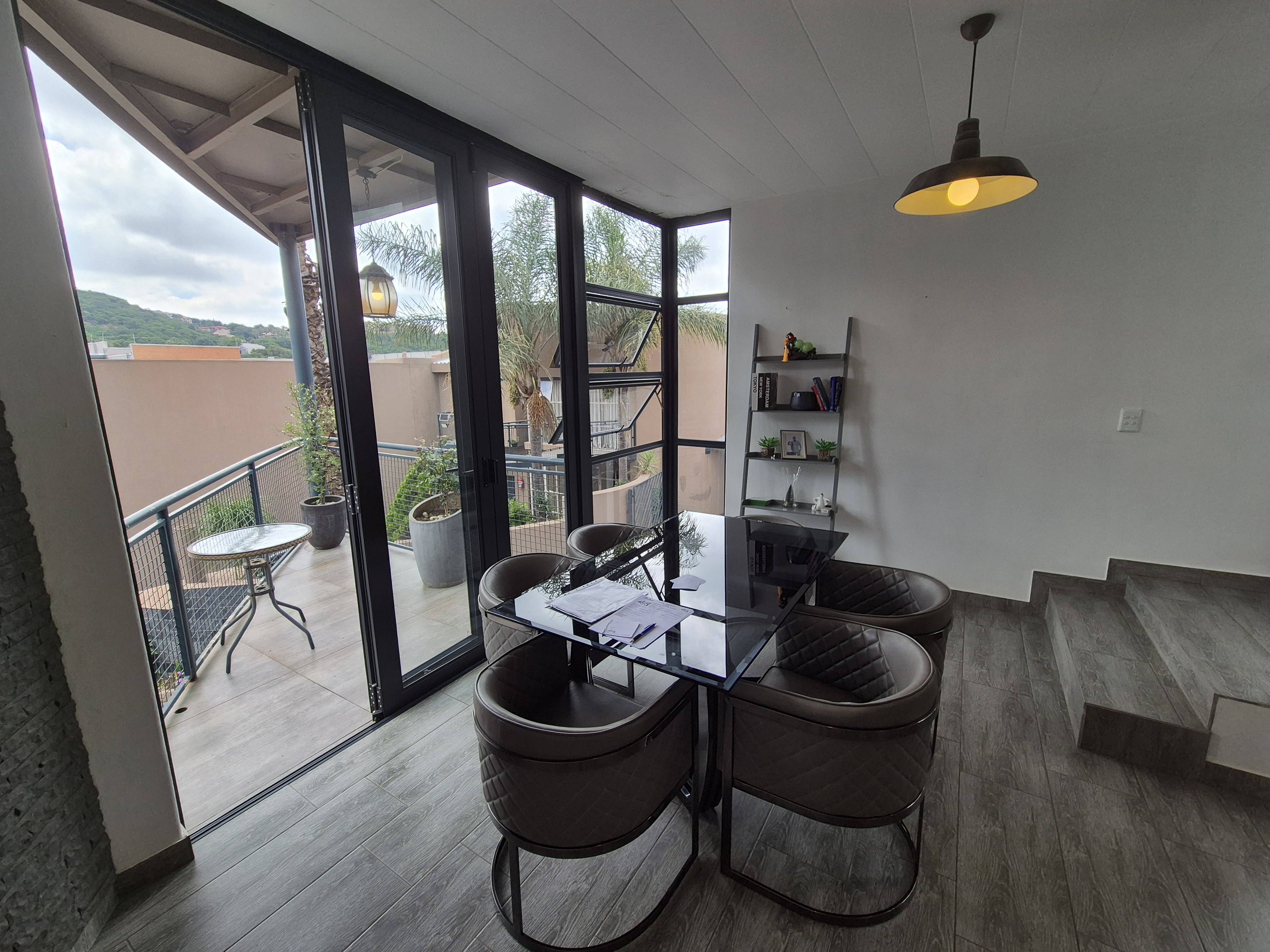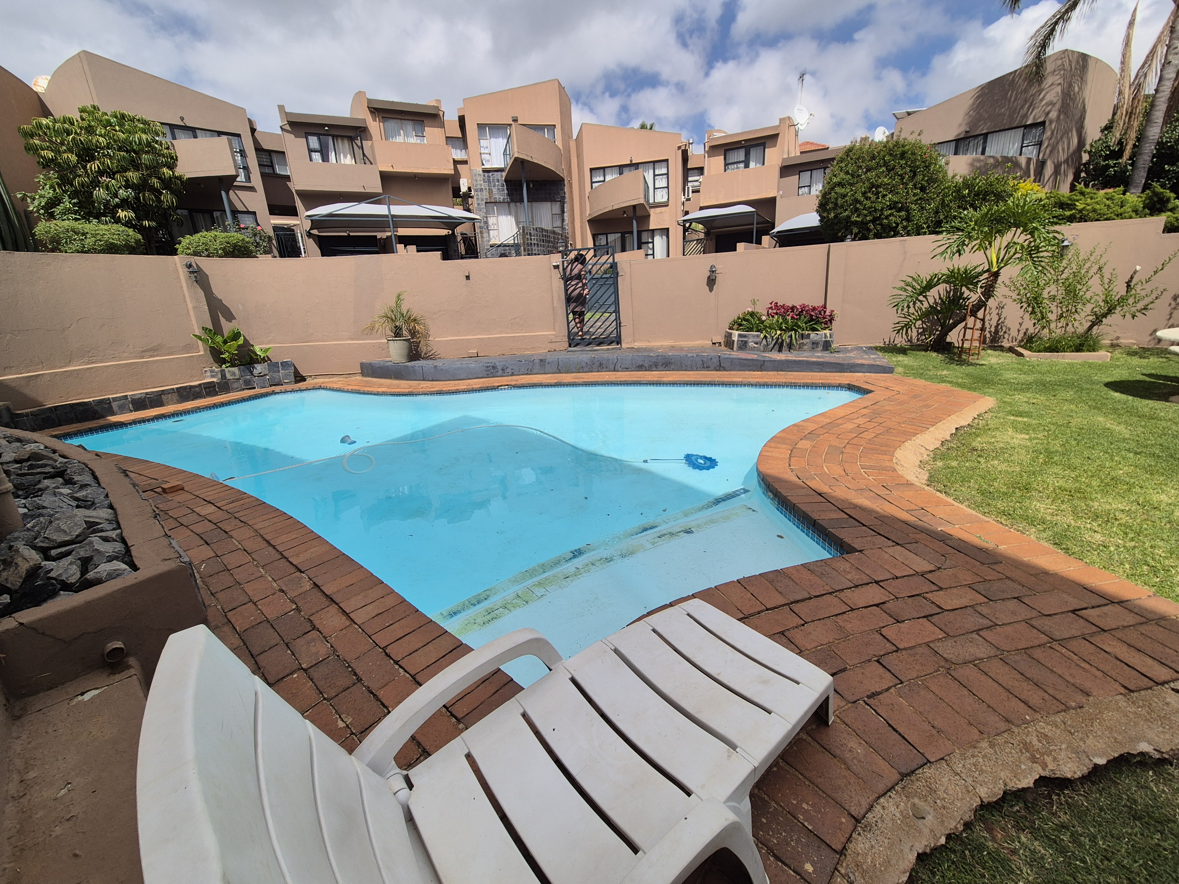 This stunning ultra-modern property in the heart of Bassonia is a rare find and an opportunity you don't want to miss! This architectural beauty features two spacious bedrooms and two stylish bathrooms, along with an open-plan kitchen that includes a pantry. The dining and living areas boast modern finishes, while the kitchen is equipped with granite countertops and a gas stove. Enjoy outdoor dining on the large patio, complete with a built-in braai for entertaining. Both the lounge and main bedroom have their own private balconies, offering a touch of luxury. A single garage adds to the convenience, and pets are welcome in this pet-friendly community. The complex provides security for peace of mind and access to a communal pool. With its impressive features and welcoming environment, this property is sure to captivate all who visit. Act fast—opportunities like this don't last long!