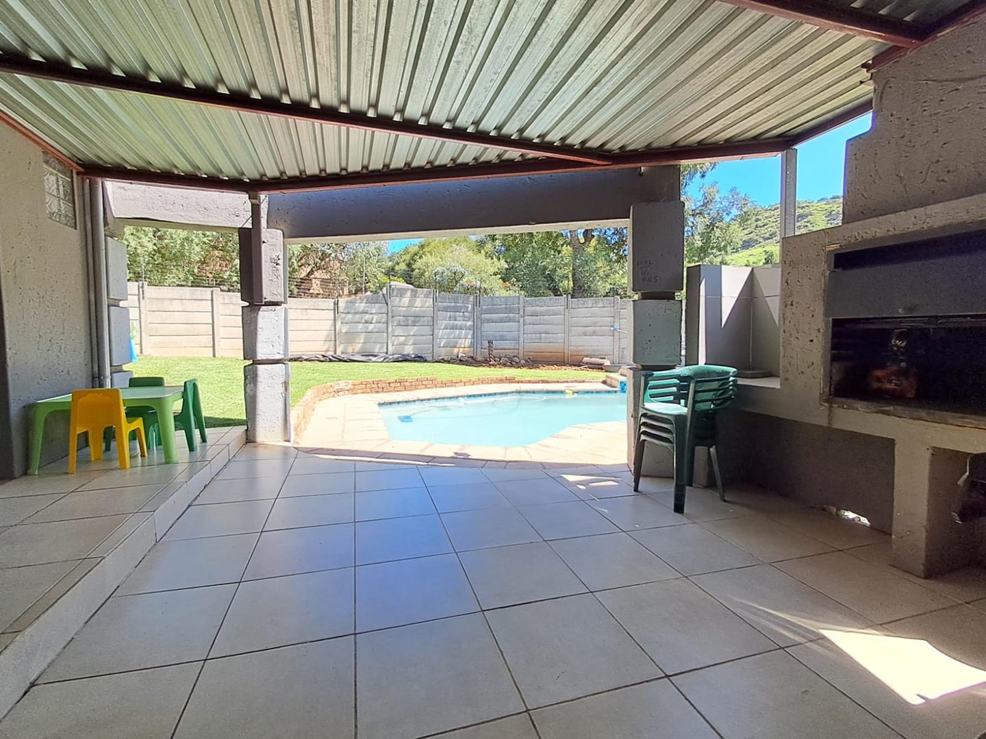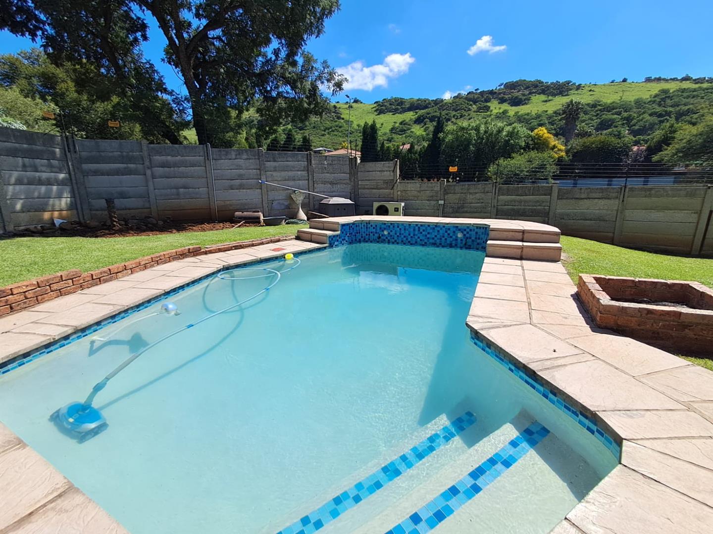 Dive into relaxation with a sparkling swimming pool, equipped with a heating pump for year-round enjoyment. Security is a top priority, with 8 CCTV cameras, burglar bars, an alarm system, automated access gates, and an electric fence ensuring peace of mind.