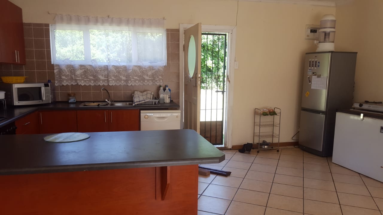 Your new home features 3 bedrooms, 2 garages, an open-plan fitted kitchen, a lounge, and a bathroom. Enjoy a spacious, cleared yard, a deck with a braai area, and the soothing sounds of birds and nature nearby. The property is conveniently located close to the police station and local shops.
