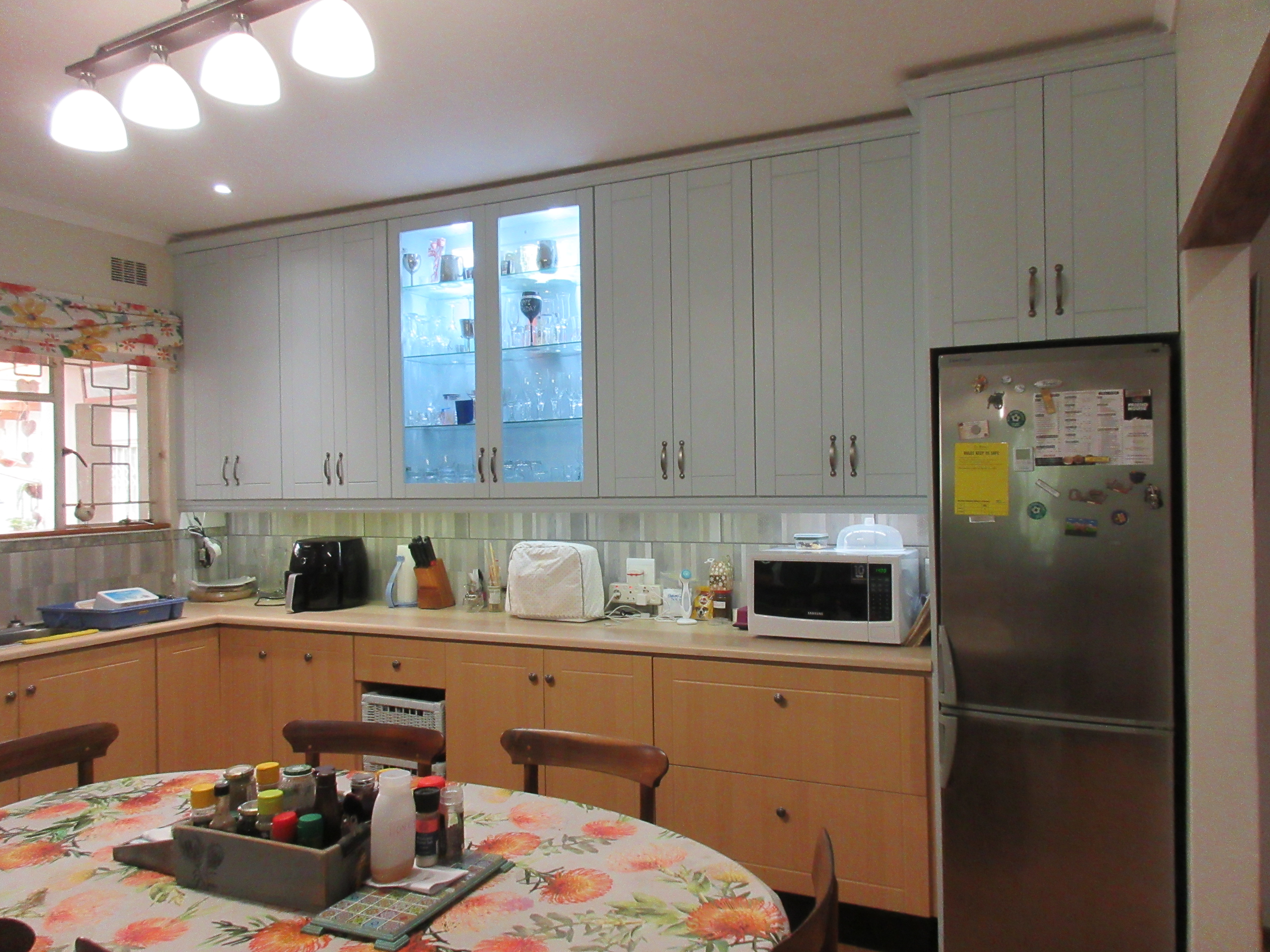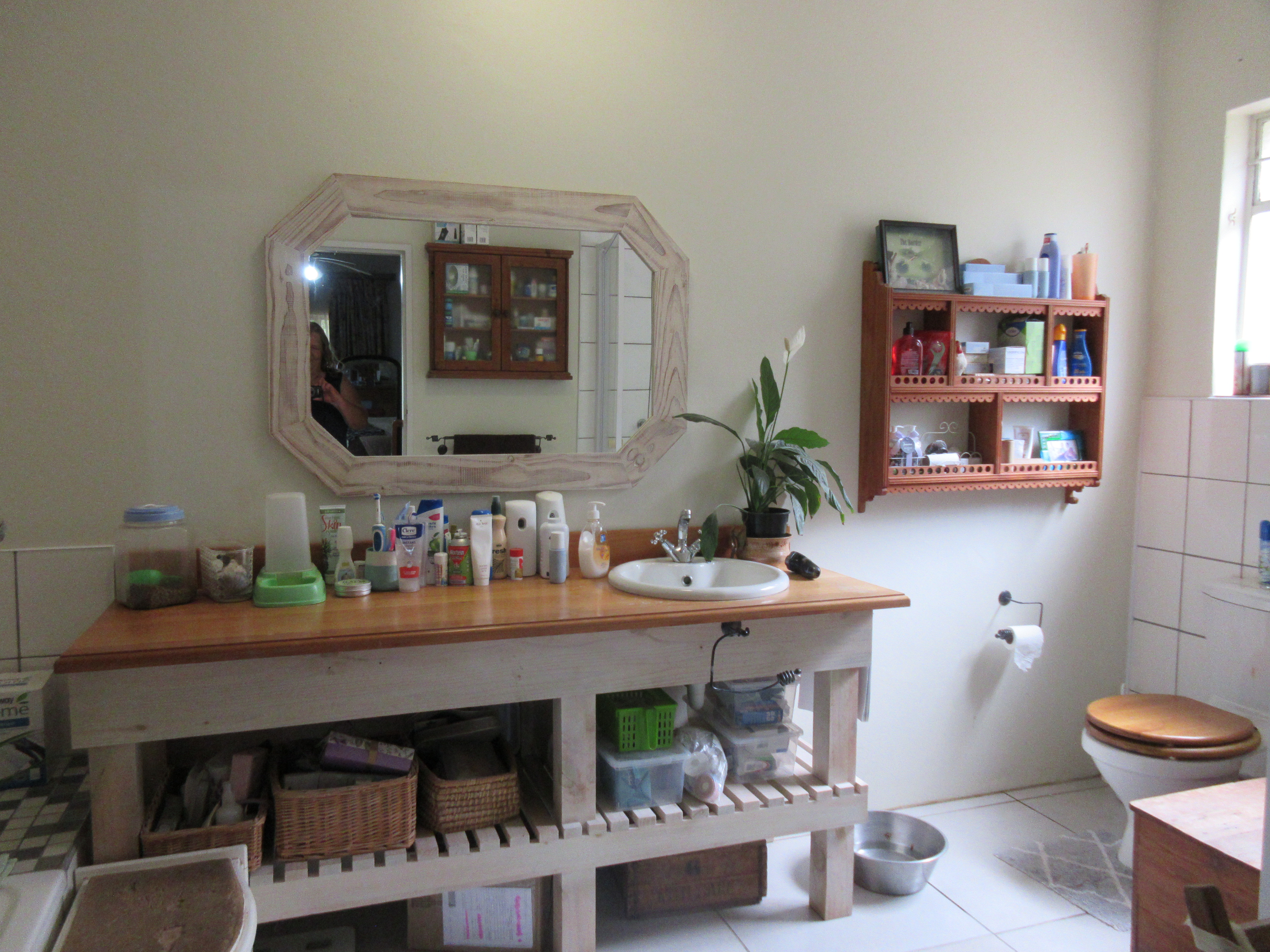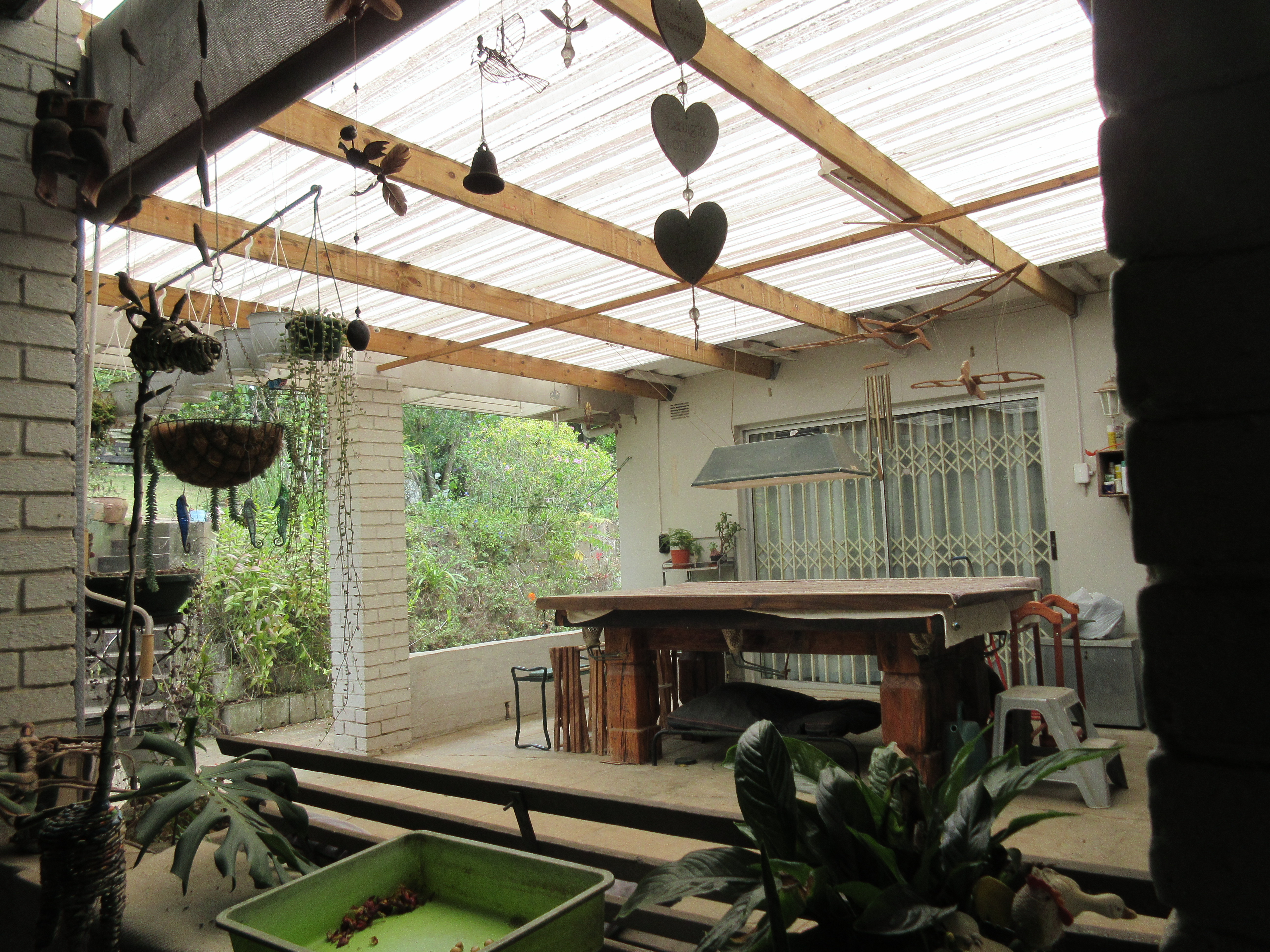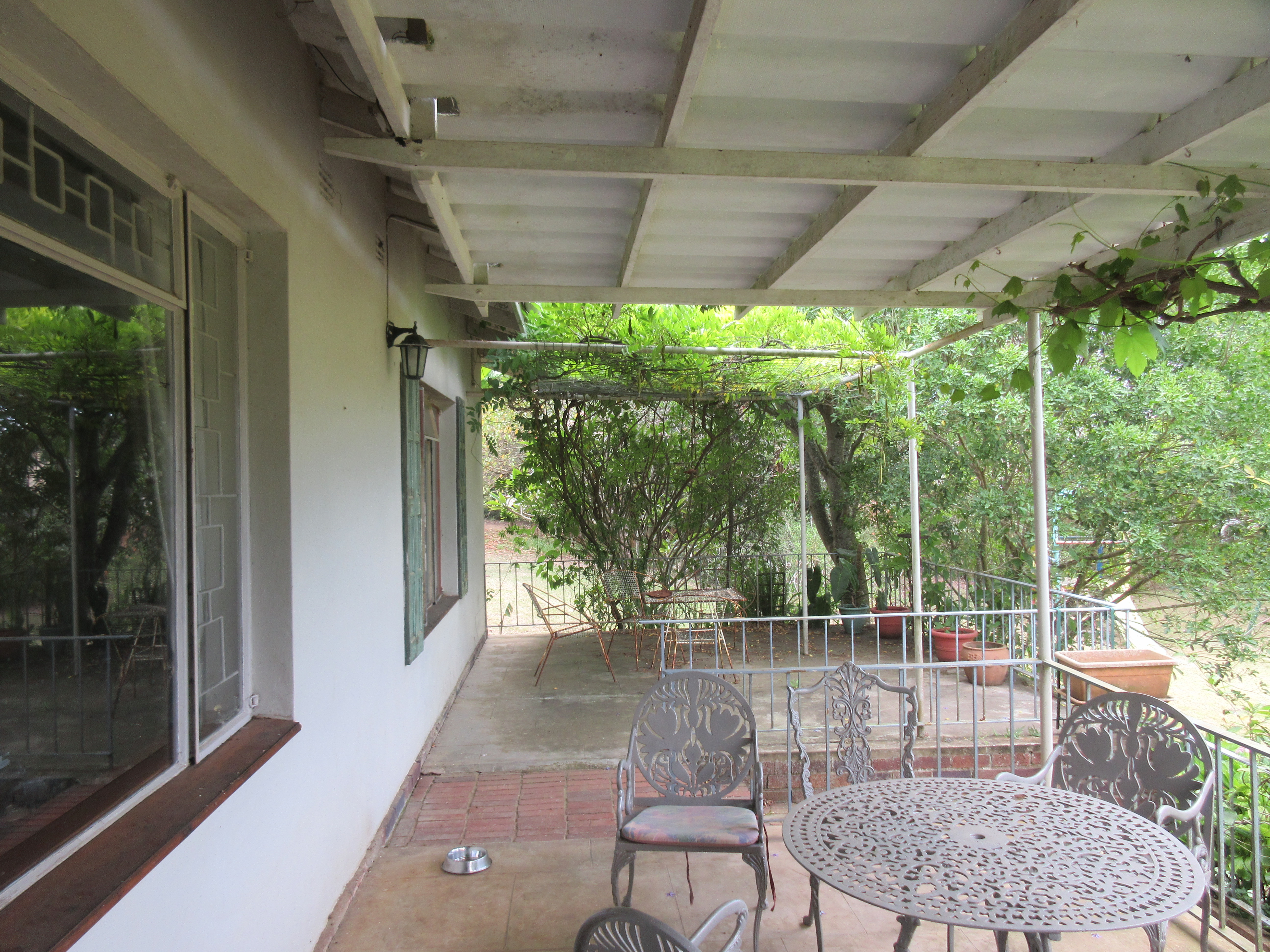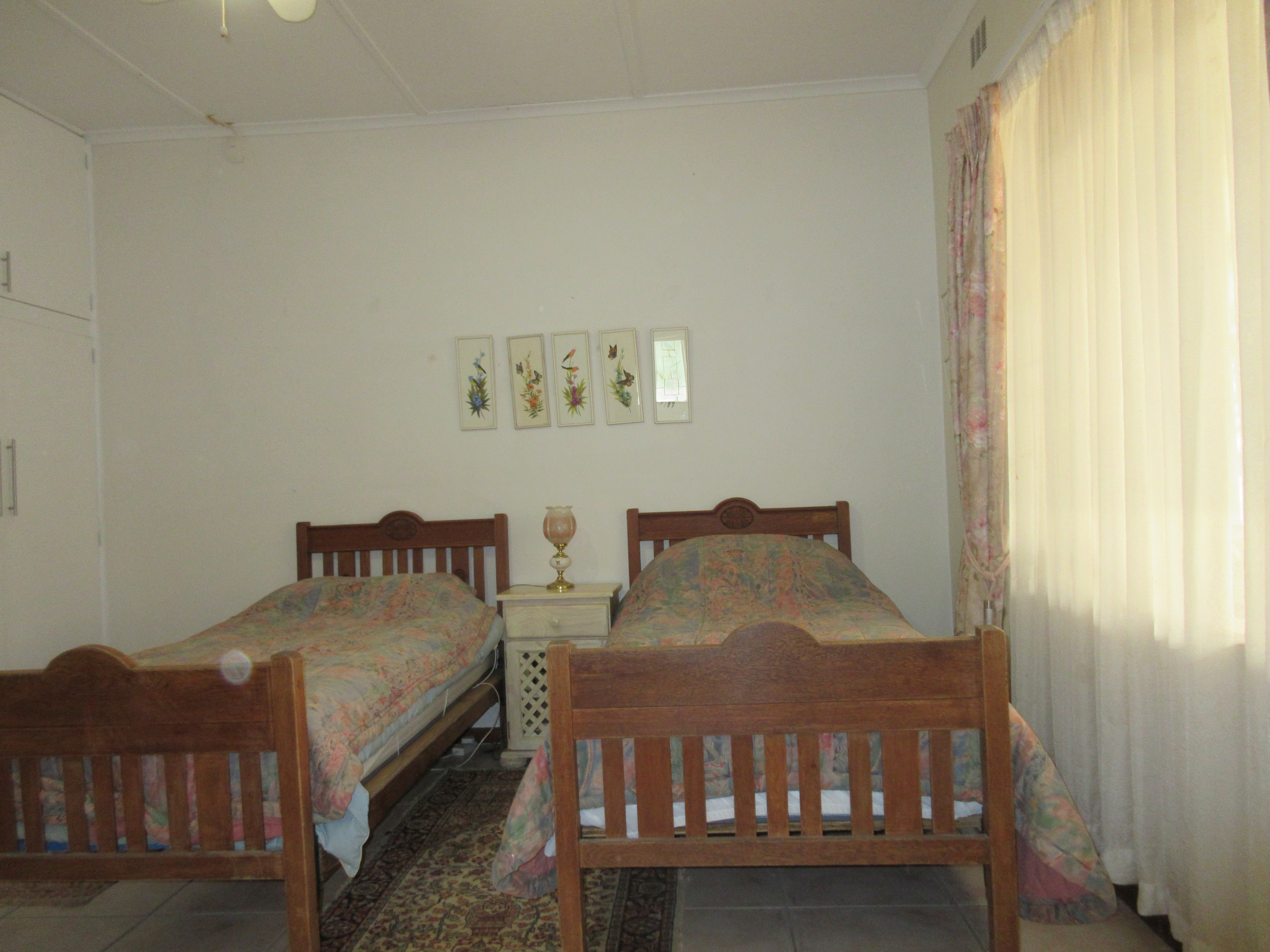 An absolute gem of a house, right next to the primary school! Three bedrooms with en suite bathrooms, two lounges, a dining room,, separate kitchen and a huge covered outdoor entertainment area, with a braai area,, a double garage, a double carport and a spacious flat. Then, we have over a hundred thousand litres of rainwater storage capacity, a splash pool and the capability to swap from solar to Eskom, should the power be insufficient. Also one geyser is solar and the other is on Eskom, so big electricity saving are a feature. There is a huge picture window in one lounge, which gives beautiful views of the front garden. The back garden features a chicken coop, and aviary, two veggie gardens and if this is not sufficient to tick all your boxes for the dream home, there are some fruit trees, including Mulberries, lemon, oranges, naartjies , grape fruit, pecan nuts, avocado, pears and bananas. On top of all of this the yard is fenced and there is remote controlled access to the property, and should you so desire, there is also municipal water.