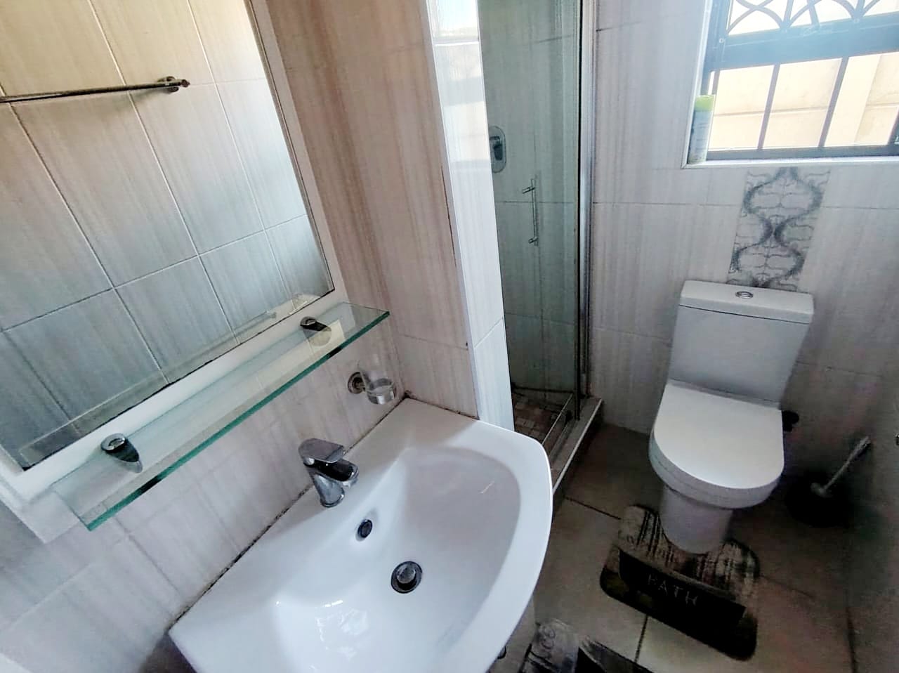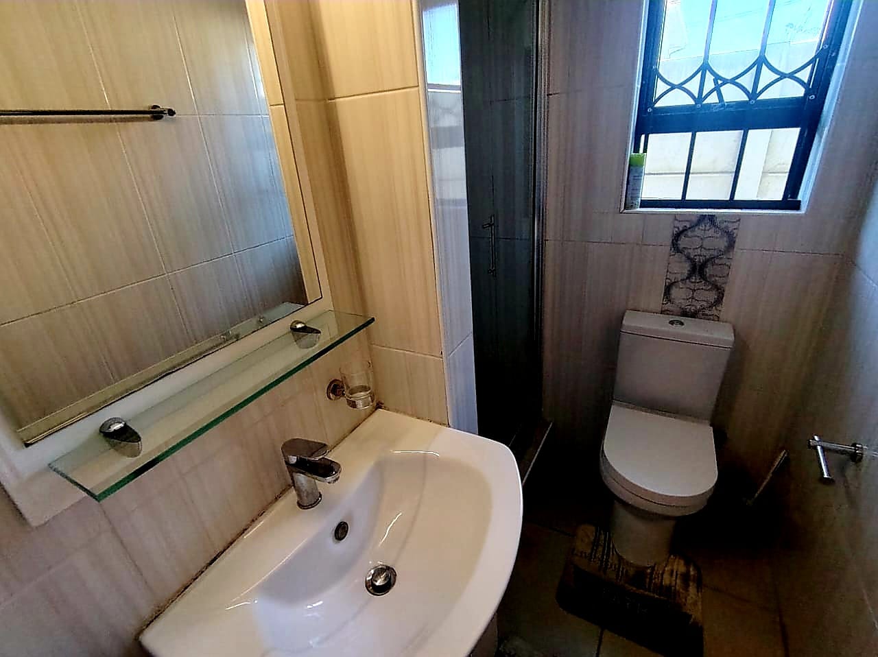 The main house features 3 spacious bedrooms, with the master bedroom boasting its own en suite. The home also includes a large lounge, dining room, and a big functional kitchen with a gas stove, food storeroom, and laundry corner. Comfort is ensured with a fully functioning air conditioner.