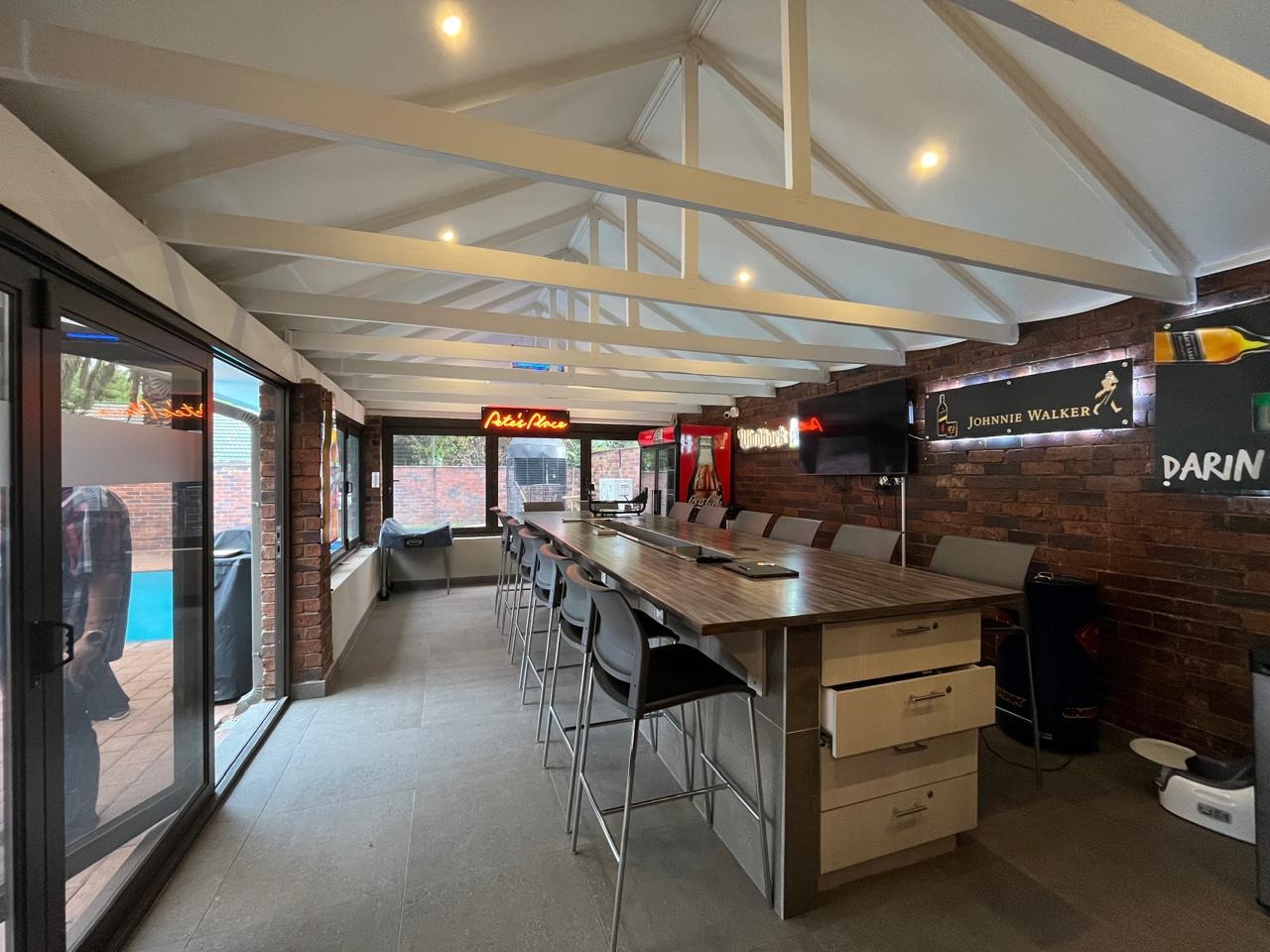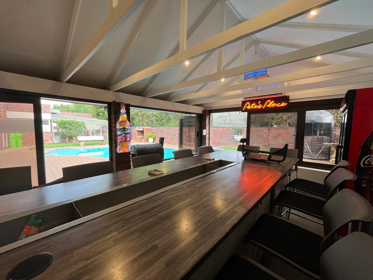 The outdoor area is equally impressive, highlighted by a beautiful saltwater swimming pool that enhances the property's appeal. A closed entertainment area seamlessly connects to the pool, fully equipped with an indoor braai, kitchen, built-in table, and a pizza oven, making it an ideal setting for gatherings. The well-established garden adds to the property's charm.