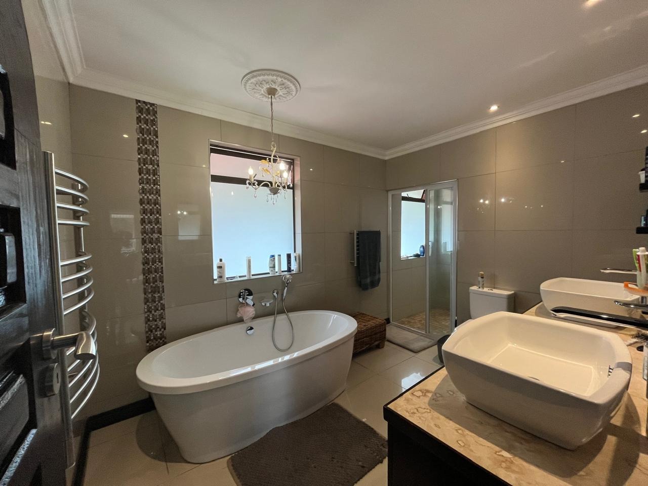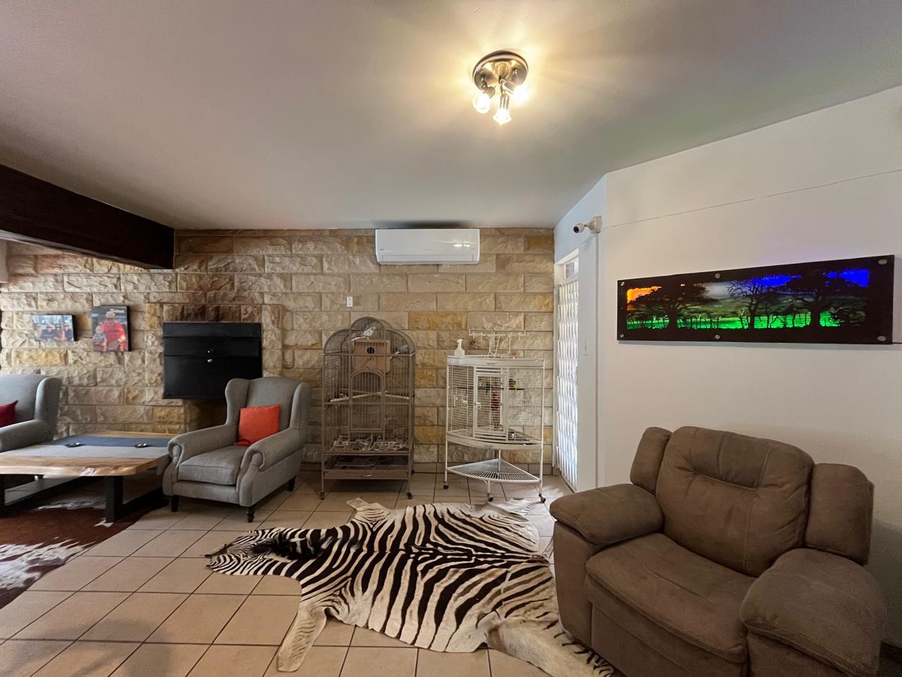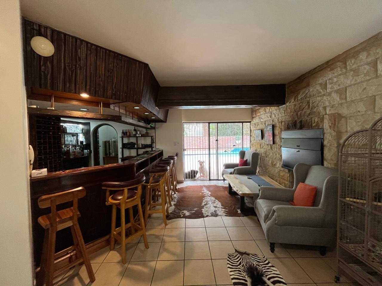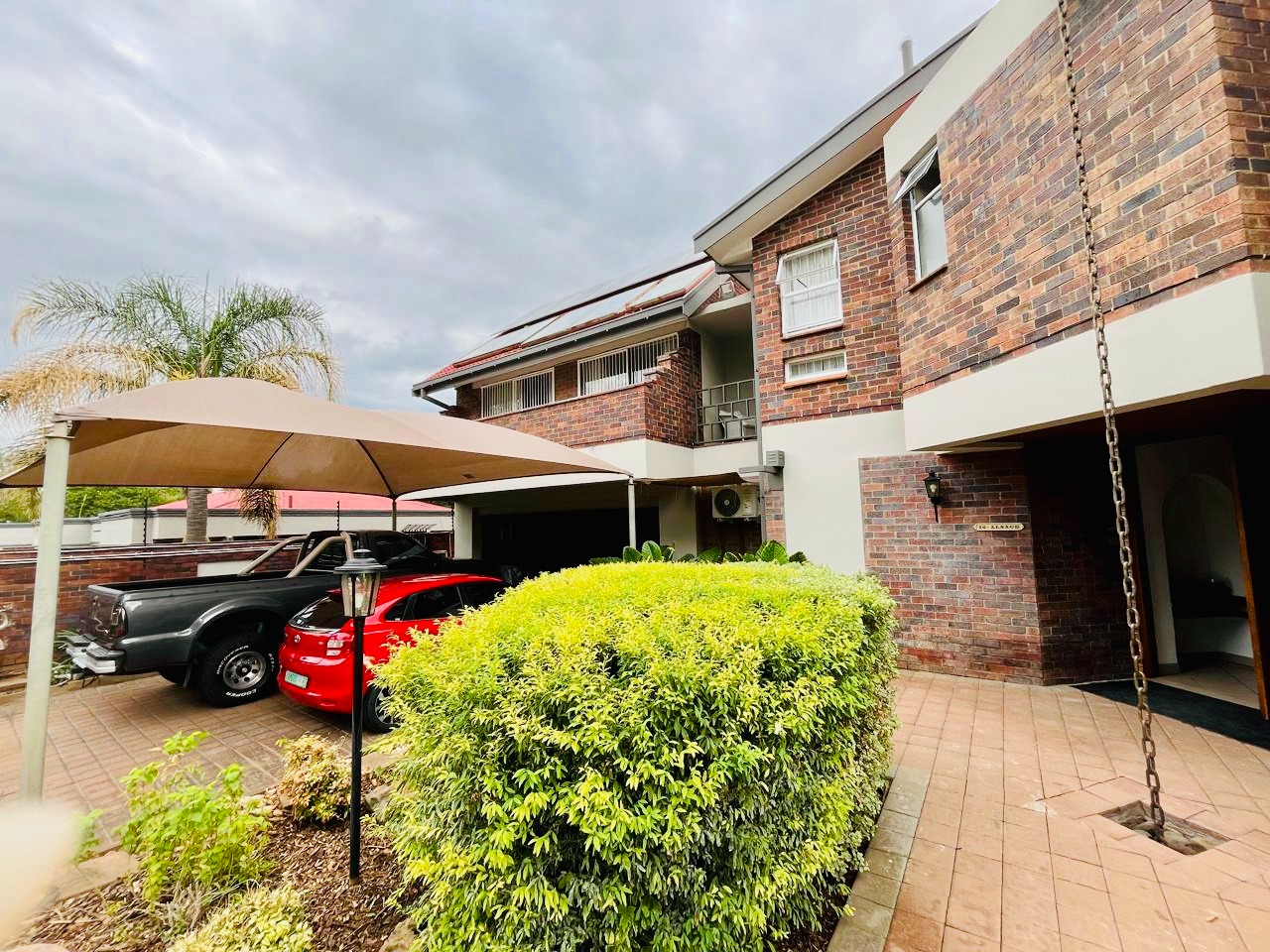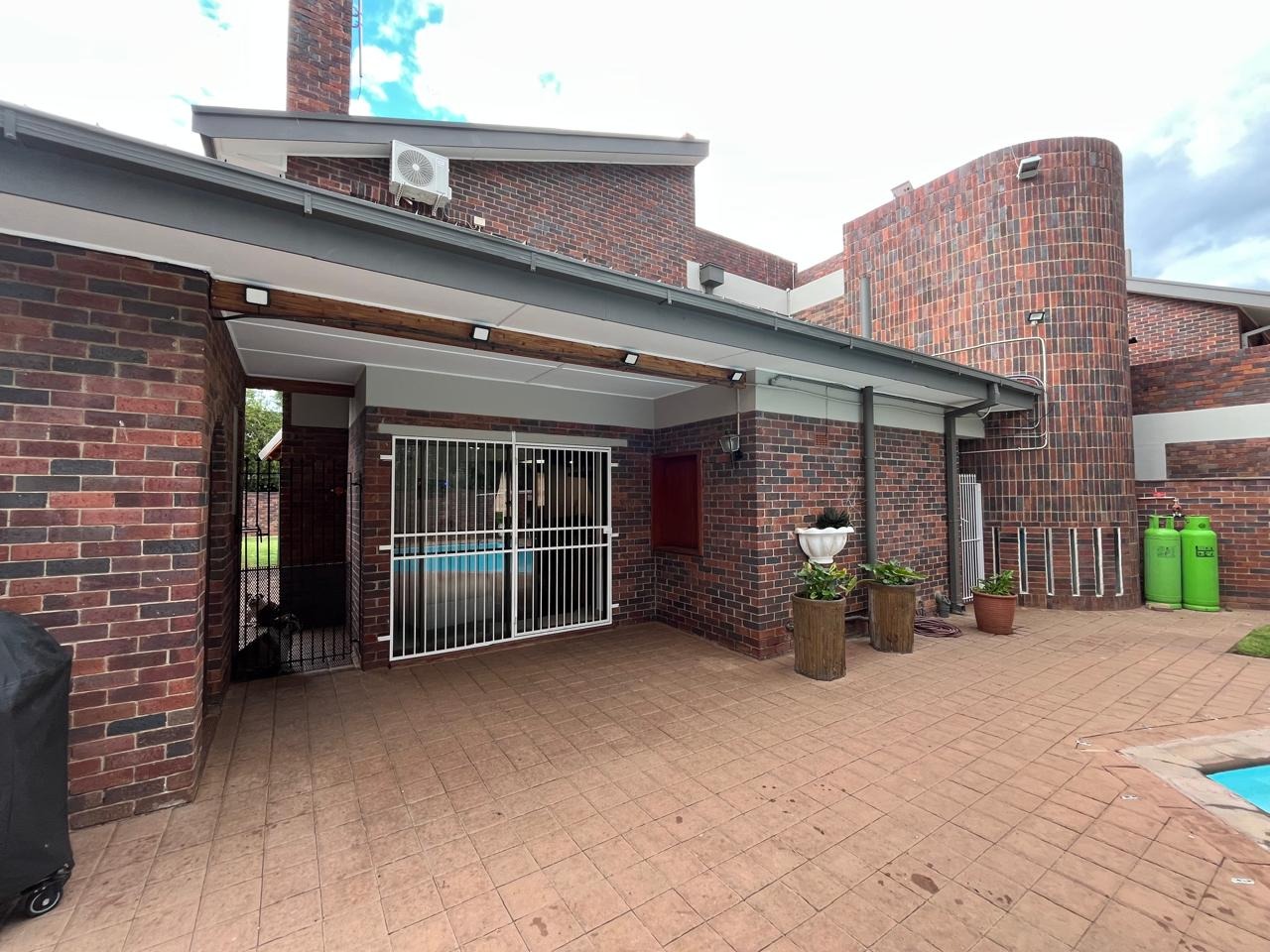 Practical features include a double garage and five undercover parking spaces. Water needs are met with two JoJo tanks and a private borehole. Additional security is provided by a built-in safe room. A two-bedroom flatlet with a bathroom offers extra accommodation options. This home exemplifies refined living in a premium location.