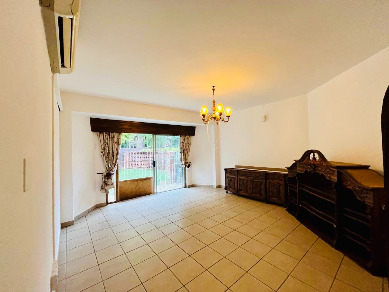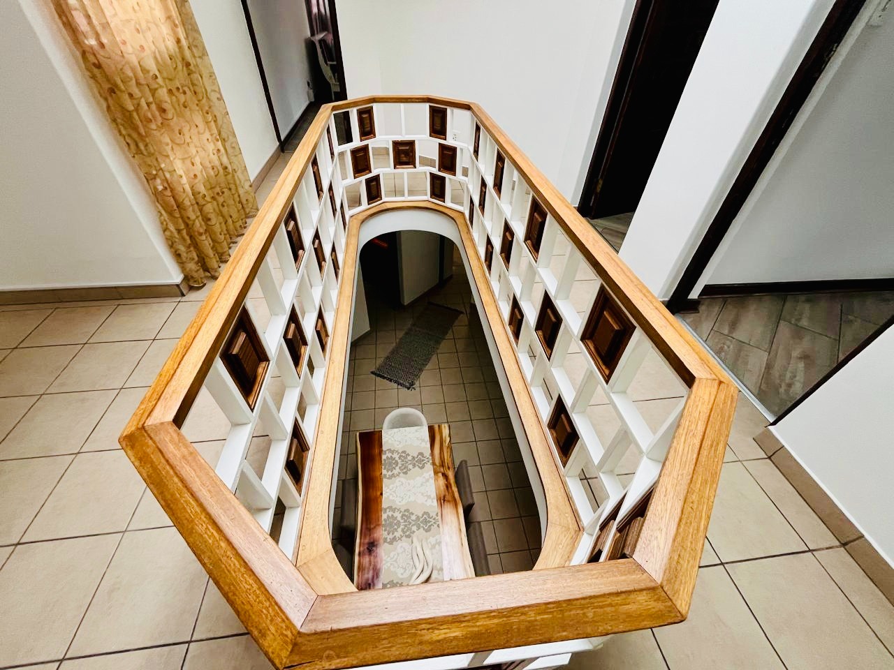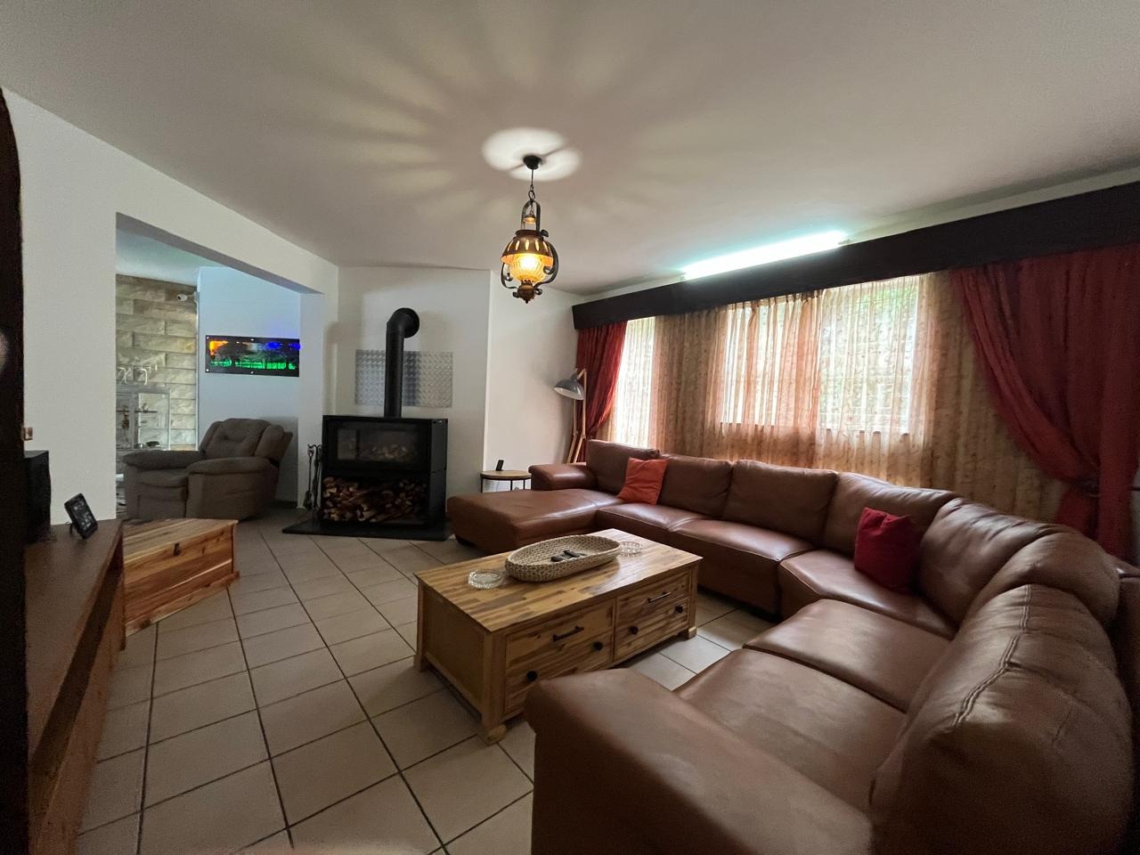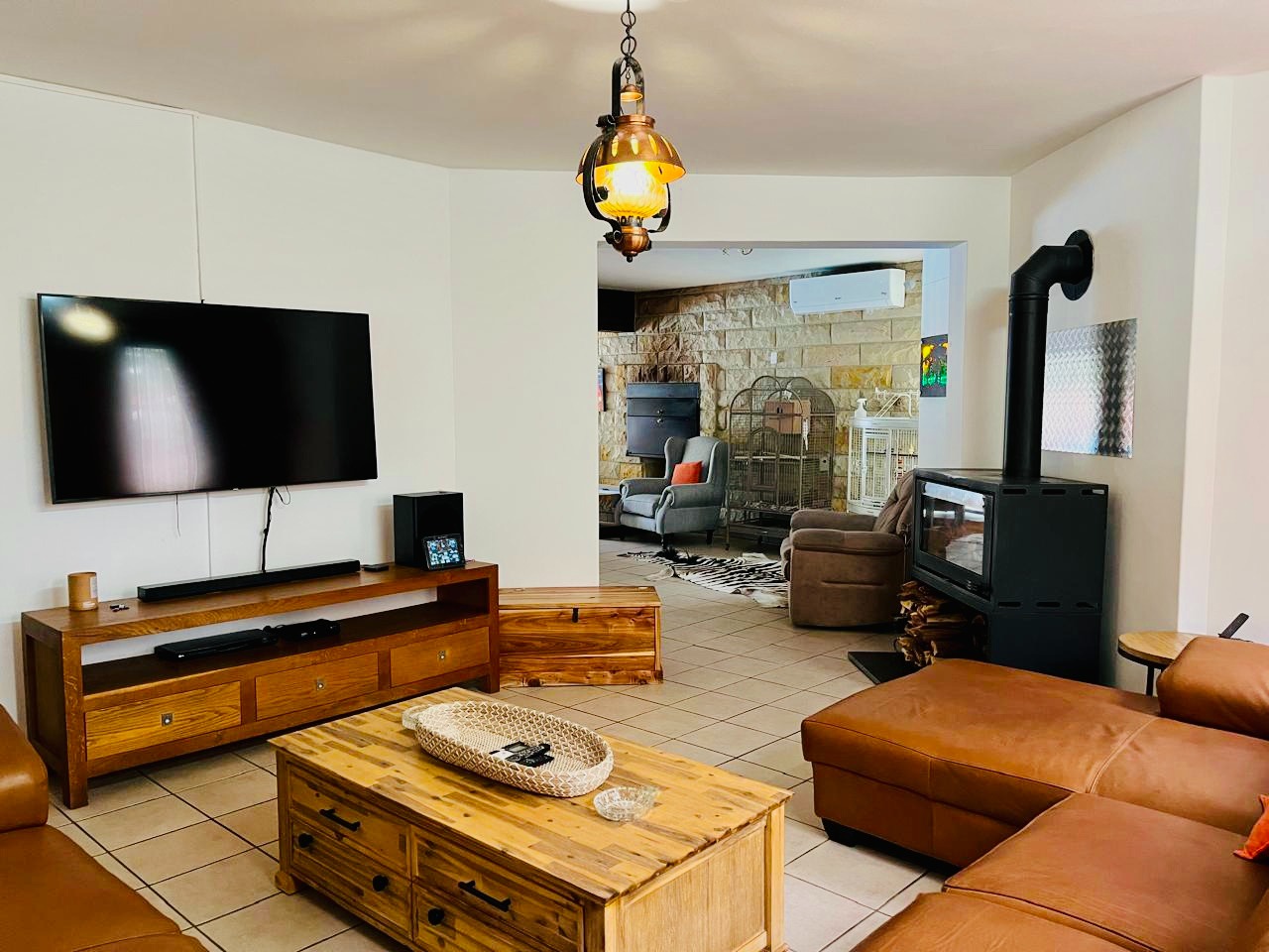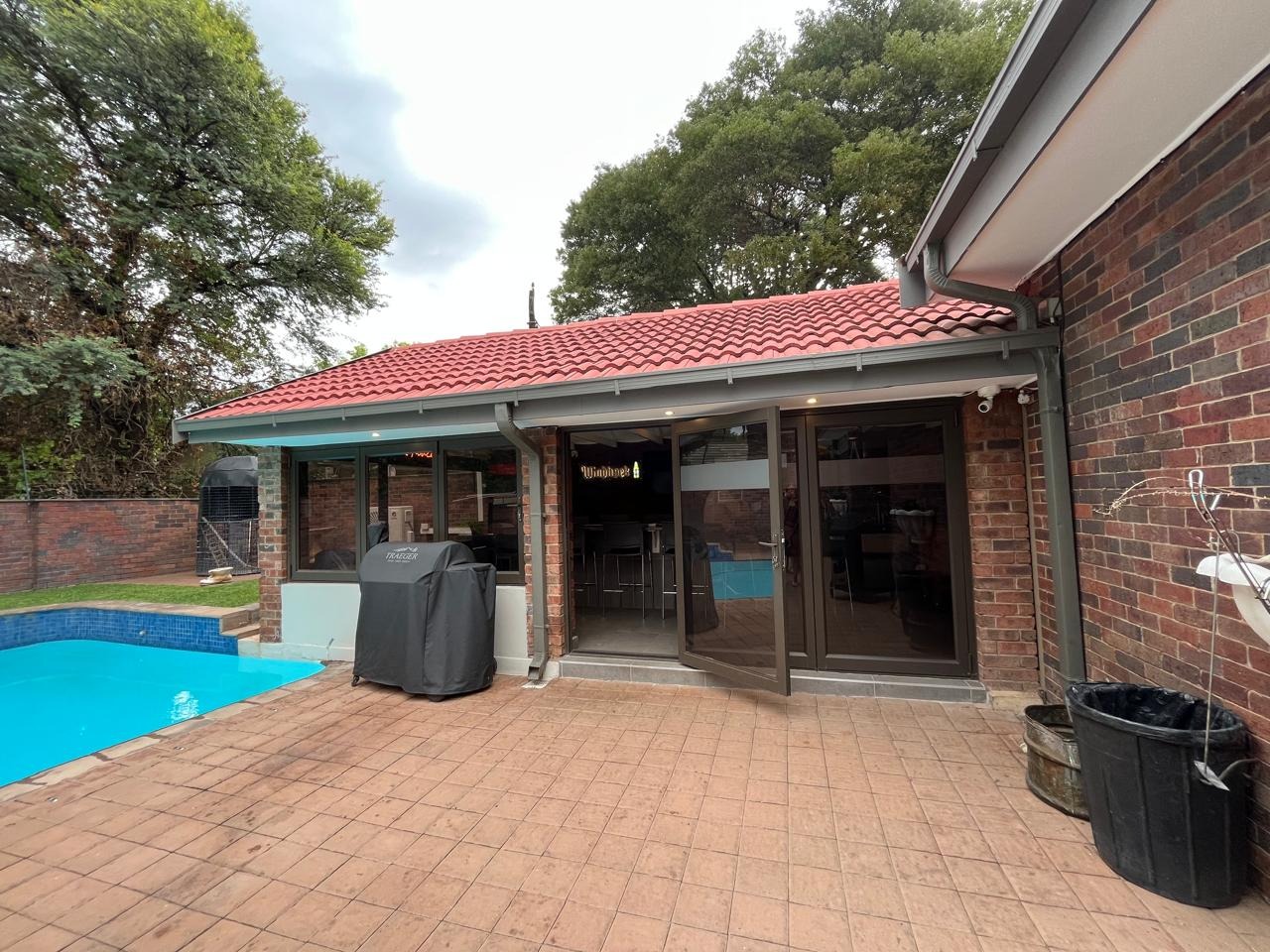 Practical features include a double garage and five undercover parking spaces. Water needs are met with two JoJo tanks and a private borehole. Additional security is provided by a built-in safe room. A two-bedroom flatlet with a bathroom offers extra accommodation options. This home exemplifies refined living in a premium location.