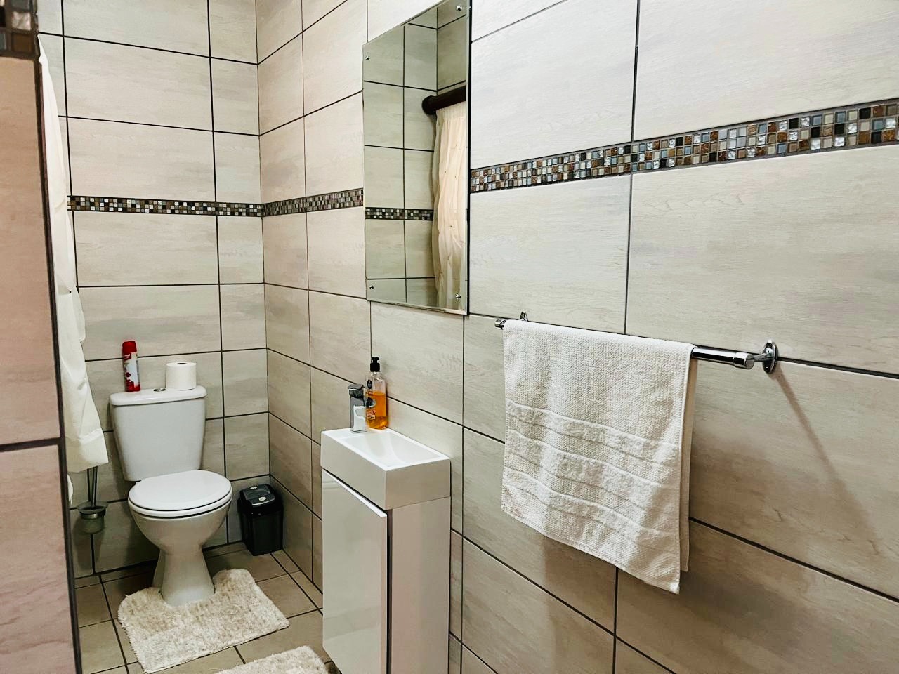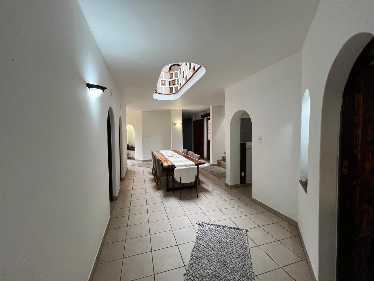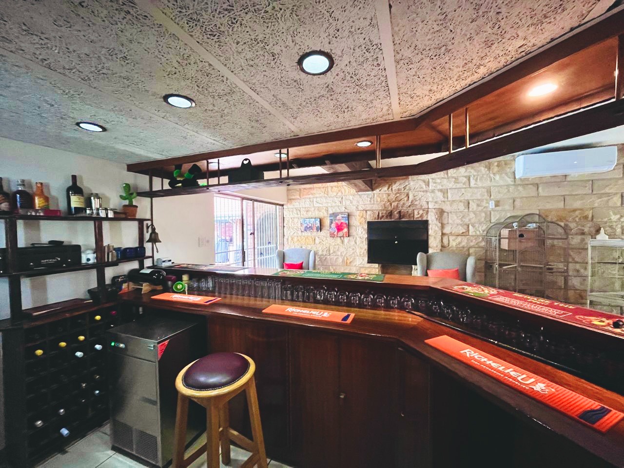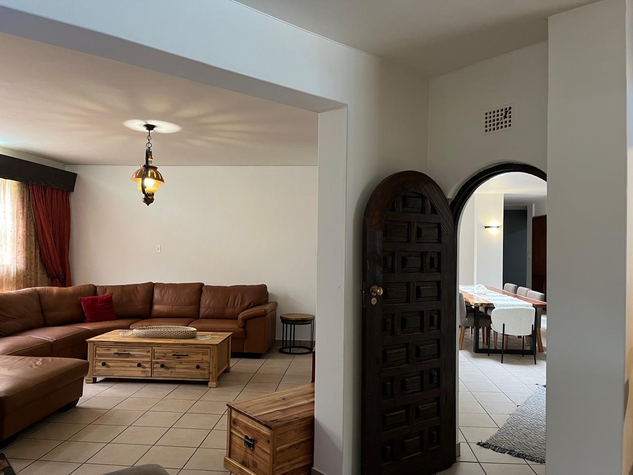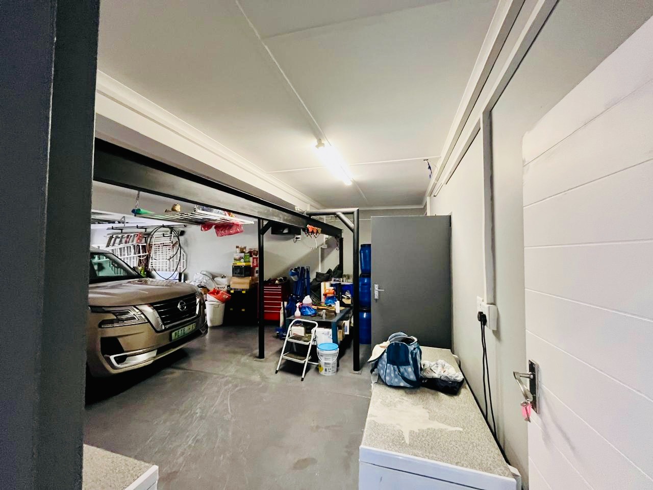 Practical features include a double garage and five undercover parking spaces. Water needs are met with two JoJo tanks and a private borehole. Additional security is provided by a built-in safe room. A two-bedroom flatlet with a bathroom offers extra accommodation options. This home exemplifies refined living in a premium location.