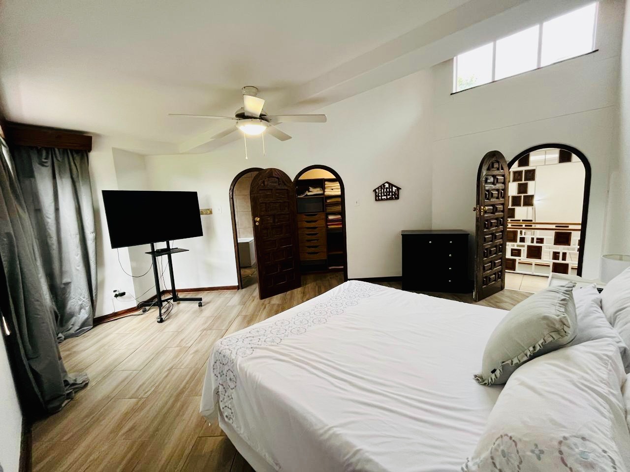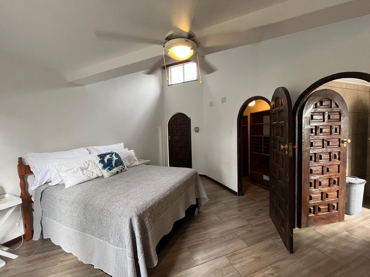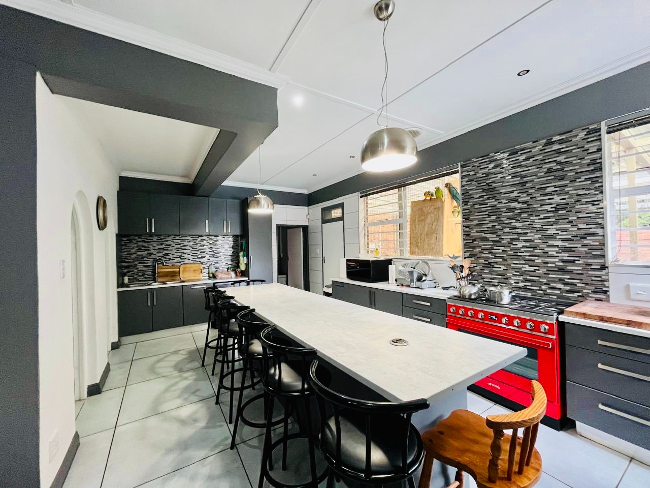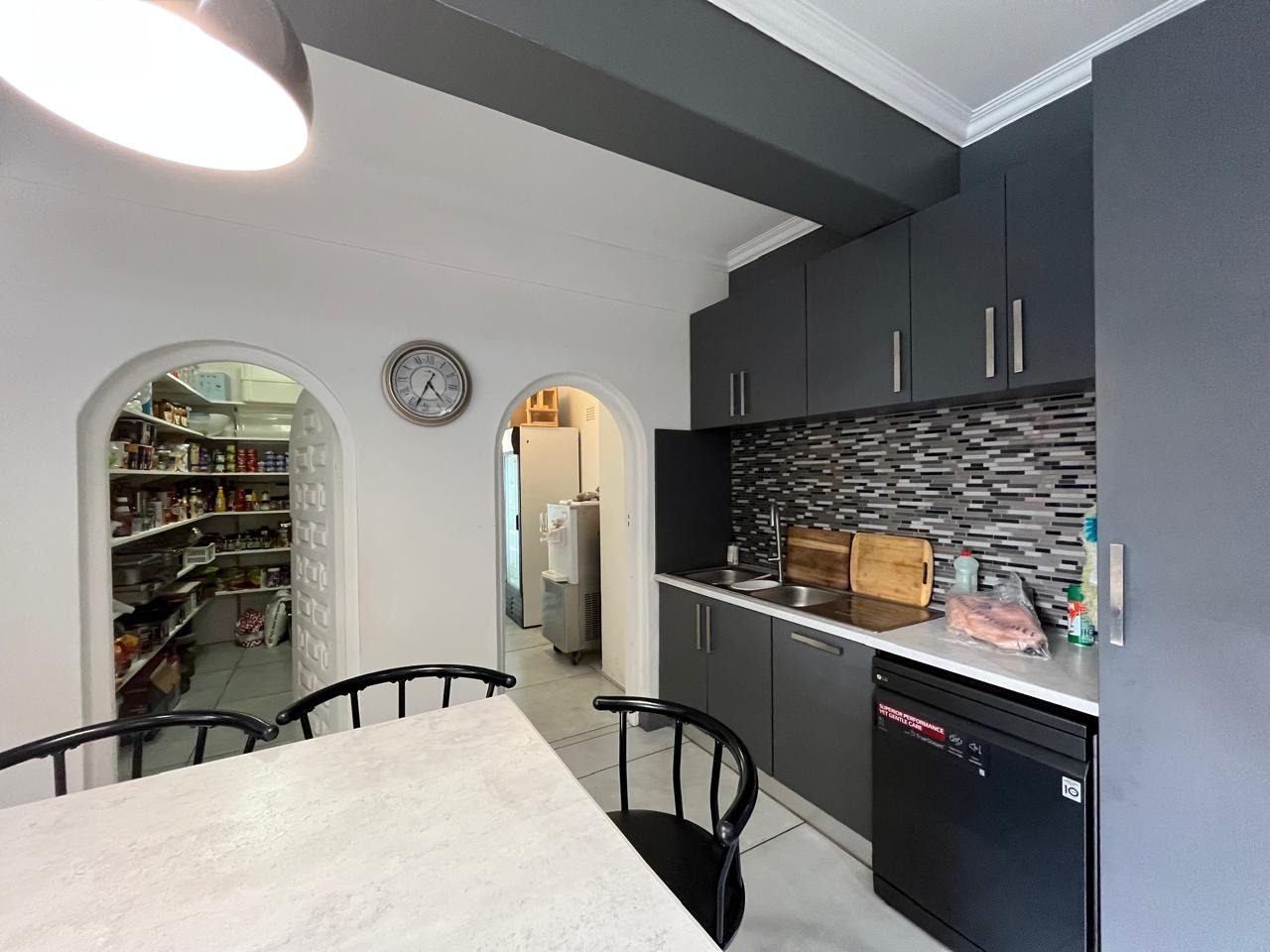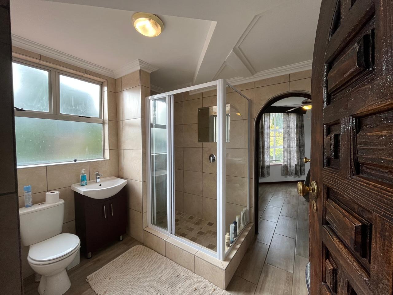 The exceptionally large kitchen is a culinary enthusiast's dream, complete with a scullery, pantry, and additional space for refrigeration and storage. It boasts a built-in braai, an AGA stove, and a gas stove, catering to diverse cooking preferences. All bedrooms are situated on the upper floor; four share two bathrooms and each includes air conditioning and walk-in cupboards. The master suite is a sanctuary, featuring a private balcony for relaxation, three walk-in cupboards, a safe, and an elegant en-suite bathroom with both a shower and a bath.