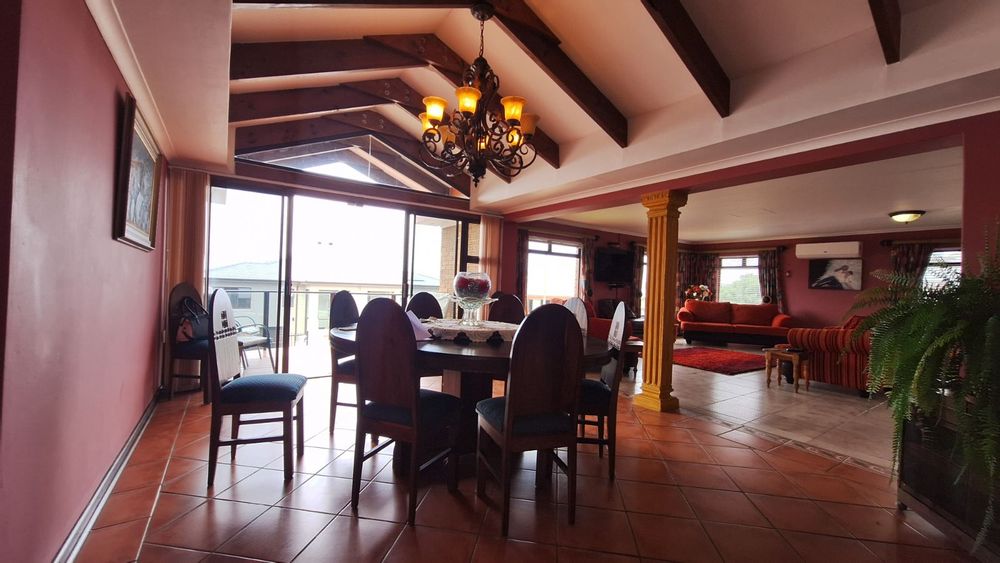 Upstairs, the heart of the home unfolds with an open-concept design. Prepare meals in the large kitchen with a scullery and breakfast nook, then gather in one of two spacious living areas or the elegant dining room. The ultimate entertainment space awaits, complete with an indoor swimming pool, bar, and built-in braai, perfect for hosting unforgettable get-togethers year-round.