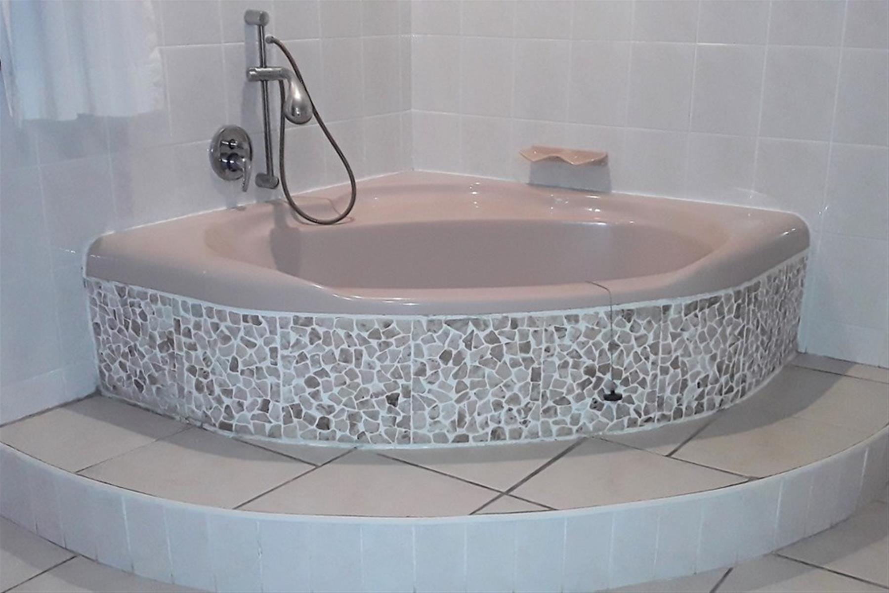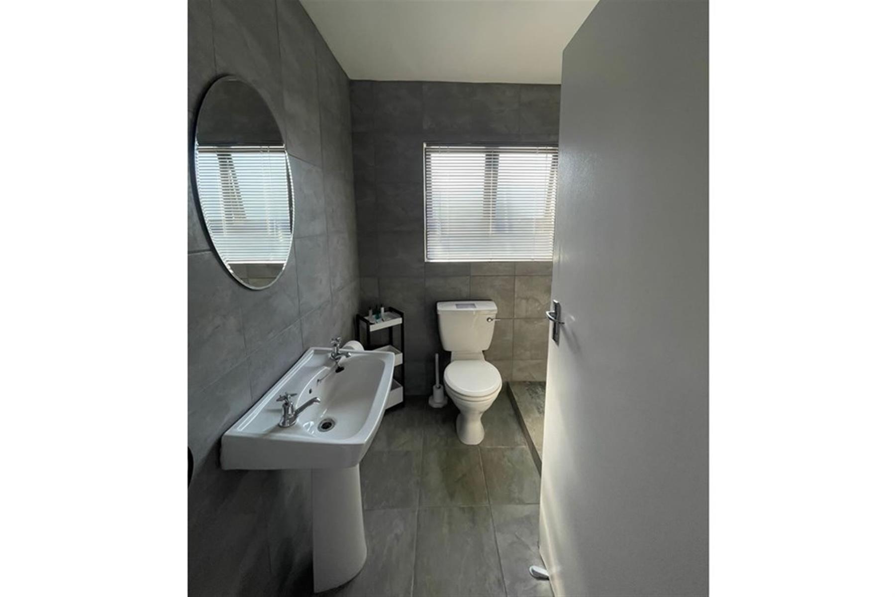 2 modern bathrooms, both with baths, showers, toilets, and basins for added convenience.