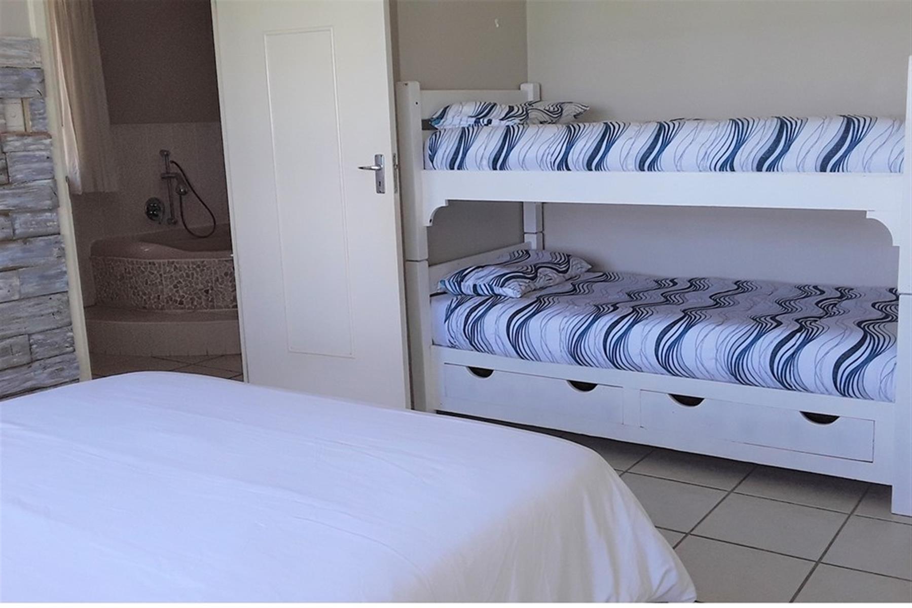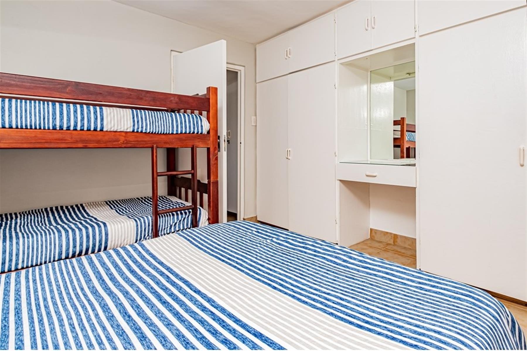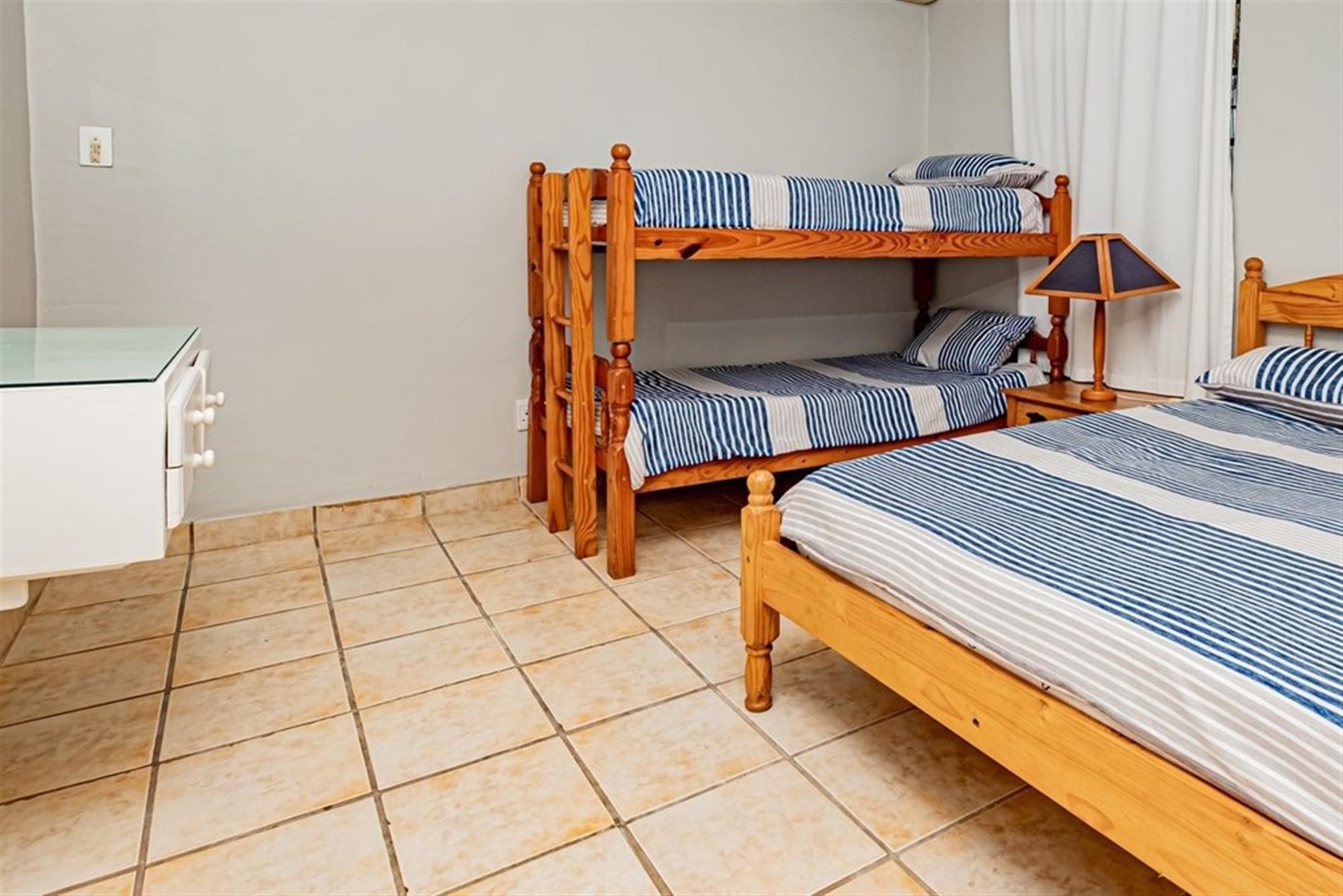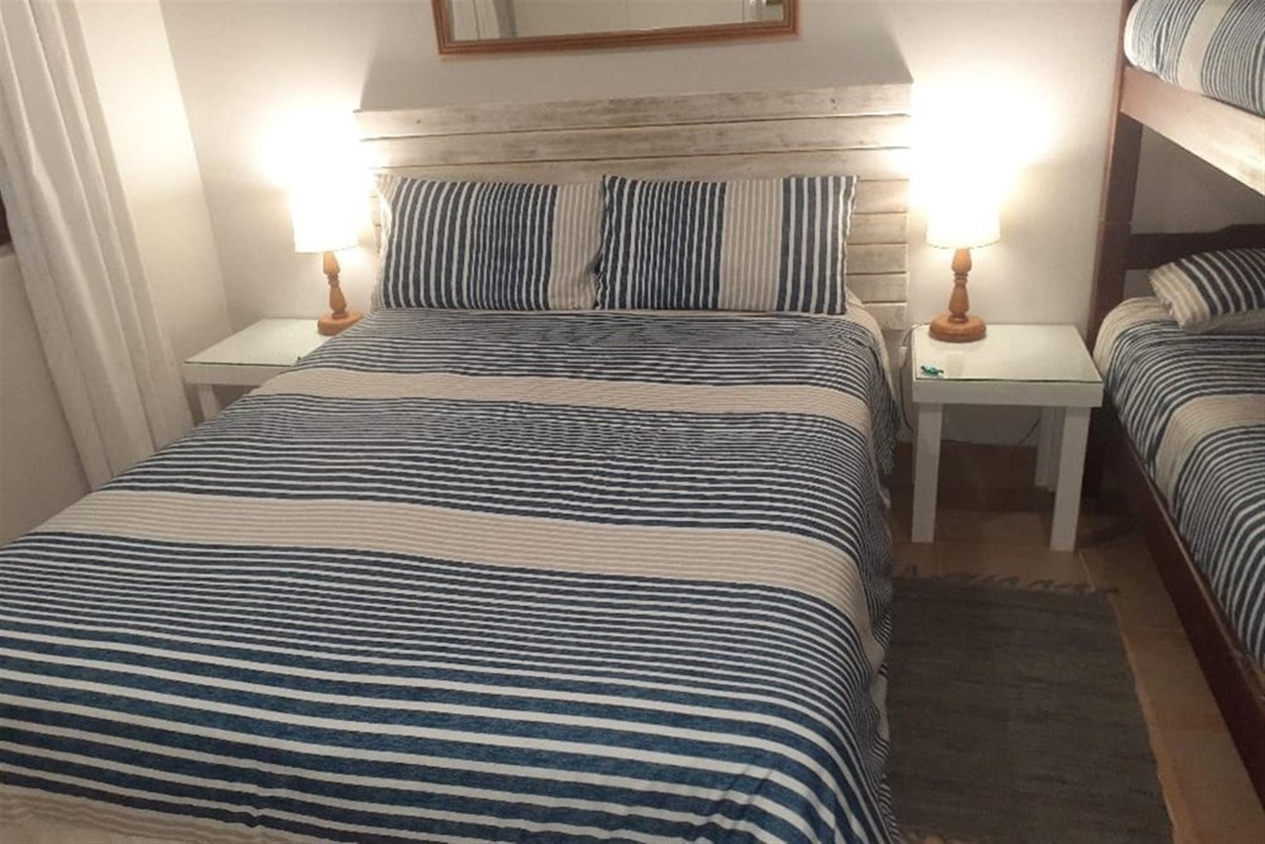2 spacious bedrooms, each with a double bed and bunk beds, providing comfortable accommodation for up to 4 adults and 4 children.