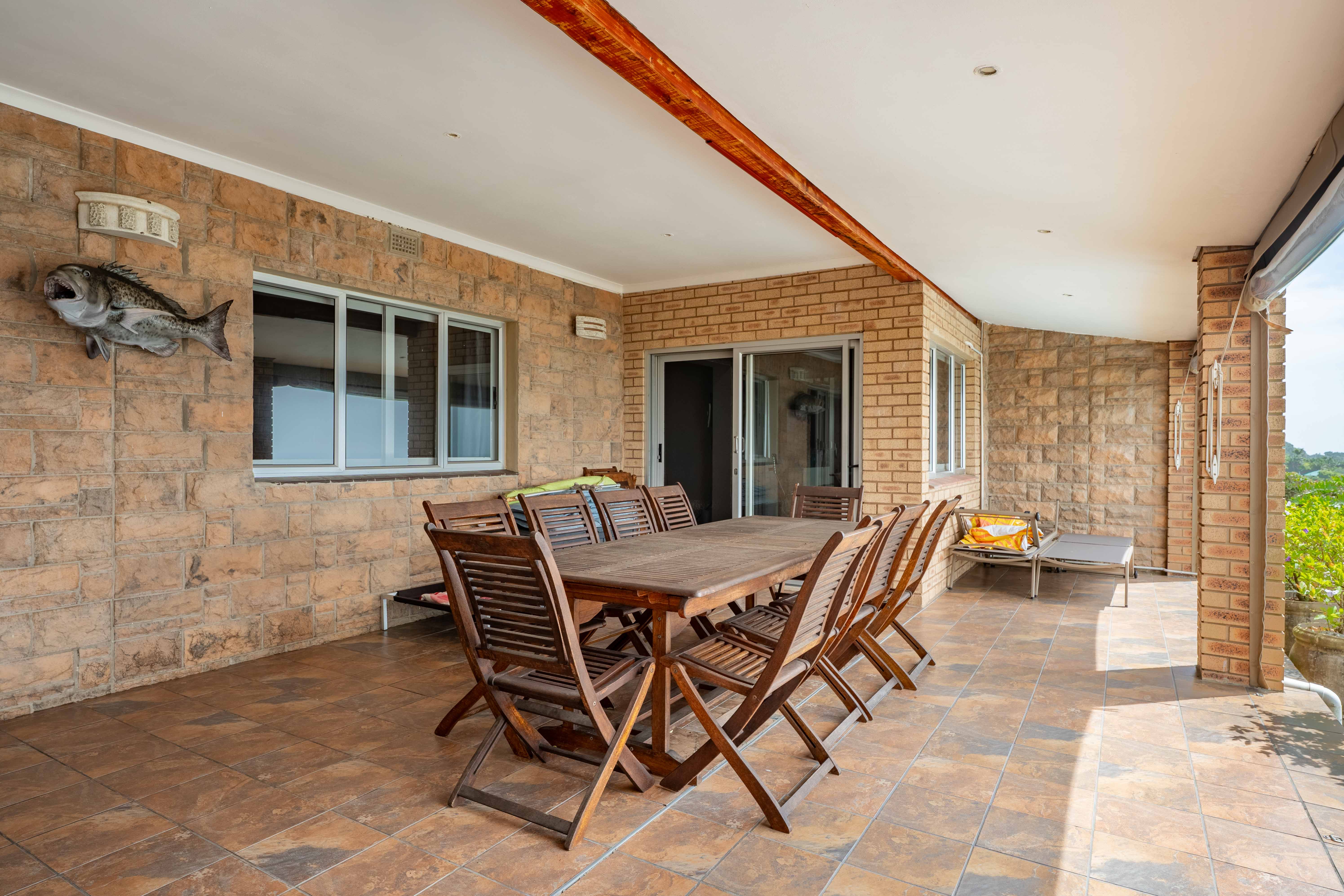 Designed for effortless entertaining, the veranda features a built-in braai, a dedicated wash-up facility, and ample room for relaxed gatherings. It is the kind of space where you can host friends and family all day long without ever needing to step indoors — the ultimate entertainer’s haven. Fully covered and protected, it flows seamlessly as an extension of the living area, creating an indoor-outdoor lifestyle that perfectly suits seaside living.