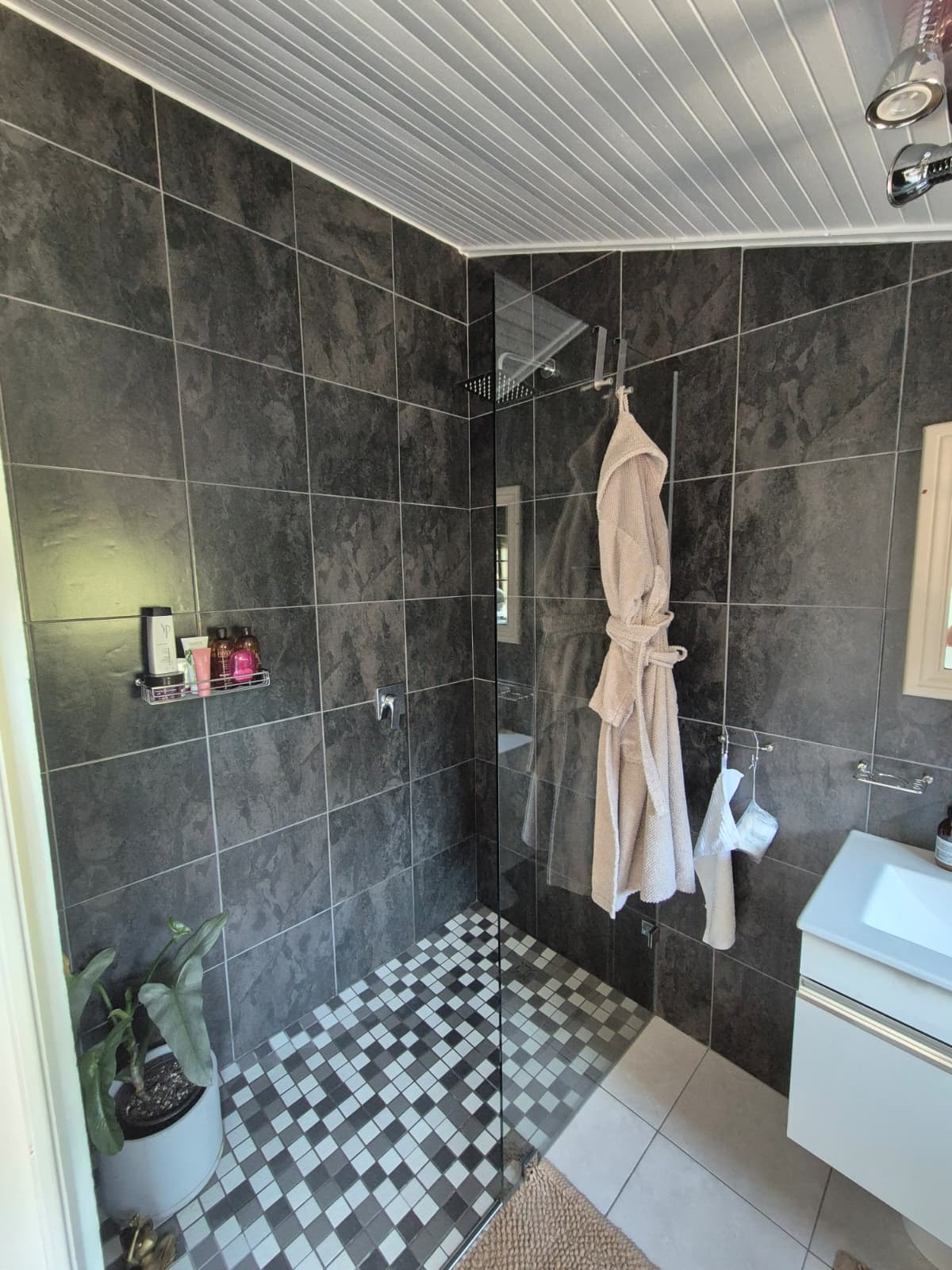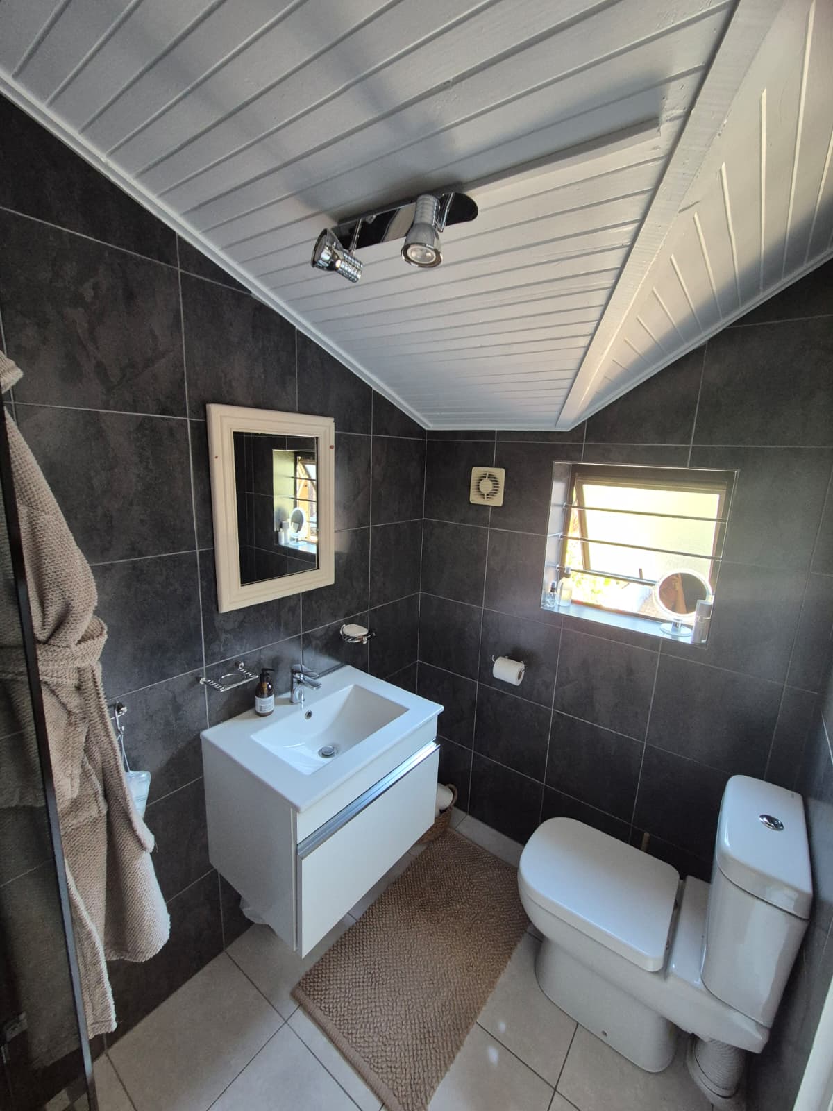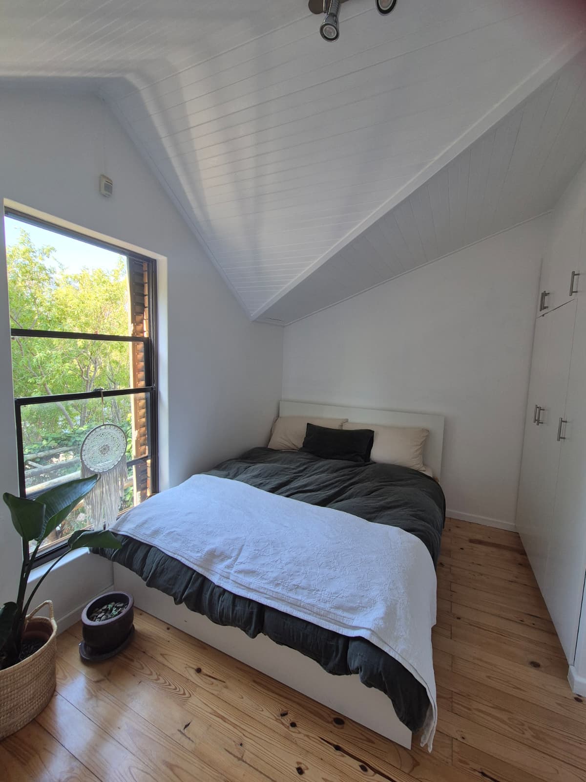 The modern bathroom boasts sleek finishes and thoughtful design. The sunny bedroom serves as a peaceful retreat, offering generous built-in cupboards and sufficient space for an additional chest of drawers if required.
