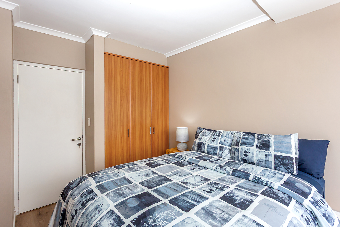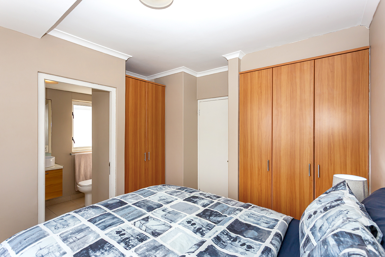 The main bedroom includes a stylish en-suite bathroom, while the second bedroom and bathroom are thoughtfully positioned for convenience and privacy. Uniquely located away from common walkways, the apartment enjoys a rare sense of seclusion with no foot traffic outside the door.