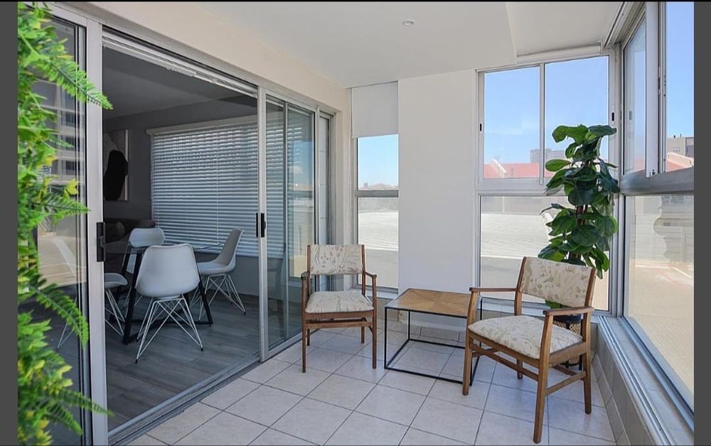 Relax in the spacious lounge, bathed in natural light, with oversized glass sliding doors opening onto your own private, enclosed balcony with partial sea views, the ideal spot for morning coffee or sunset relaxation. Elegant tiling flows throughout the home. The tranquil bedroom also enjoys access to the balcony through large glass doors and includes built-in cupboards. The contemporary bathroom offers a large walk-in shower complete with an extractor fan for fresh ventilation.