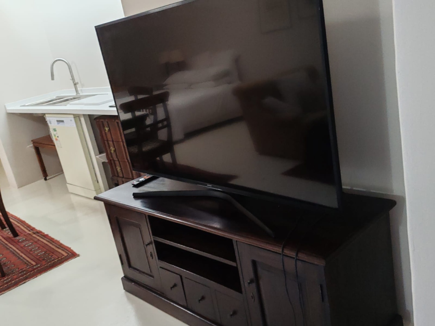 The unit has a fully equipped kitchen, big screen TV and a single secure parking space.