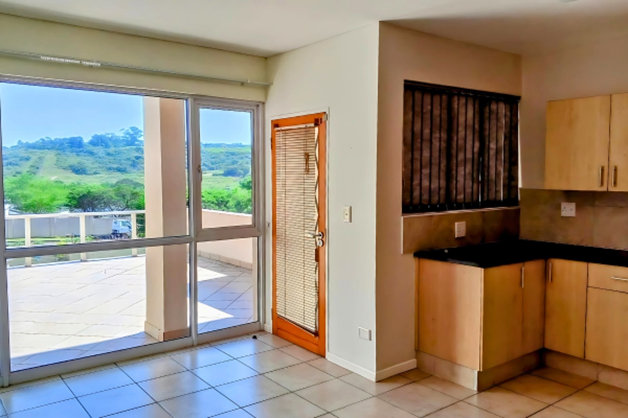 The modern kitchen, fitted with sleek cupboards and elegant granite countertops, flows seamlessly into a warm and inviting lounge. From here, step onto your private balcony—a perfect spot to sip your morning coffee or unwind in the evening.