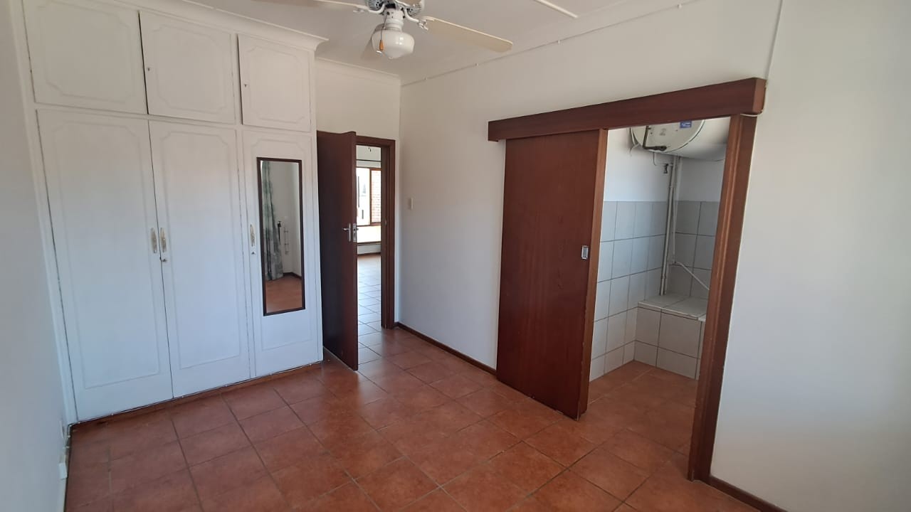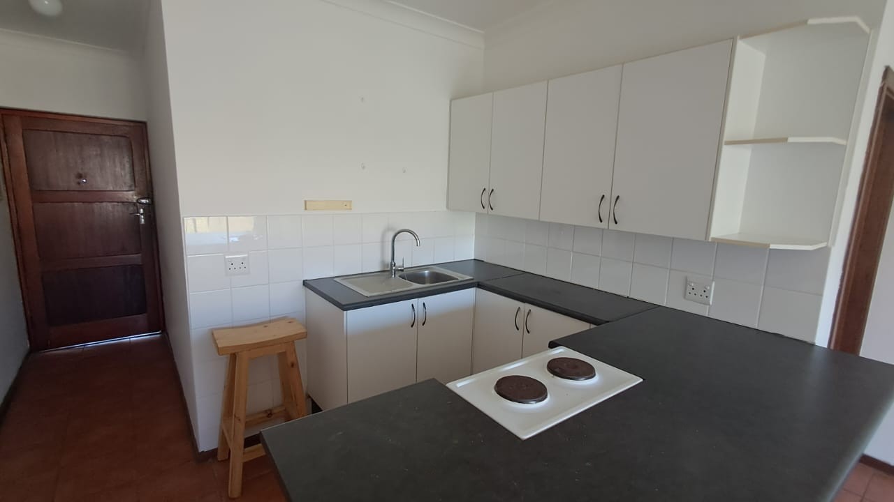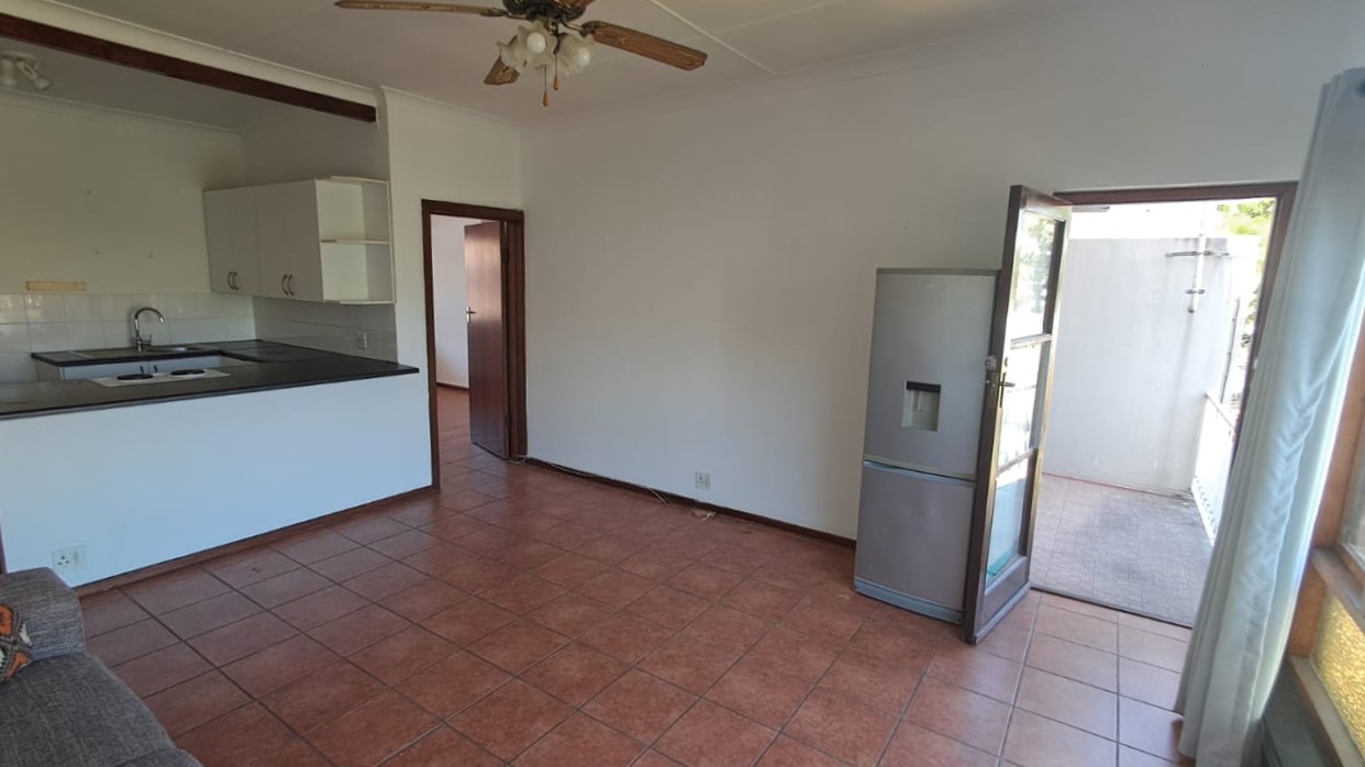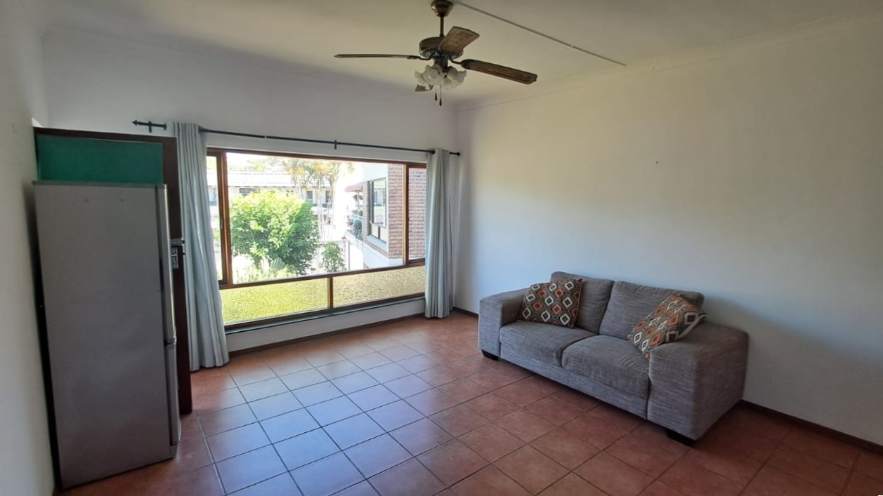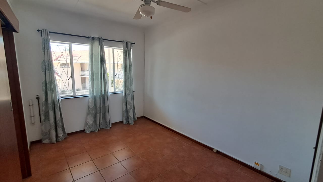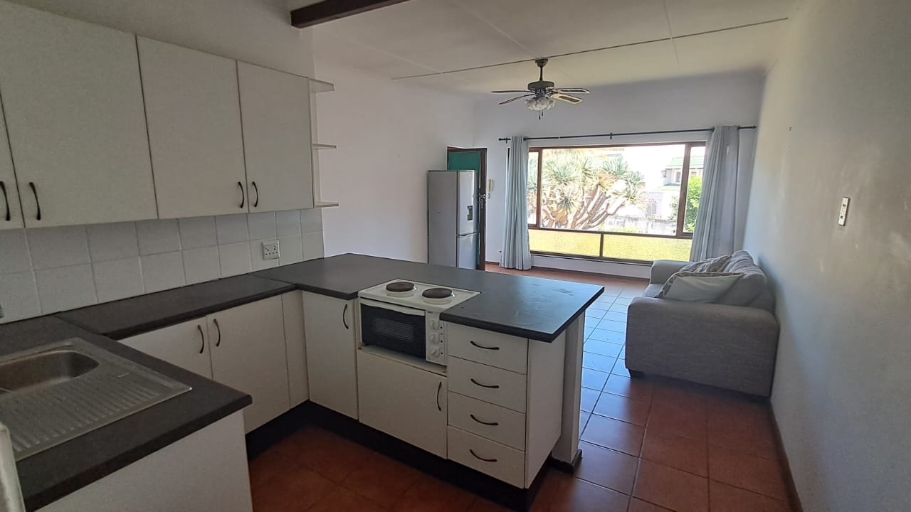 The apartment features a spacious open-plan lounge and kitchen with ample cupboard and counter space. The lounge opens onto a private balcony, perfect for relaxed mornings or evenings. Large windows allow for plenty of natural light, while tiled floors and ceiling fans throughout add to the comfort and easy maintenance.