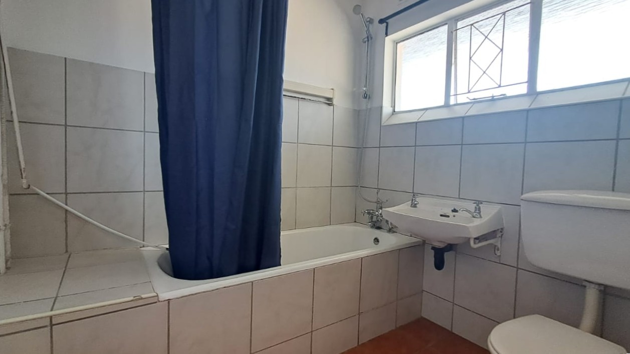 The separate bedroom offers built-in cupboards and an en-suite bathroom fitted with a bath, shower-over-bath, basin, and toilet. There is also plumbing in place for a washing machine.