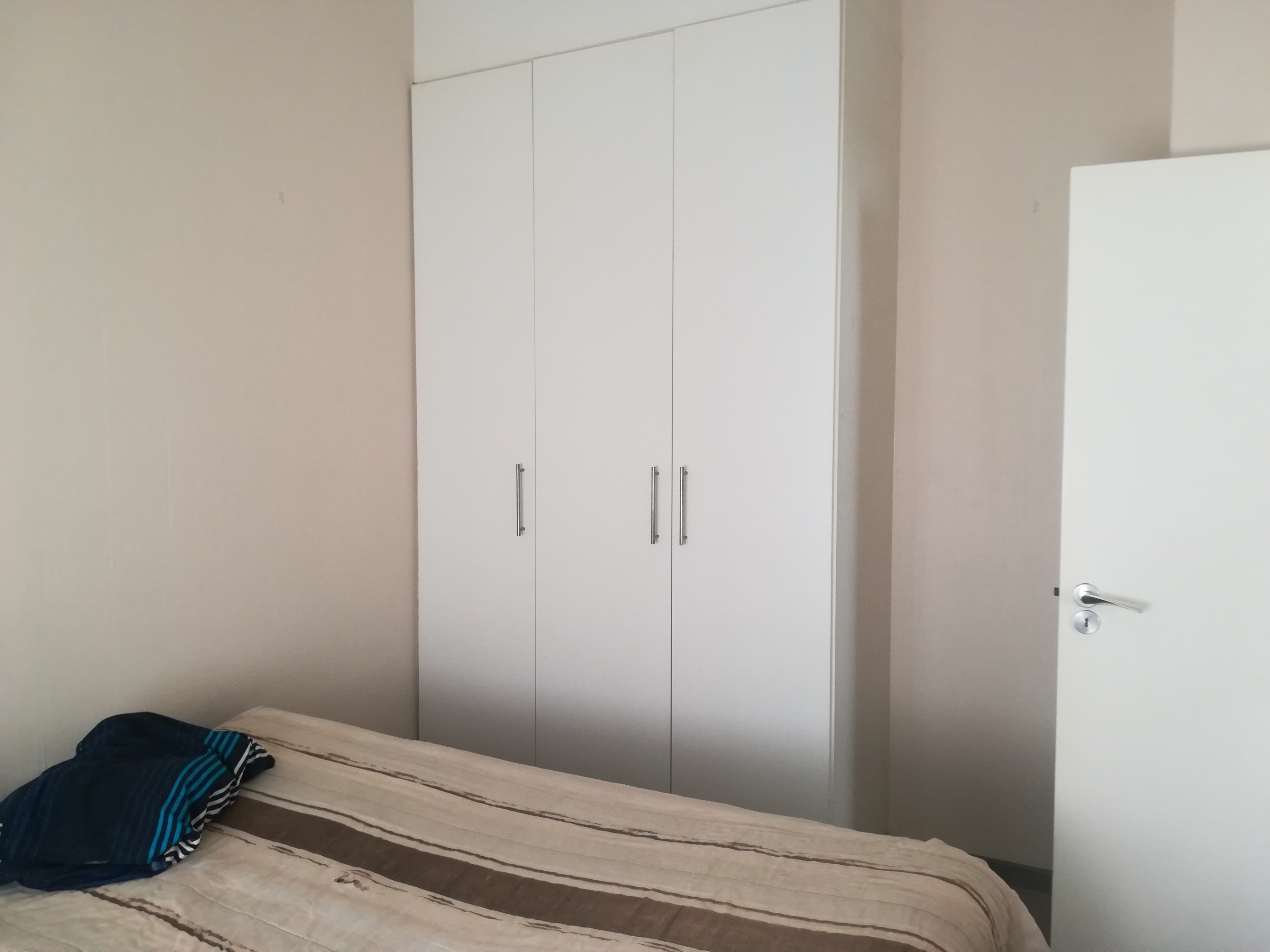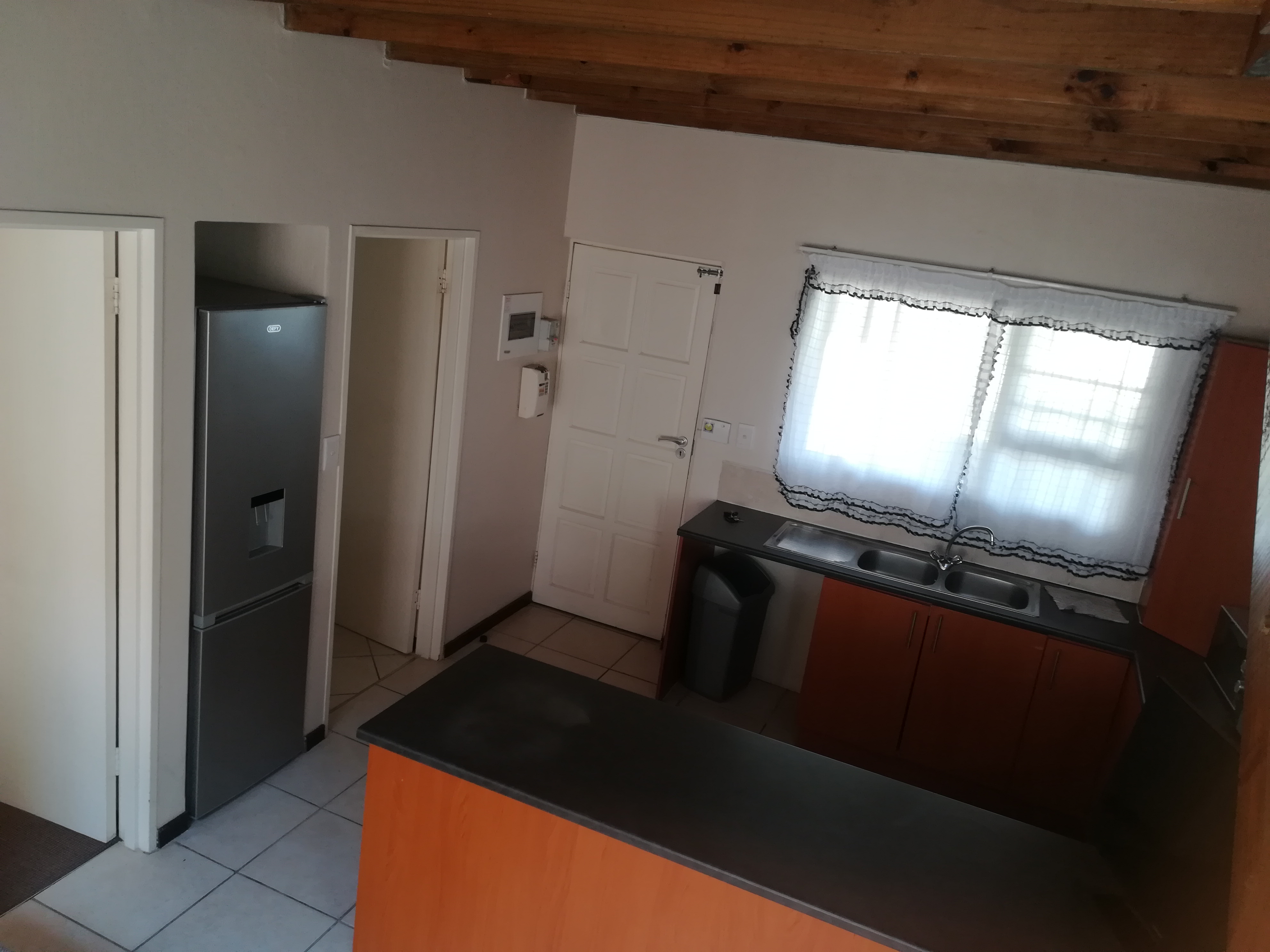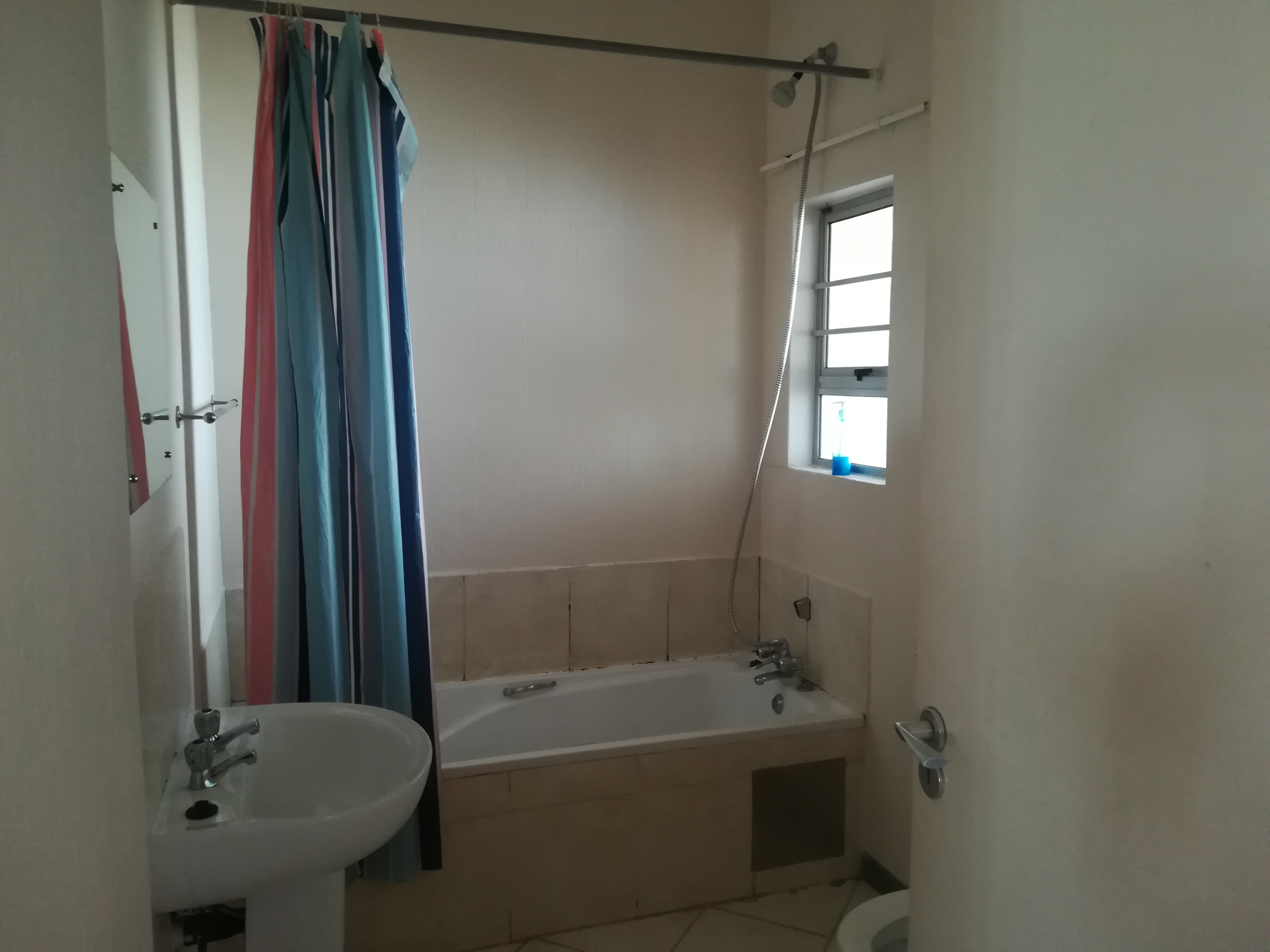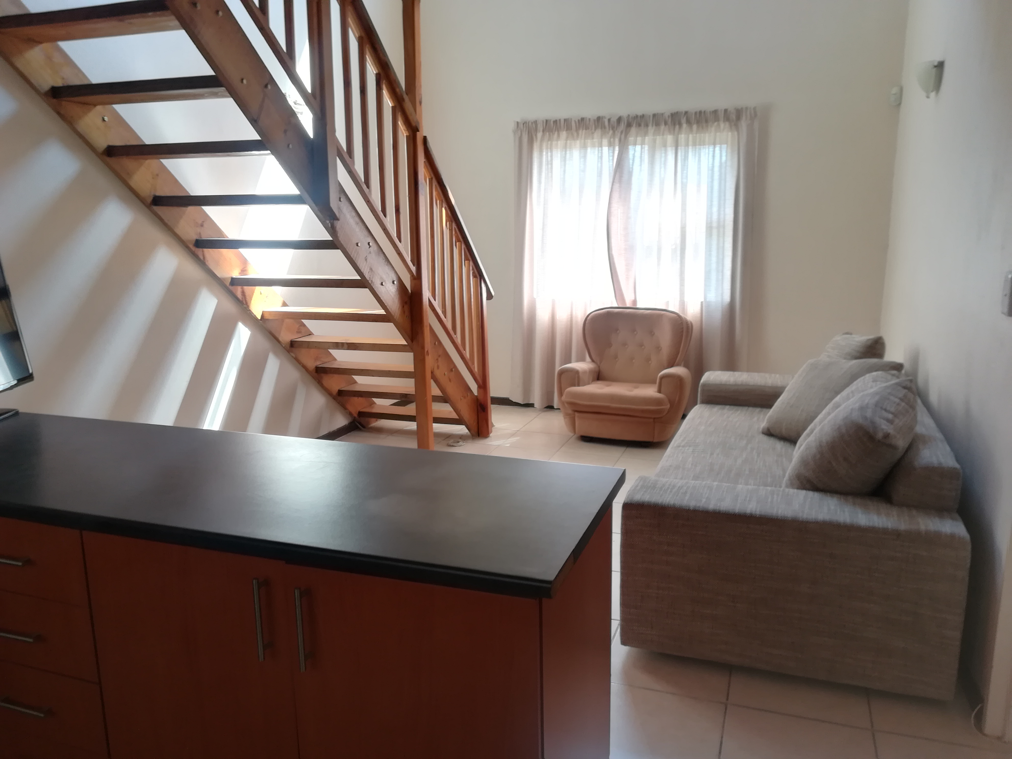 One-bedroom unit with an open-plan kitchen and lounge. The property features a full bathroom with a bath, toilet, basin, and an over-bath shower. An upstairs loft can be used as a study or second bedroom. The unit includes shade-cloth parking with an additional second parking bay, as well as access to a communal swimming pool and playground area.