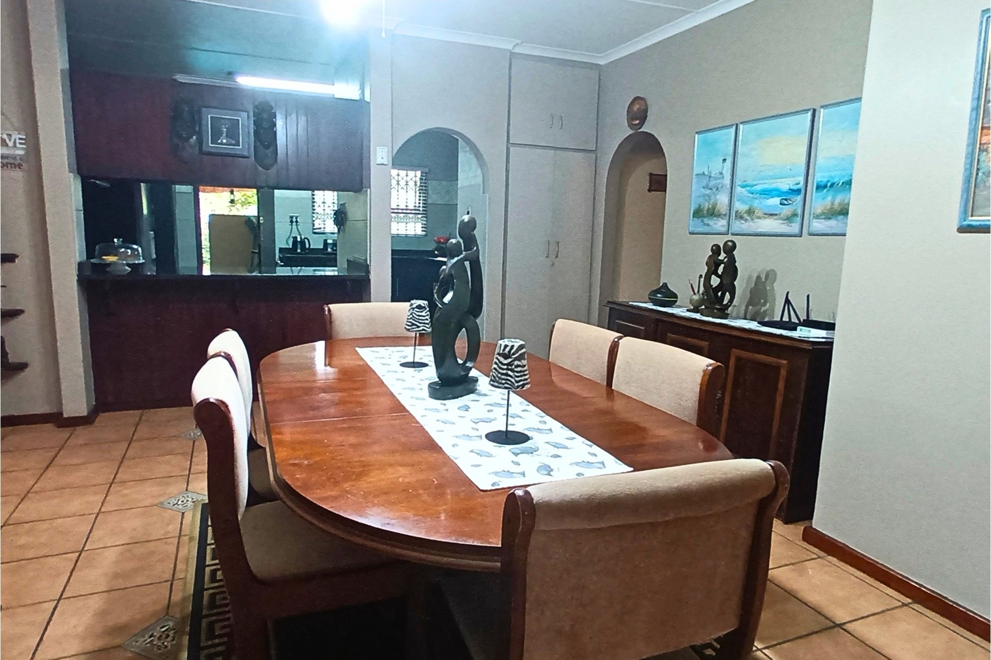 The living areas are generous in size and designed with both comfort and entertaining in mind. There are three lounges and a formal dining room, creating the perfect setting for relaxed family time or hosting guests. The kitchen is neatly fitted with an under-counter oven, hob, and extractor fan, and flows effortlessly into the living spaces, making it practical and functional.
