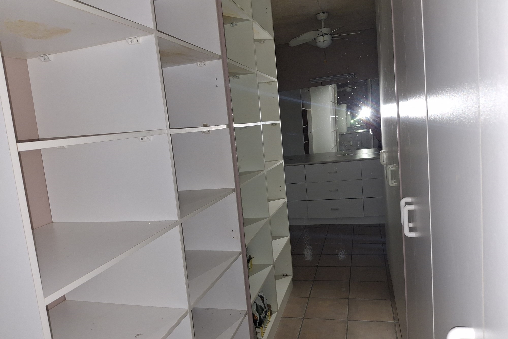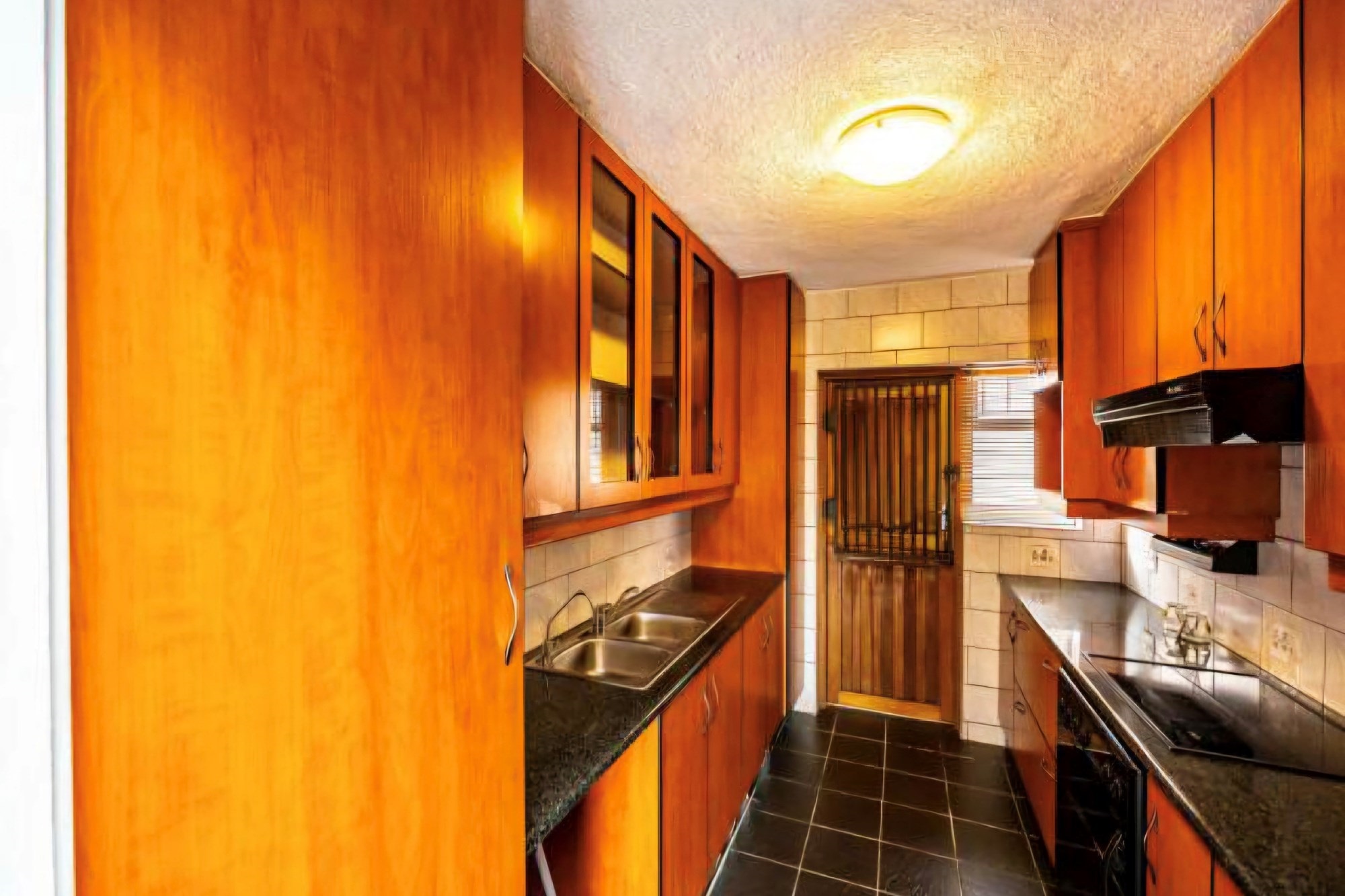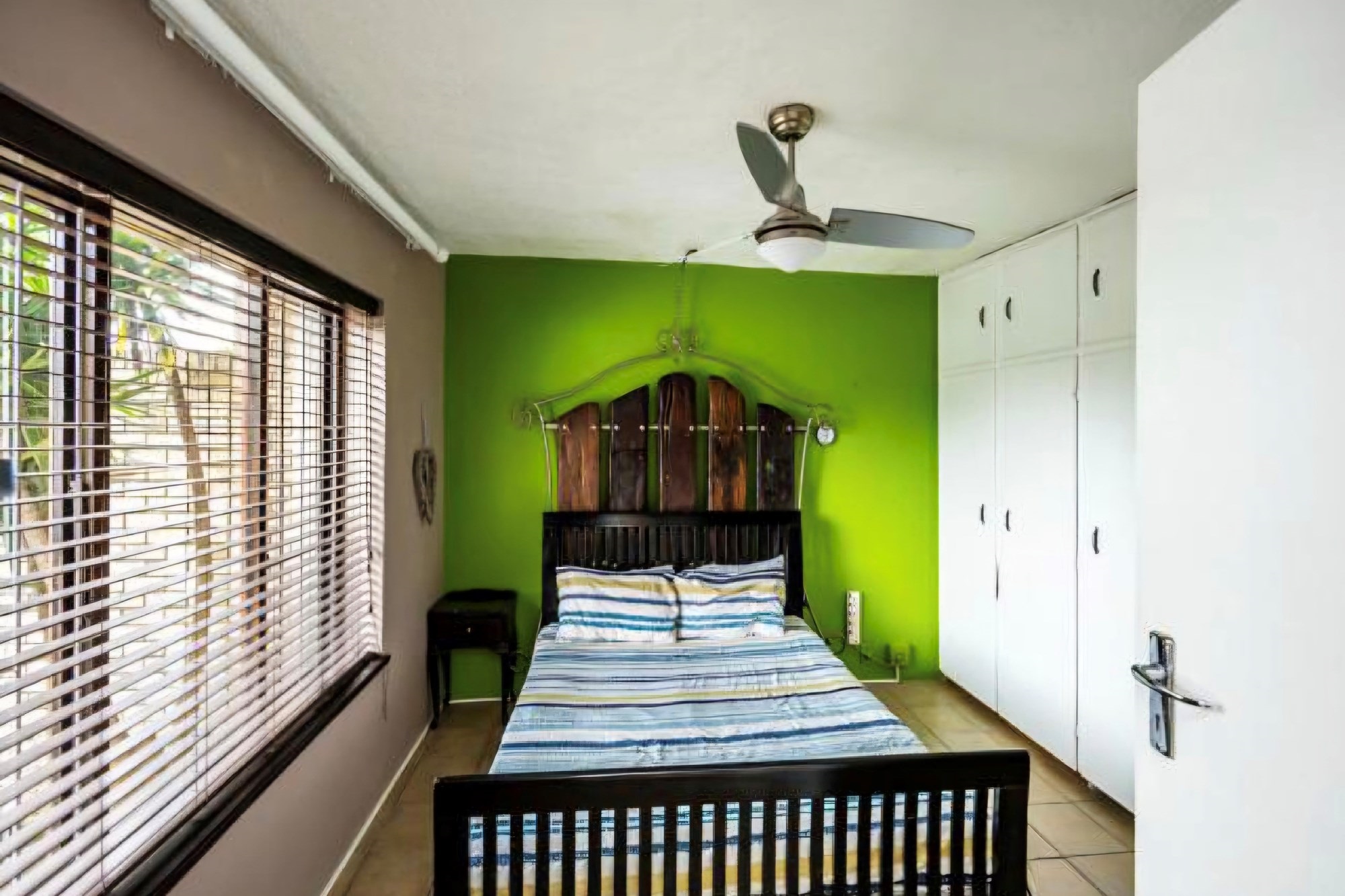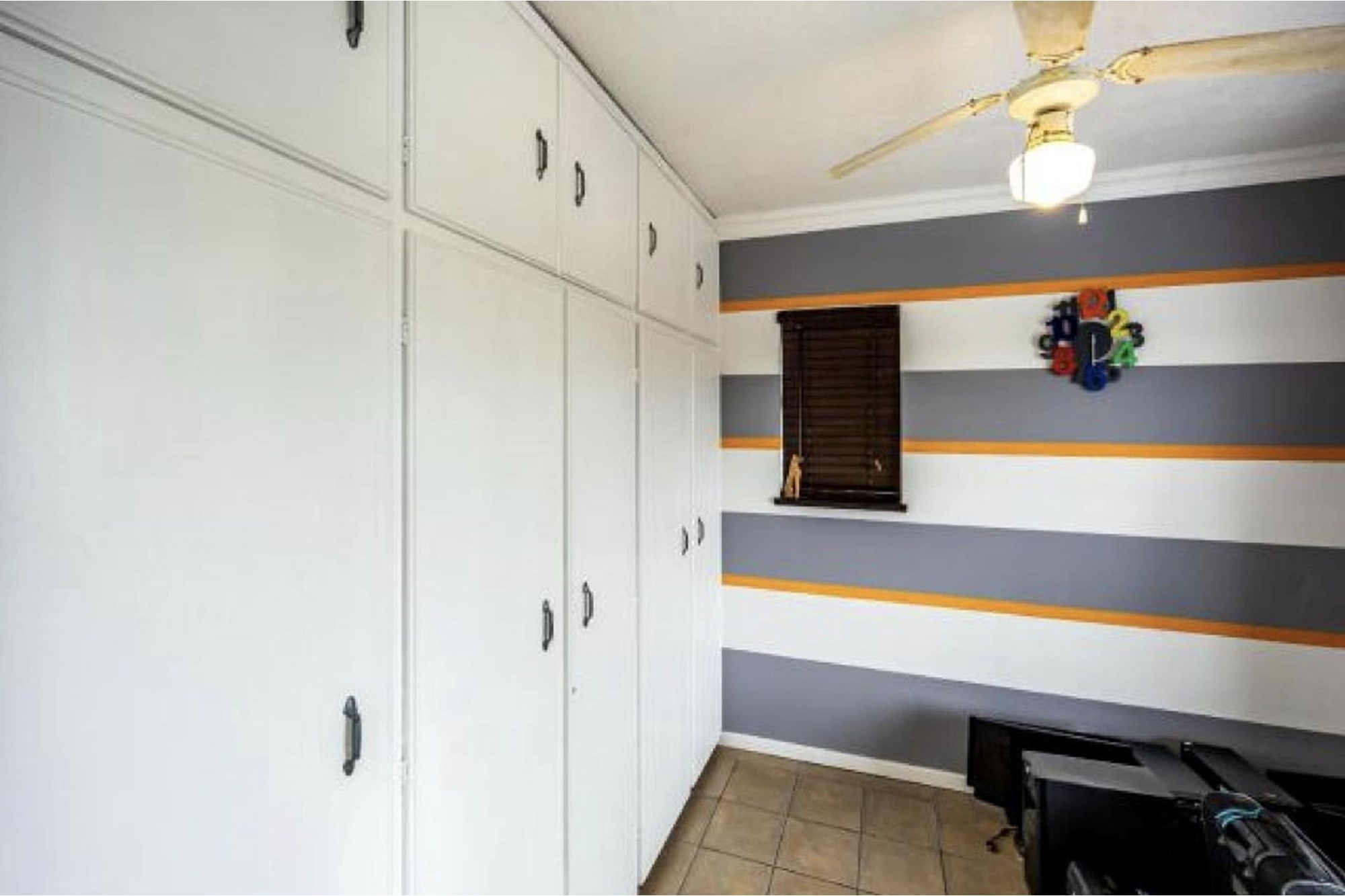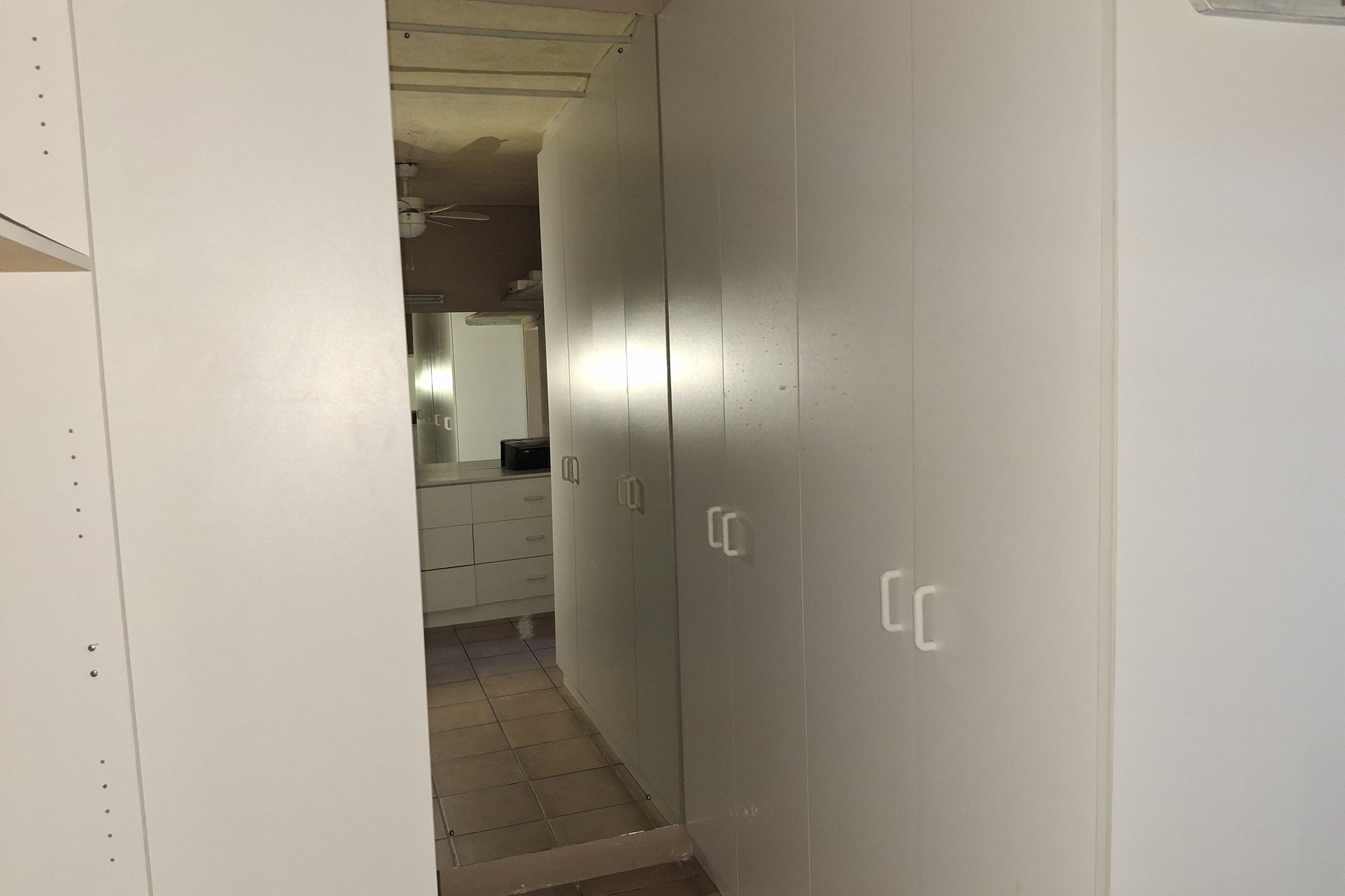 This duplex unit that is located in a secure gated complex with remote access control, boast and open plan living area with a sliding door leading on to the balcony. The kitchen is fitted with granite counter tops and ample built in cupboards. 2 spacious bedrooms upstairs with BIC, fitted with ceiling fans, blinds on the windows and a full family bathroom.