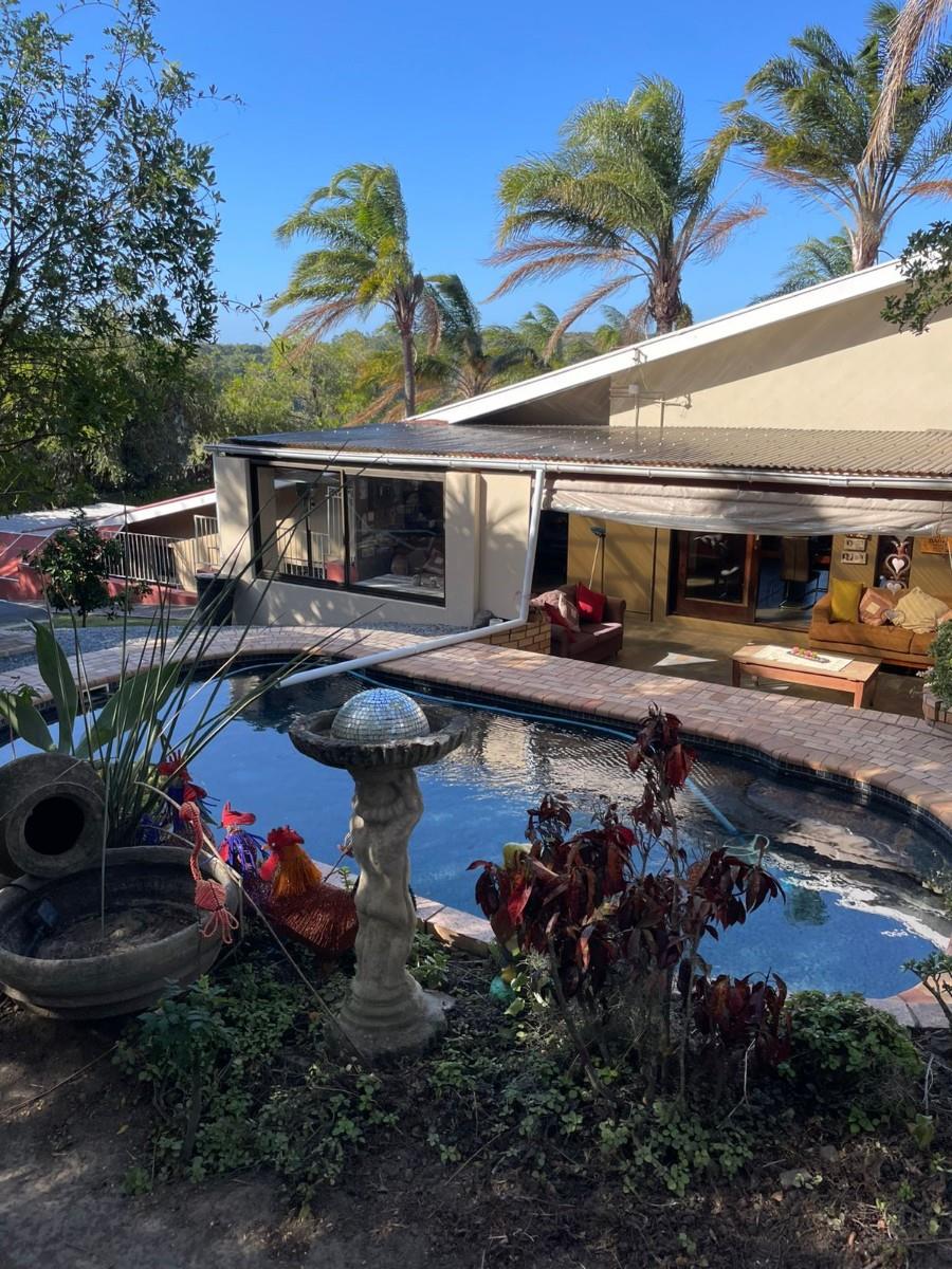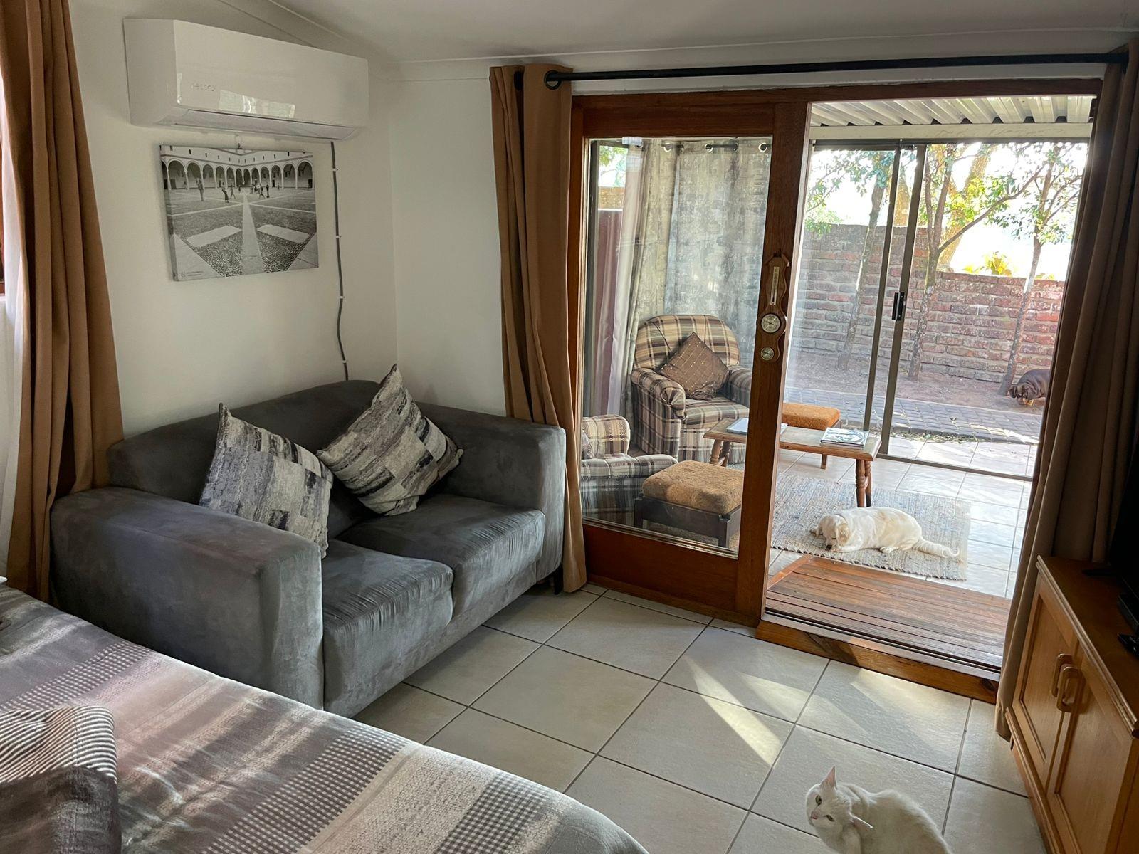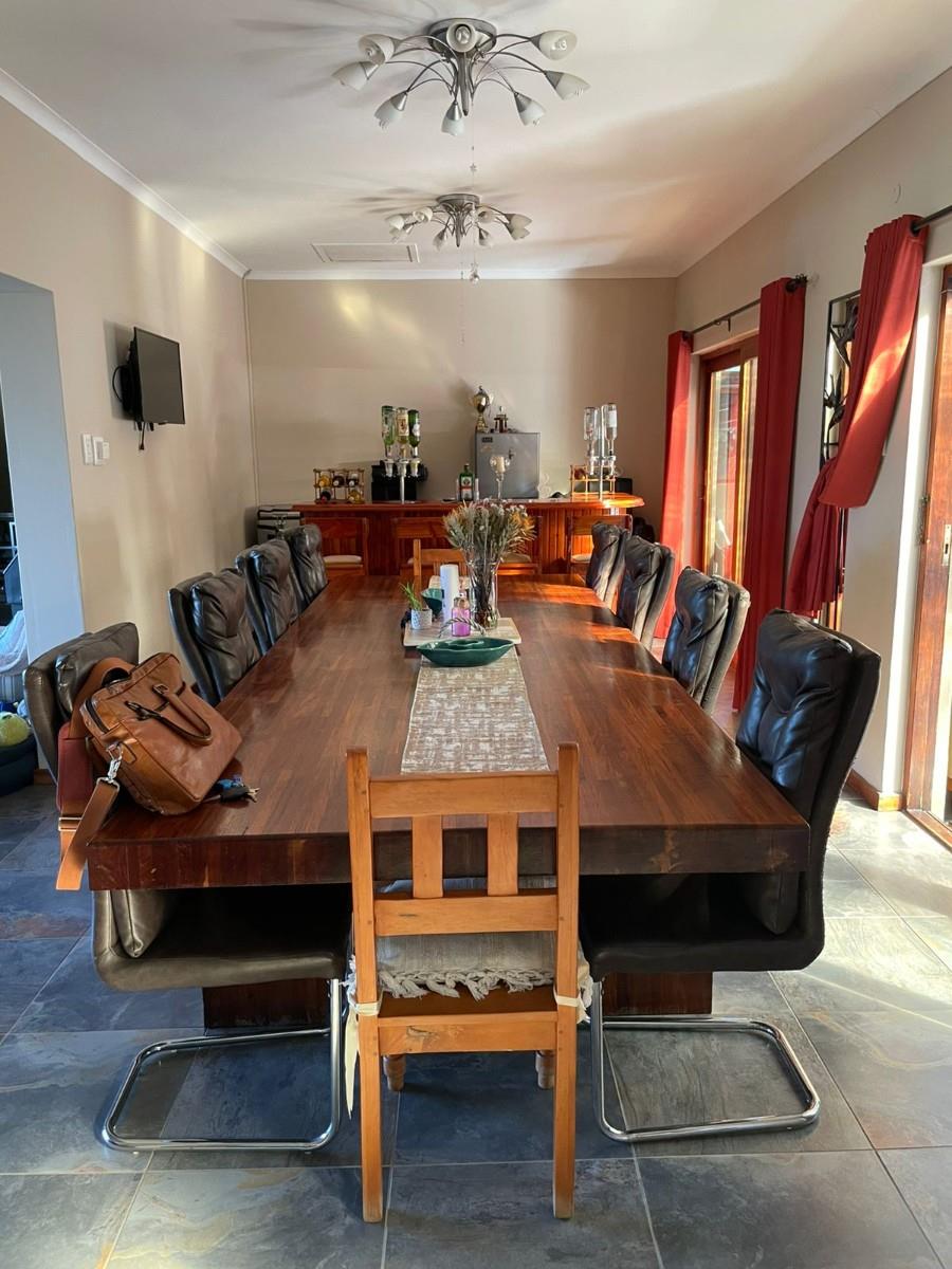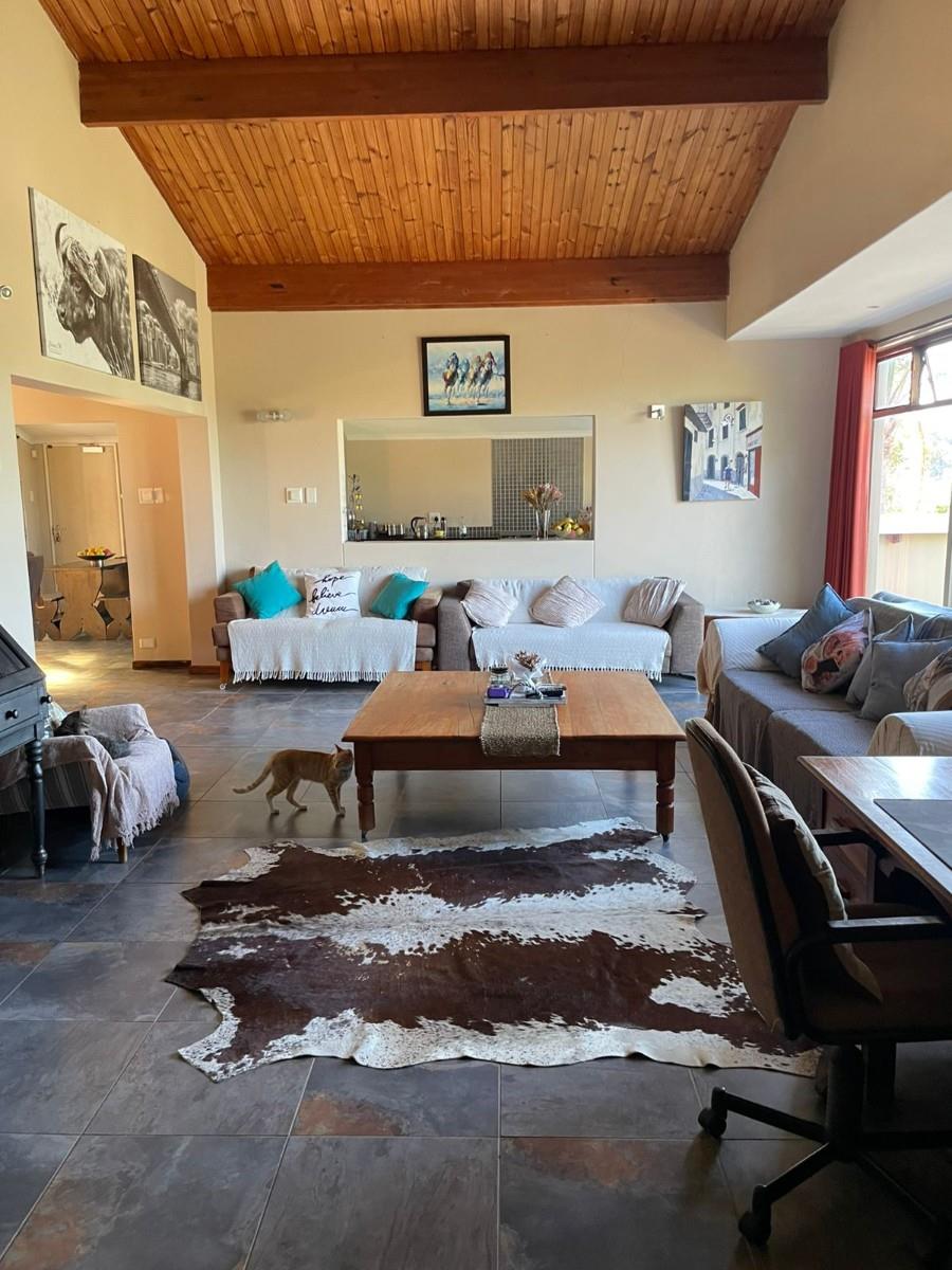 An expansive, covered entertainment area extends from the living and dining spaces, complete with an indoor braai and ample room for hosting family and friends. This area overlooks a sparkling swimming pool, creating a seamless indoor-outdoor lifestyle that is perfectly suited to the Eastern Cape climate. The garden is further enhanced by a selection of mature fruit trees, including citrus, avocado and fig, adding both charm and practicality.