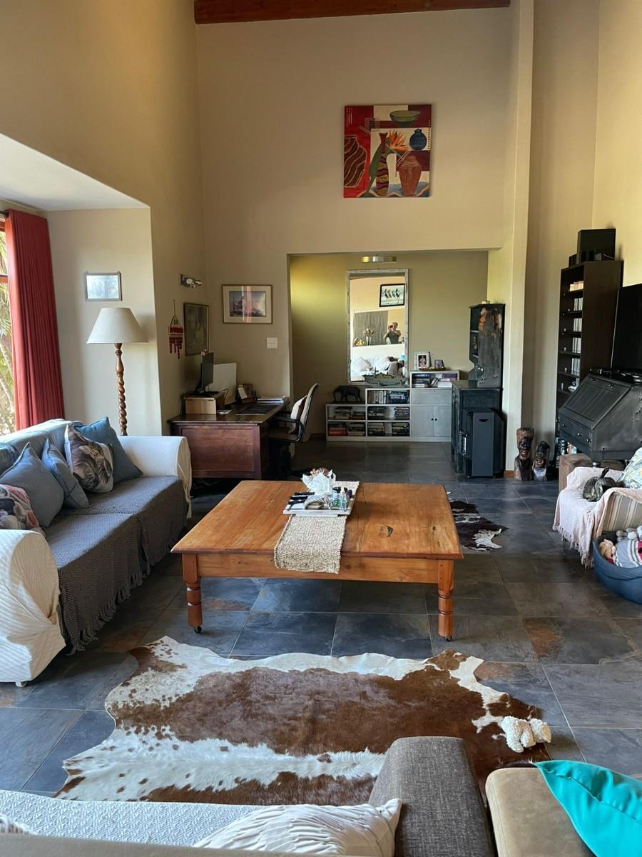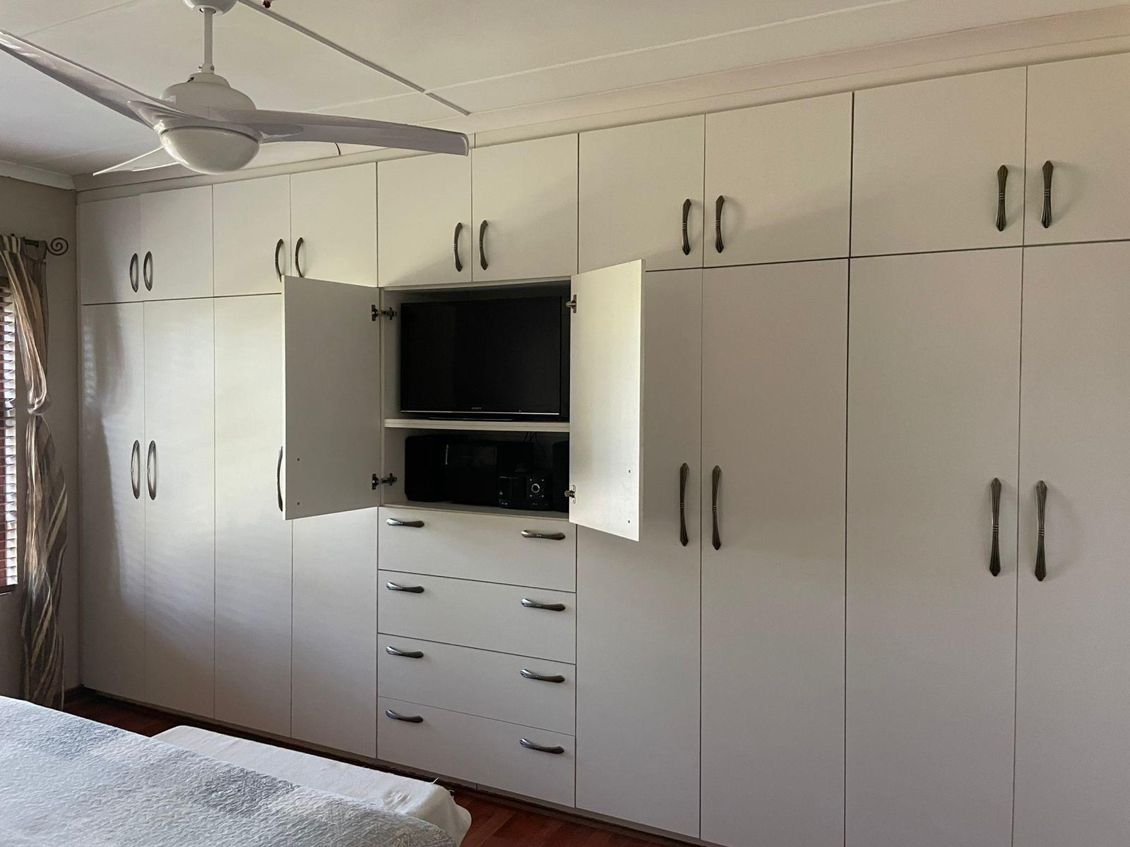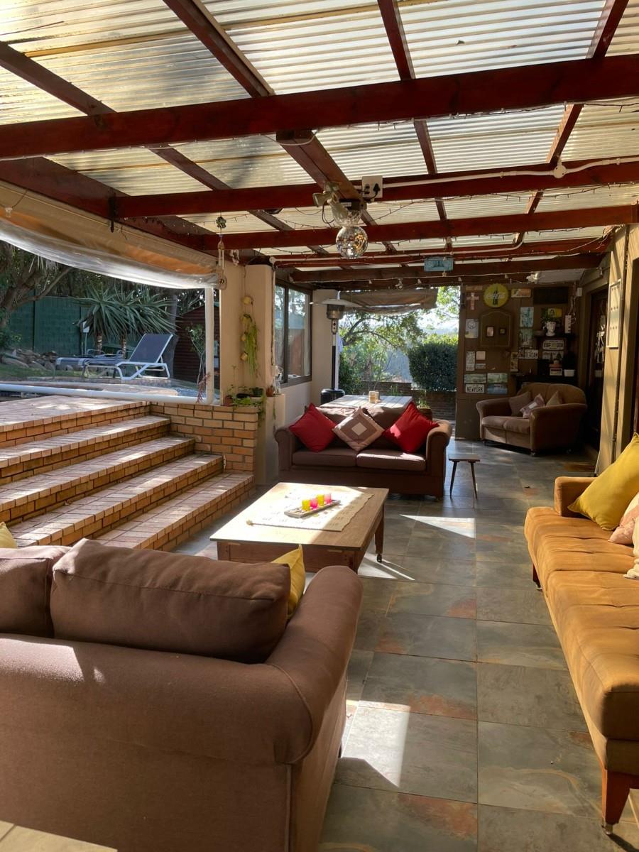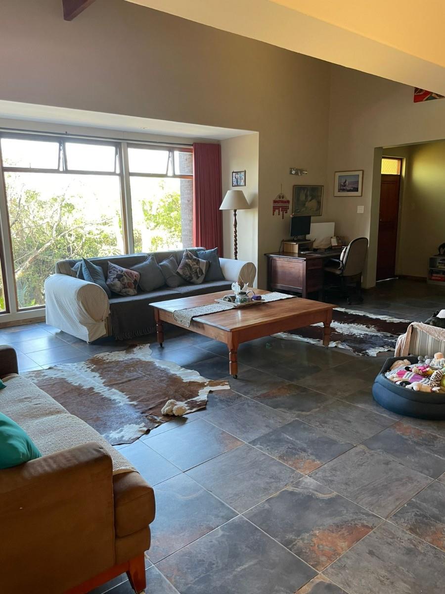 An expansive, covered entertainment area extends from the living and dining spaces, complete with an indoor braai and ample room for hosting family and friends. This area overlooks a sparkling swimming pool, creating a seamless indoor-outdoor lifestyle that is perfectly suited to the Eastern Cape climate. The garden is further enhanced by a selection of mature fruit trees, including citrus, avocado and fig, adding both charm and practicality.