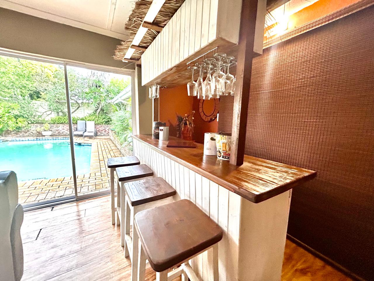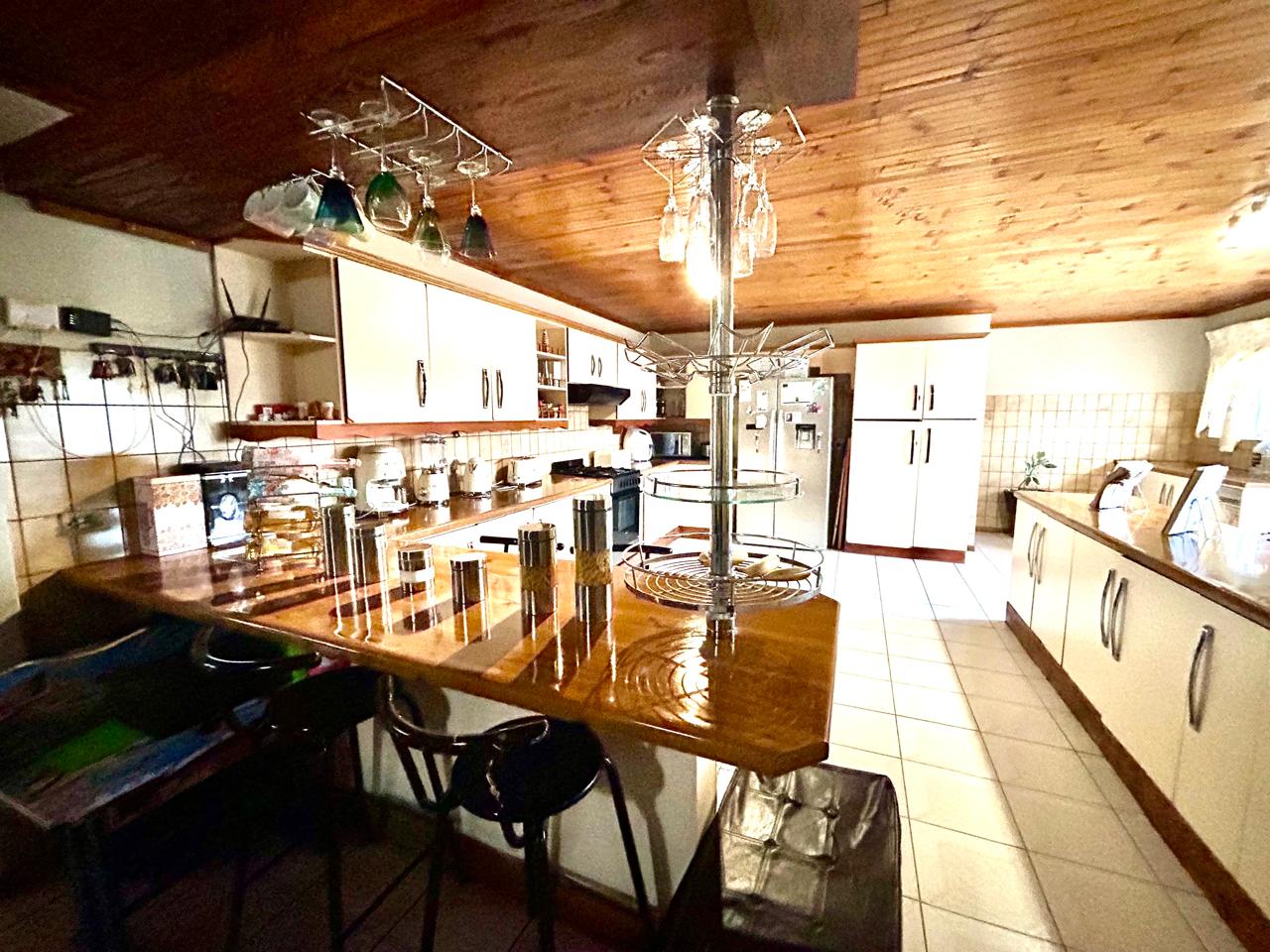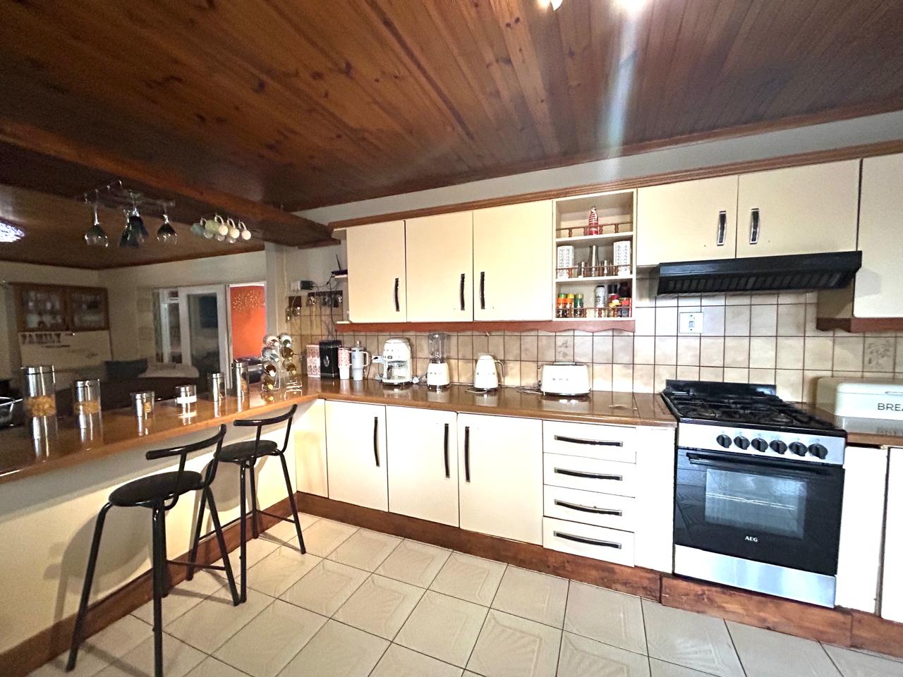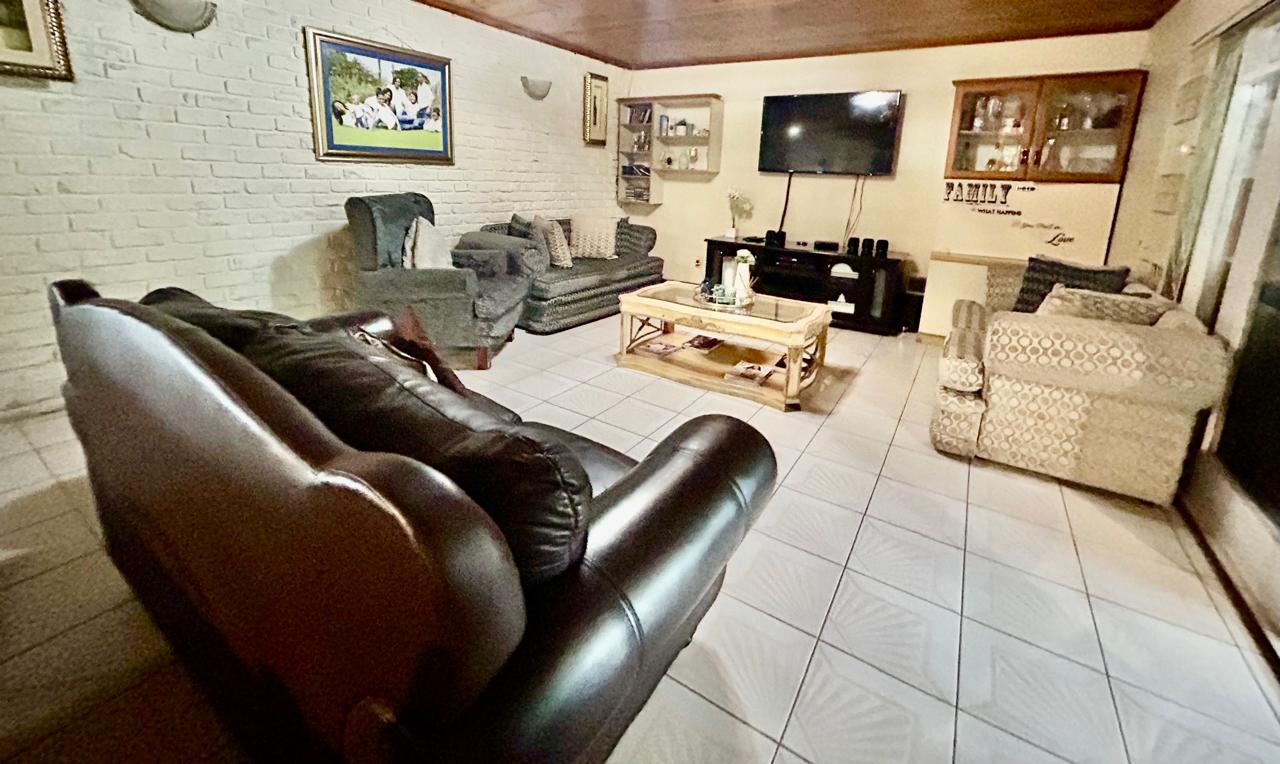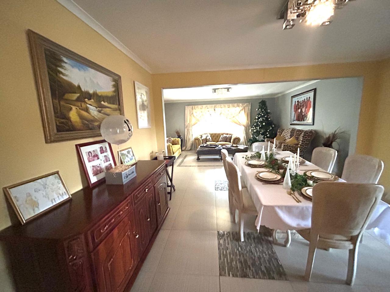 Multiple living areas enhance the home’s versatility, featuring two comfortable lounges and an open-plan dining area that seamlessly connects to a large, well-equipped kitchen with a separate scullery—designed for convenience and easy flow.