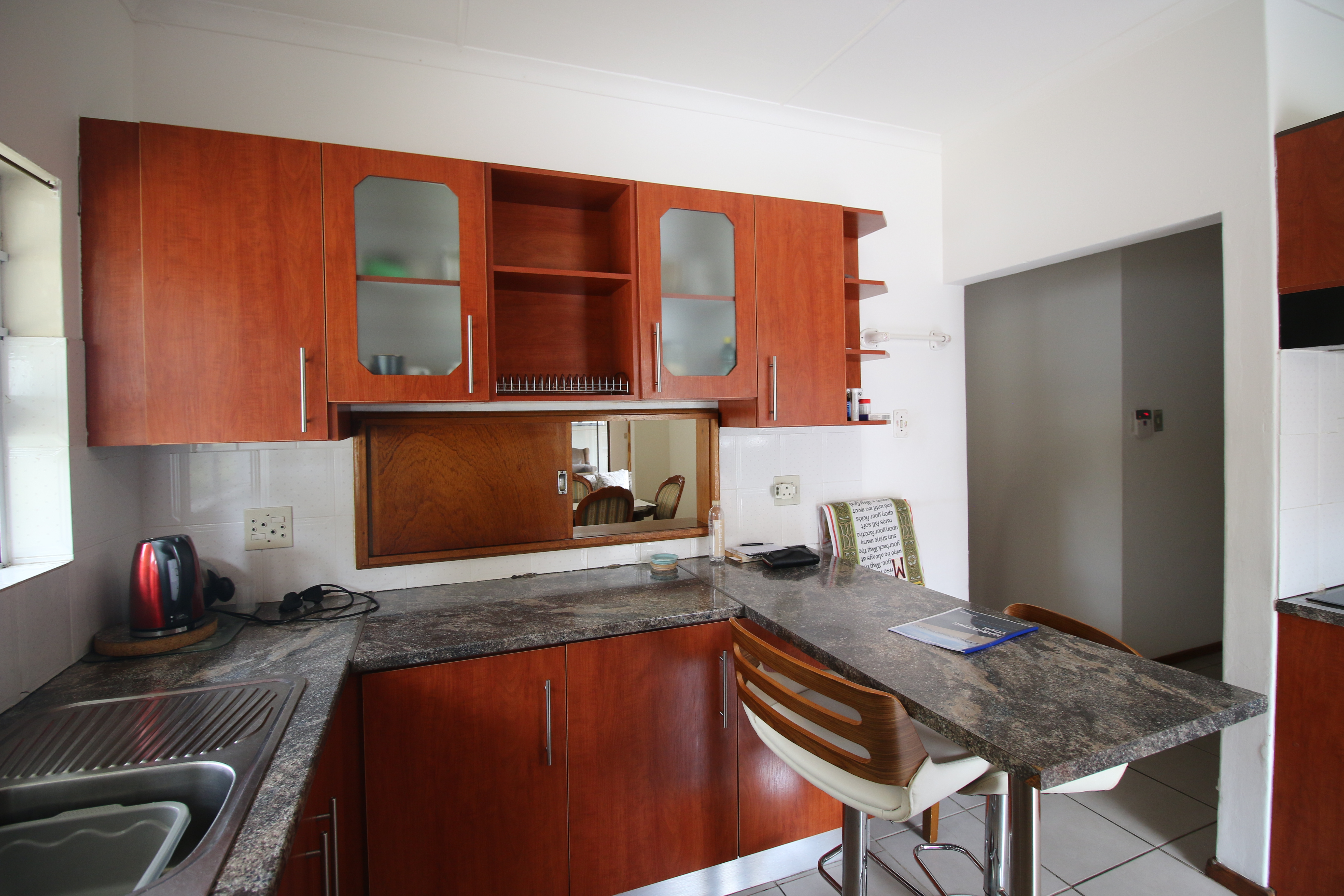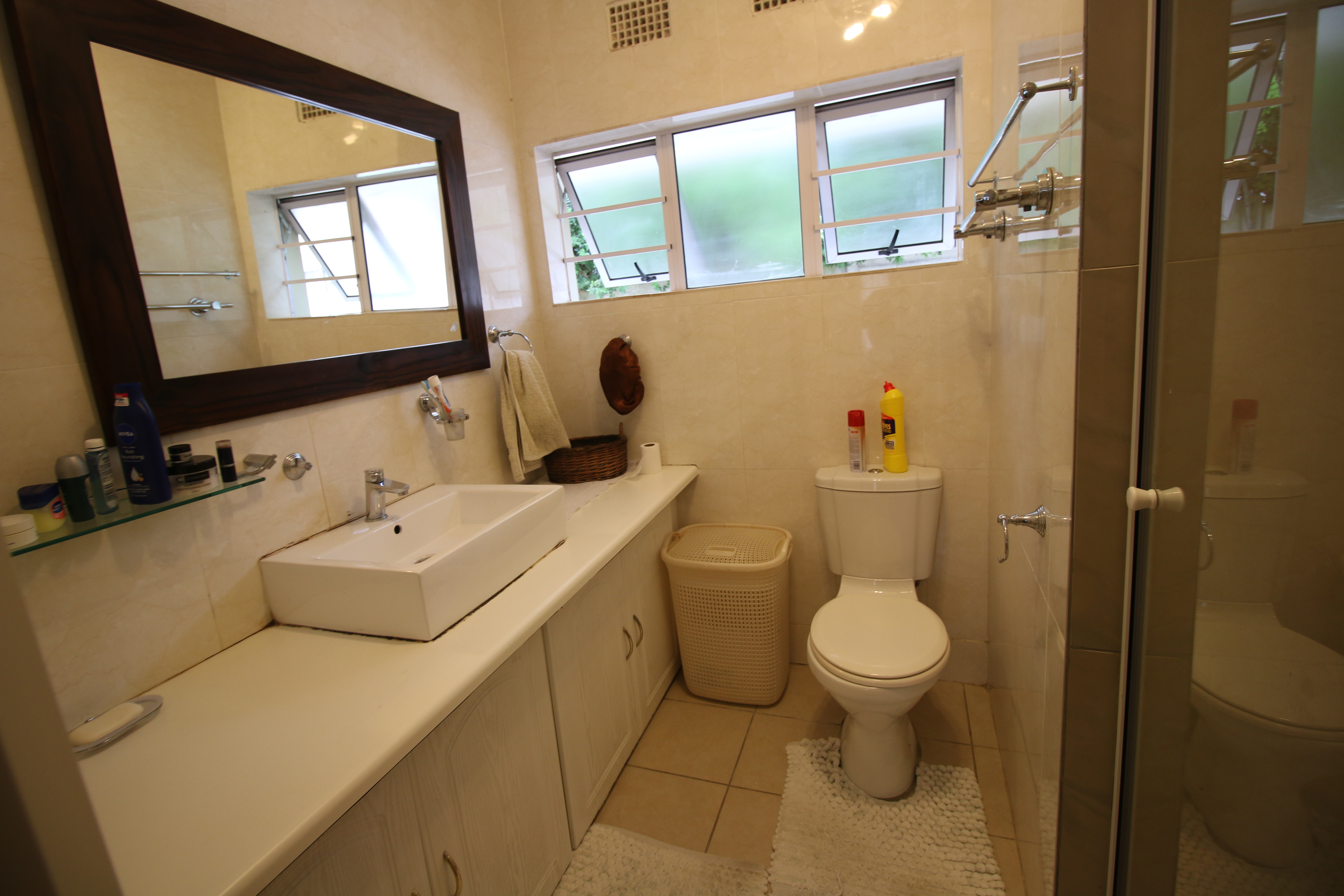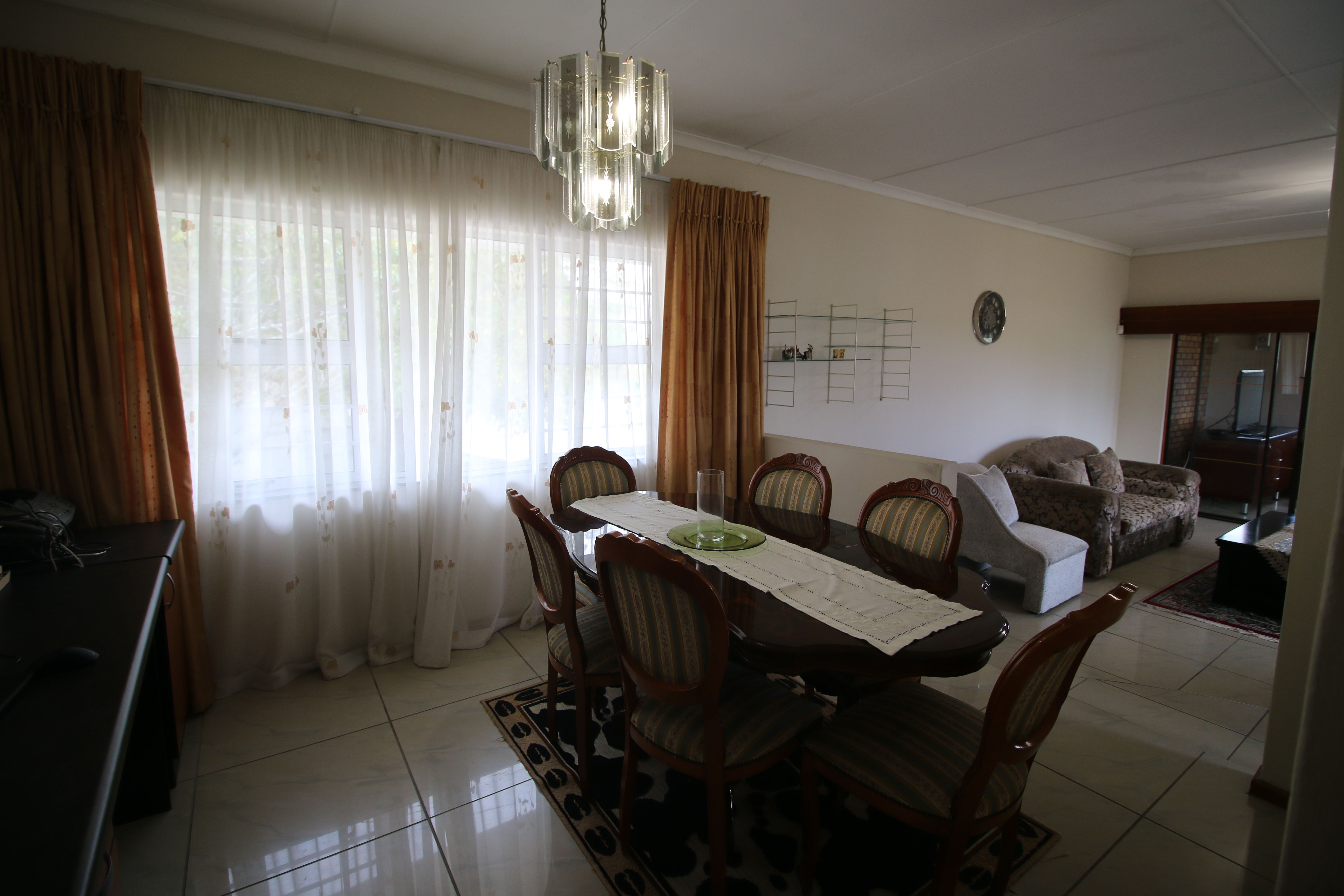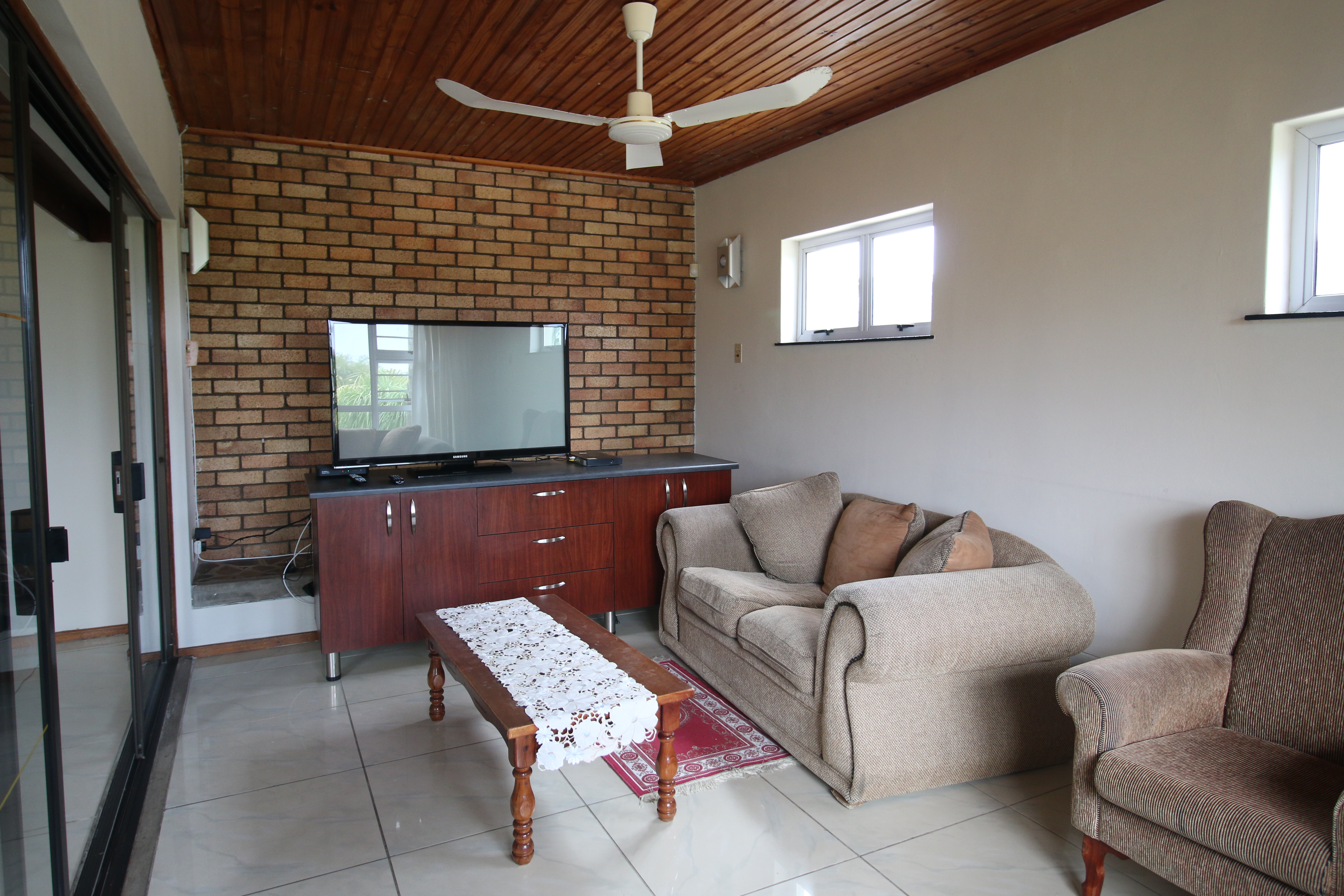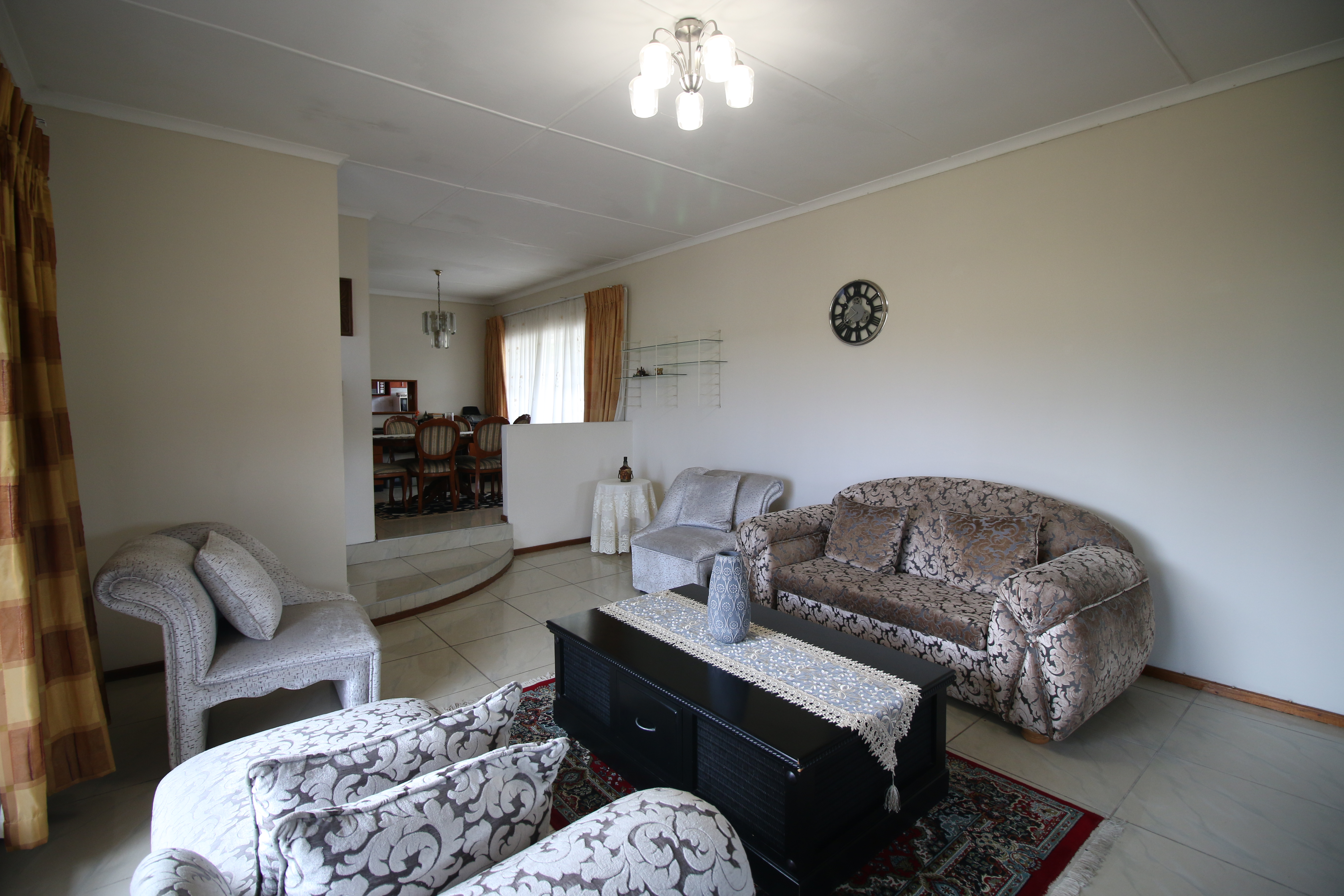 This beautiful three-bedroom home boasts two welcoming lounges, a modern kitchen, and a separate dining area. It is meticulously maintained and features aluminum windows throughout.