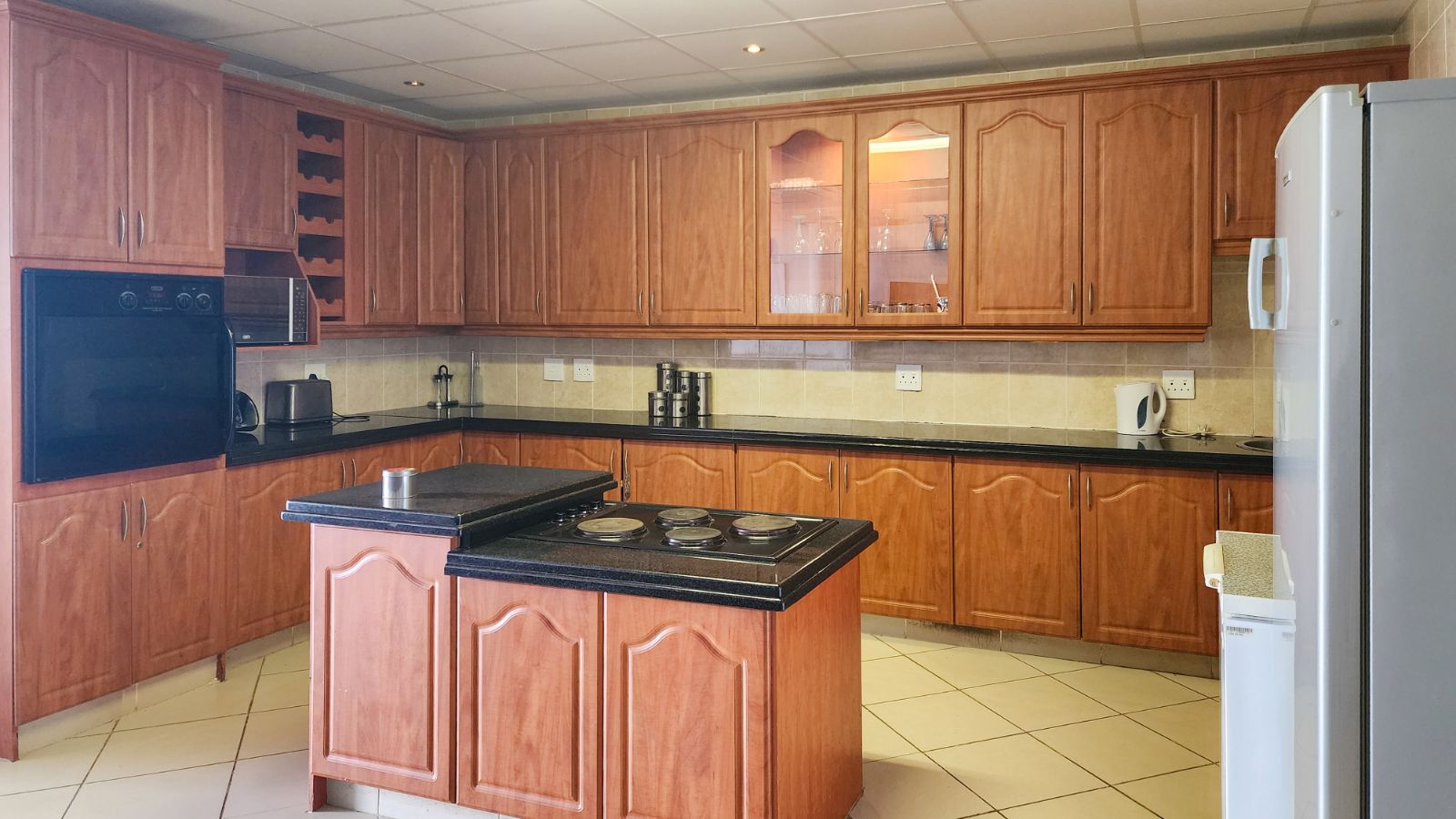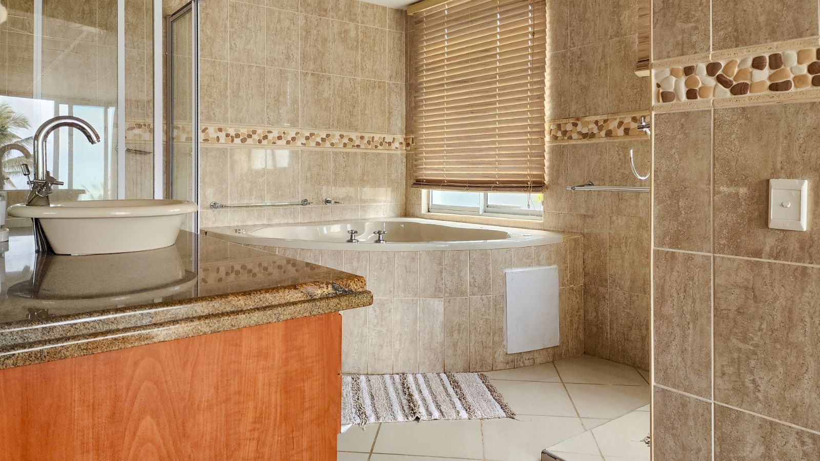 Your stay will be extra special with a main en-suite bedroom featuring a bath, shower, toilet, and basin. The home also includes three additional bedrooms and two bathrooms, perfect for family stays.