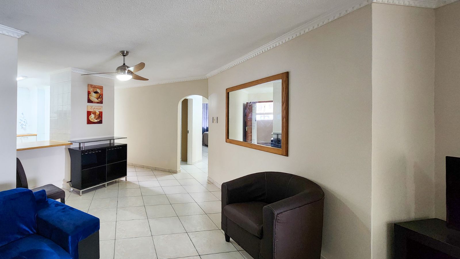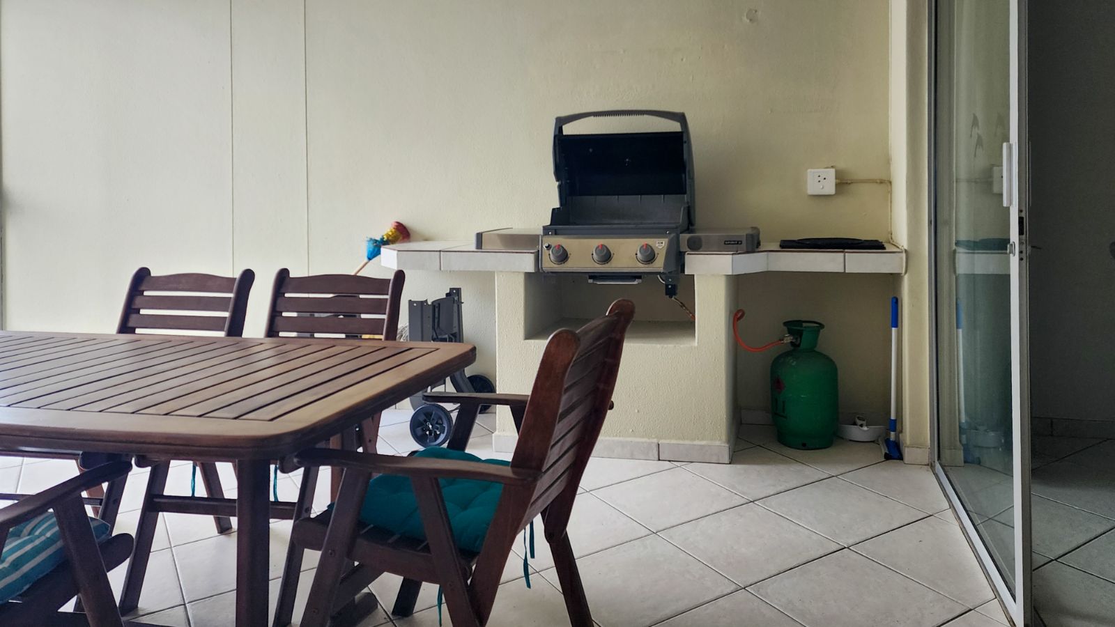 The apartment boasts three lovely bedrooms and two bathrooms to ensure everyone has their space. The first bedroom features a comfy queen-size bed and has its en-suite bathroom with a bath to soak in a washbasin, and a toilet. The second bedroom also has a queen-size bed, while the third bedroom offers a cosy double bed. There’s a shared bathroom equipped with a shower, washbasin, and toilet too. We’ll provide you with linen and bath towels, but don’t forget to bring your beach towels for all the fun at the beach!