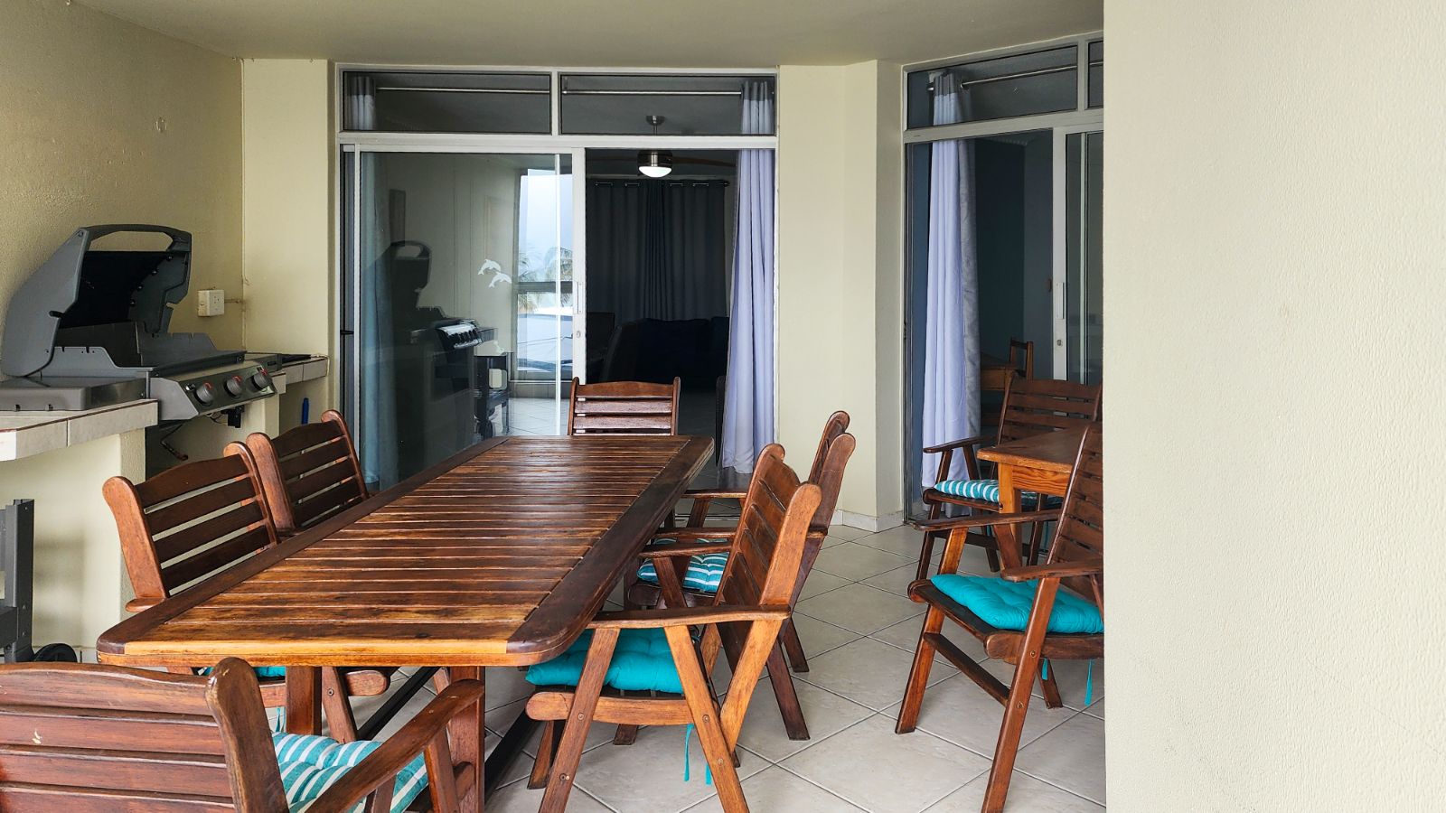 You’ll love the open-plan kitchen, which is fully equipped with everything you need, including a fridge-freezer, stove, oven, microwave, dishwasher, cutlery, crockery, and tea- and coffee-making essentials—plus a breakfast bar with stools that are perfect for morning chats. The inviting living room invites you to relax in comfy seating while enjoying your favourite shows on the Smart TV. Step out onto the spacious balcony, where outdoor furniture and a braai (barbecue) await you, all with breathtaking ocean views. And yes, we’ve got Wi-Fi access too!