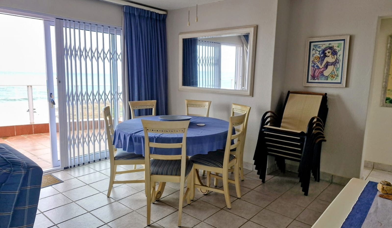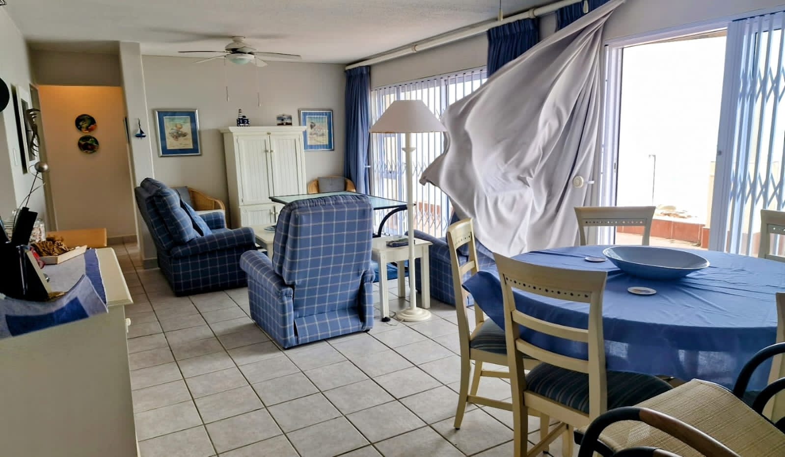 This spacious and well-kept apartment in Margate offers breathtaking sea views and comfortable coastal living. The open-plan kitchen flows into a bright lounge and dining area, leading out to a private balcony – perfect for enjoying the ocean breeze. All three bedrooms are cozy with built-in cupboards and ceiling fans. This apartment also includes an Inverter system. The main bedroom includes an en-suite bathroom and balcony access with spectacular views. A second full bathroom serves the additional bedrooms. The complex also features a sparkling communal swimming pool and a tennis court for residents to enjoy. Ideal as a holiday home, investment, or permanent residence by the sea. Note: Partly Furnished
