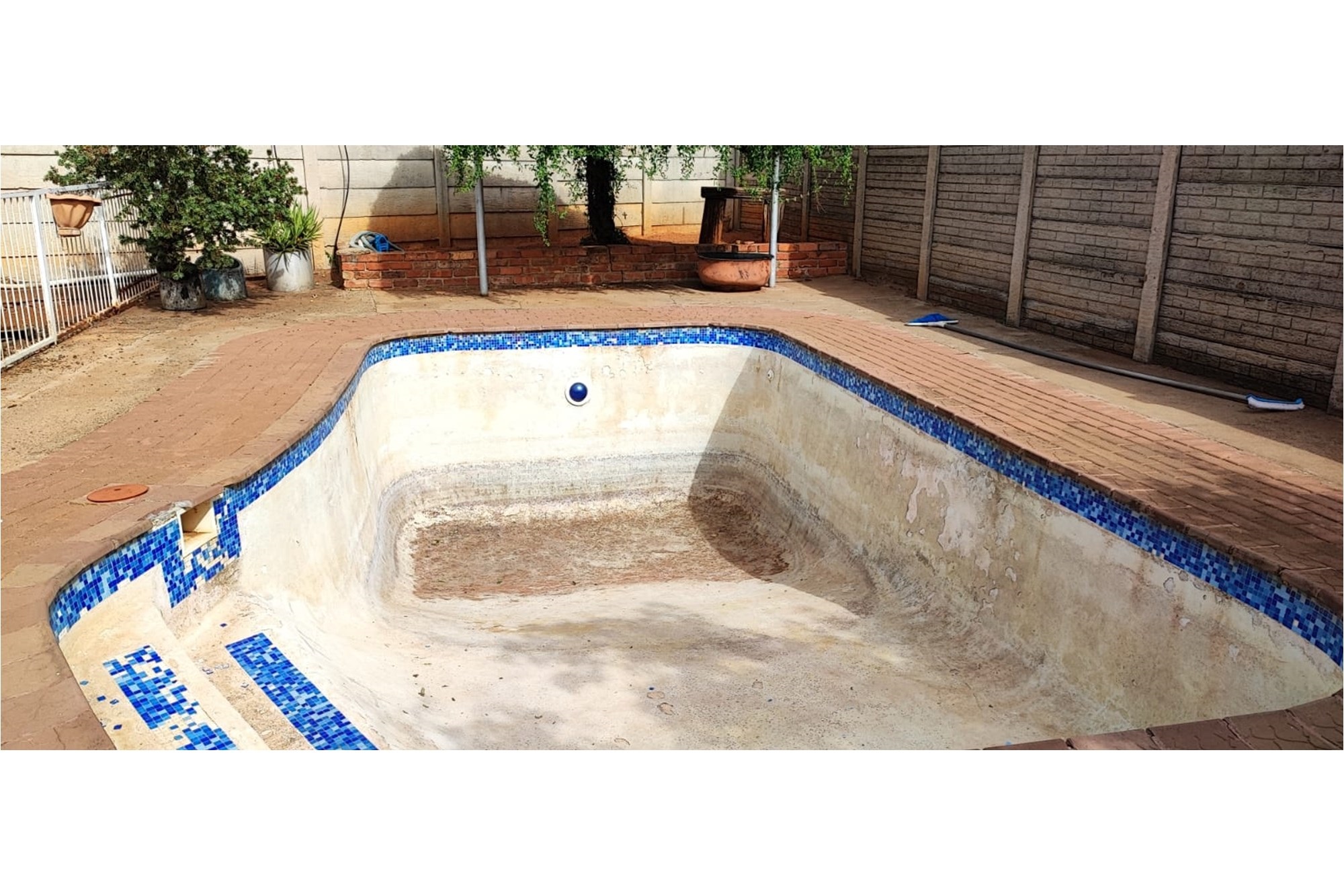 The exterior features a well-maintained garden with an irrigation system to keep it lush and vibrant. Parking is ample, with a single garage and a triple carport offering space for multiple vehicles. Swimming pool need some attention.