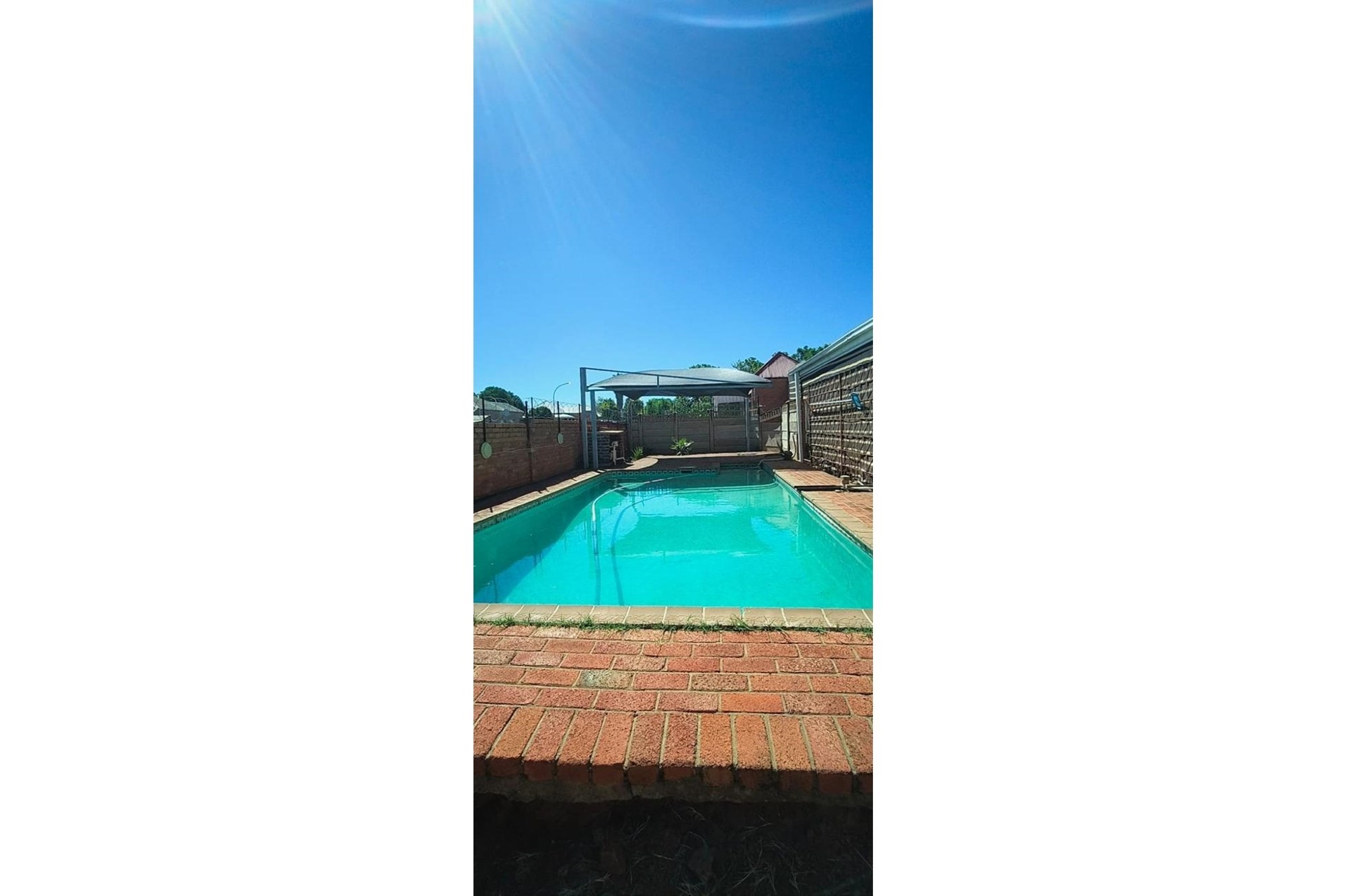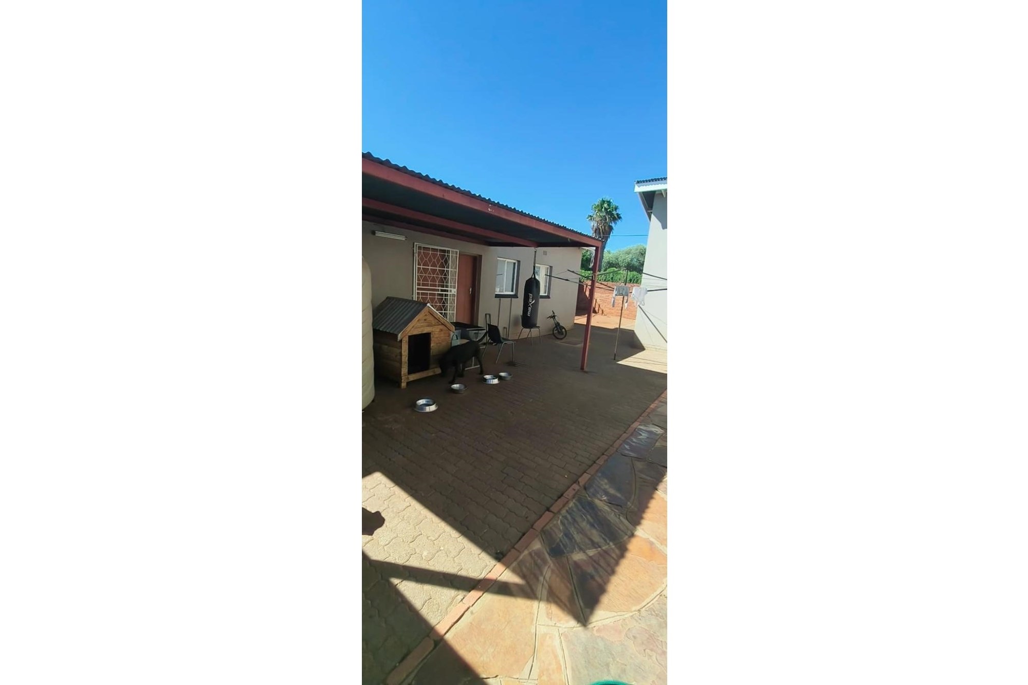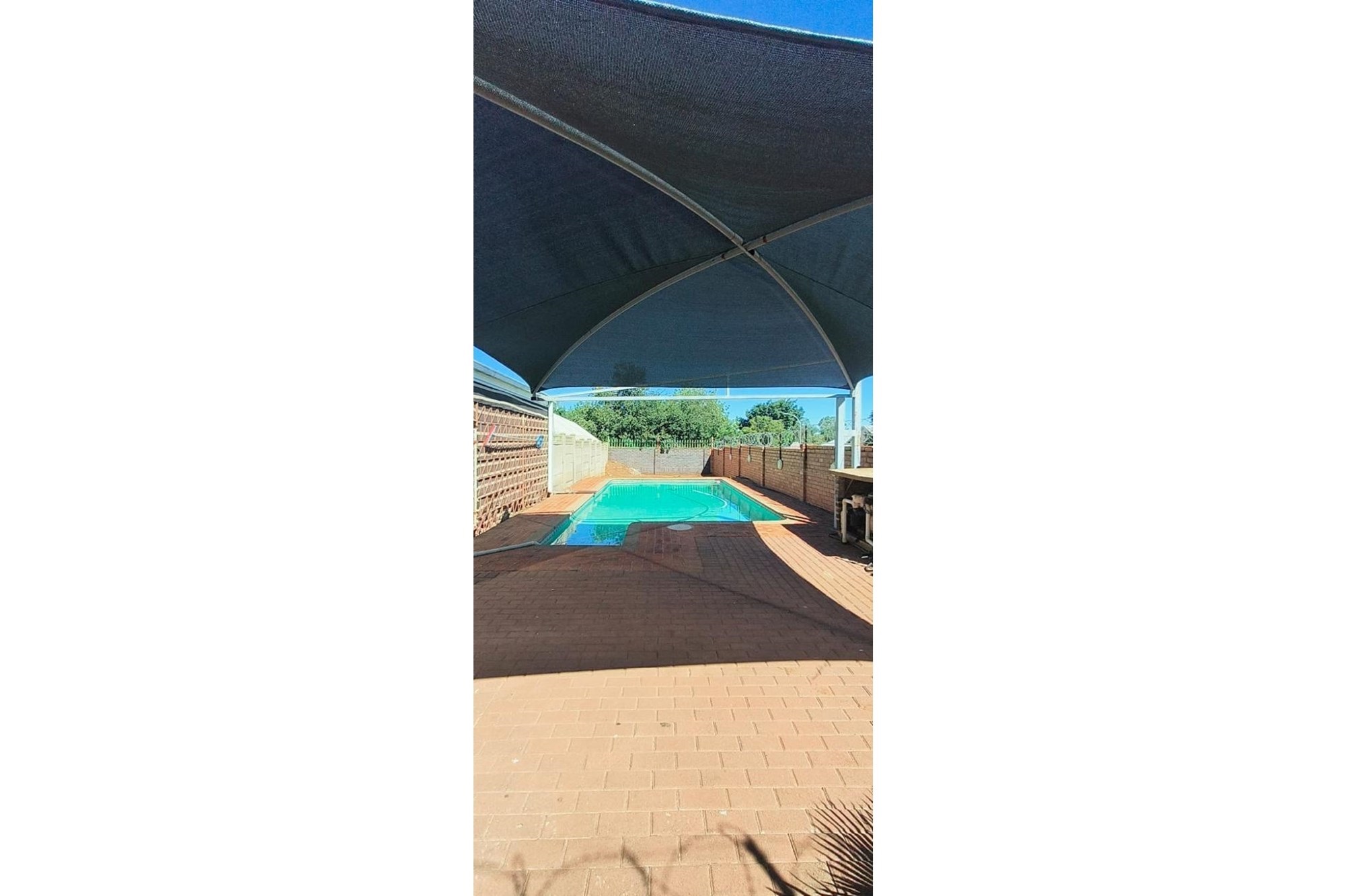 Parking is a breeze with a single garage and a shade net-covered area accommodating up to six vehicles. Additional conveniences include an outside toilet and robust security features, including a fenced perimeter, electric fencing, and burglar bars.