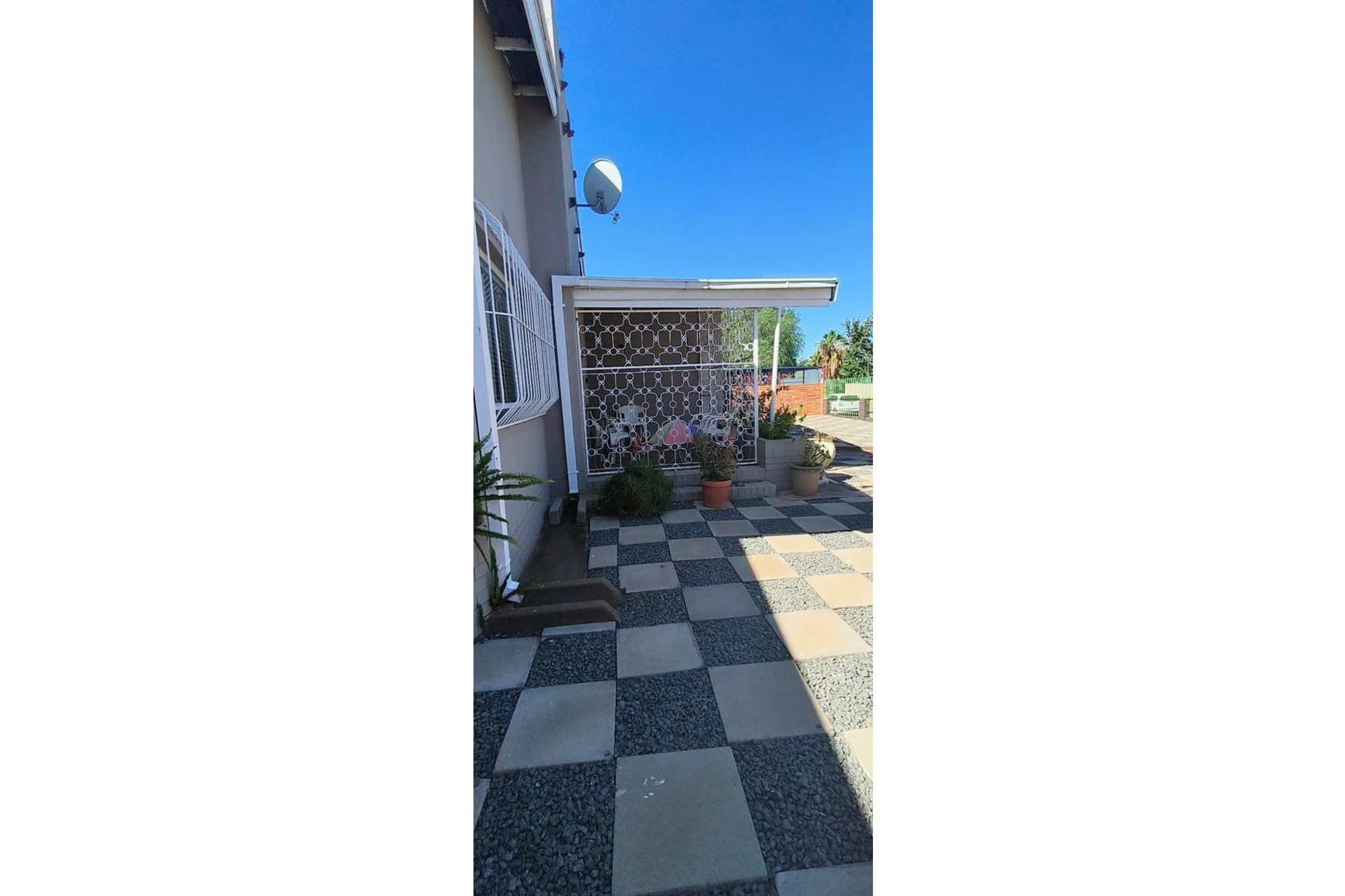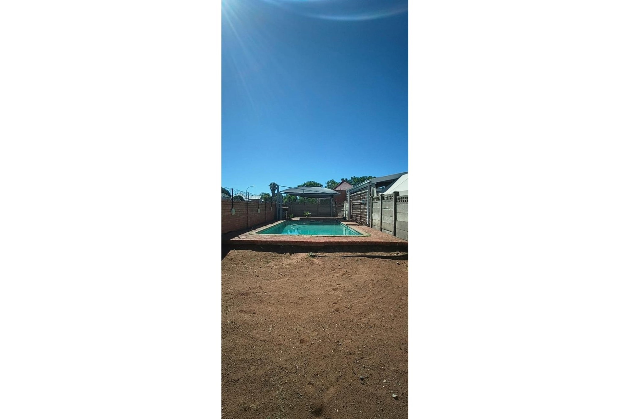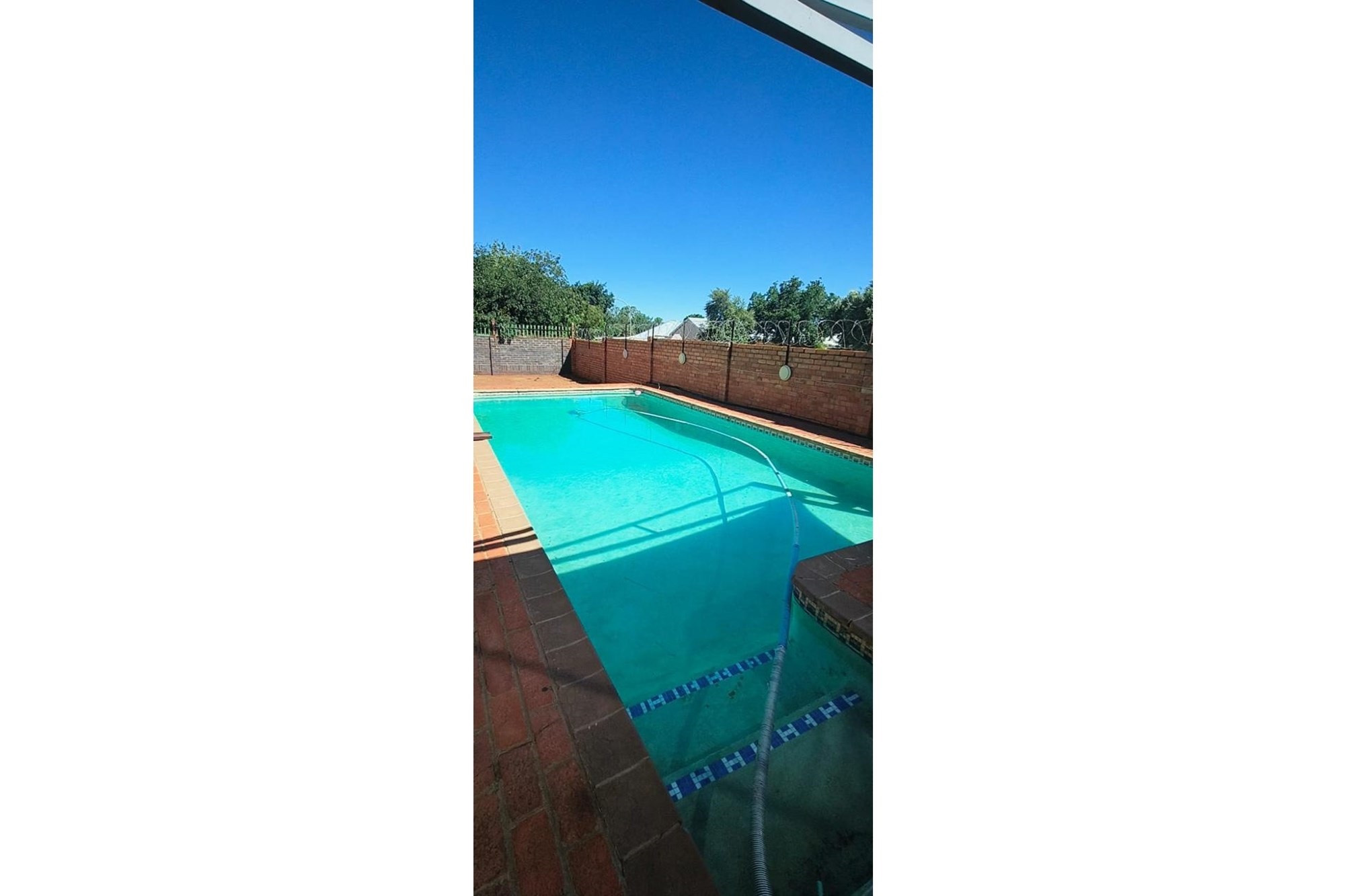 Parking is a breeze with a single garage and a shade net-covered area accommodating up to six vehicles. Additional conveniences include an outside toilet and robust security features, including a fenced perimeter, electric fencing, and burglar bars.