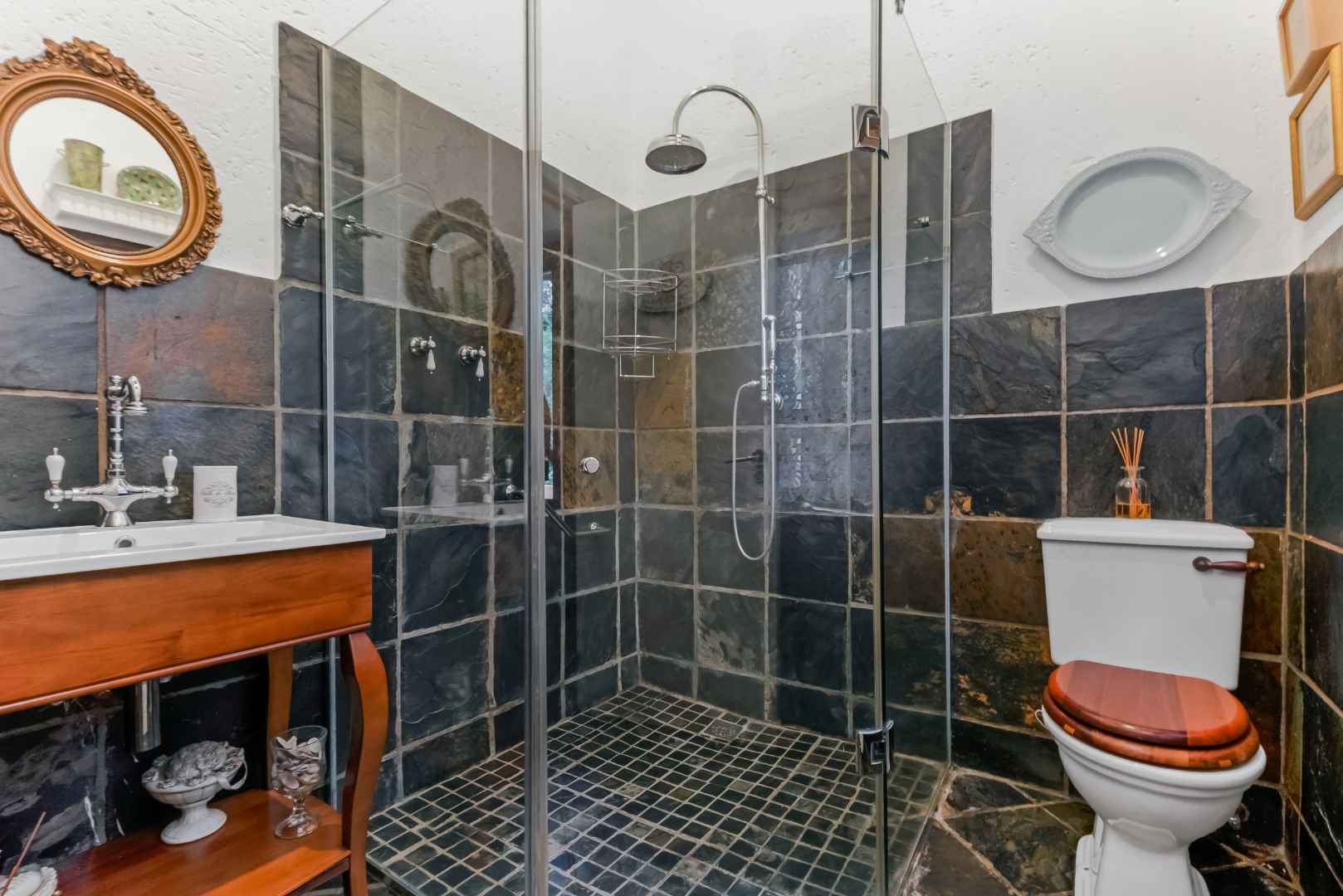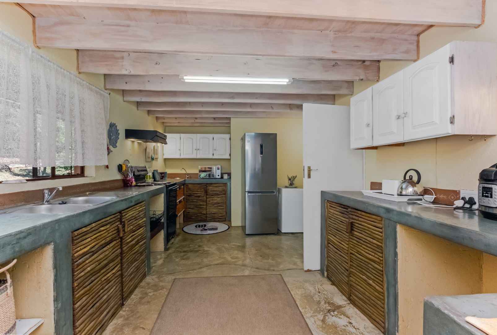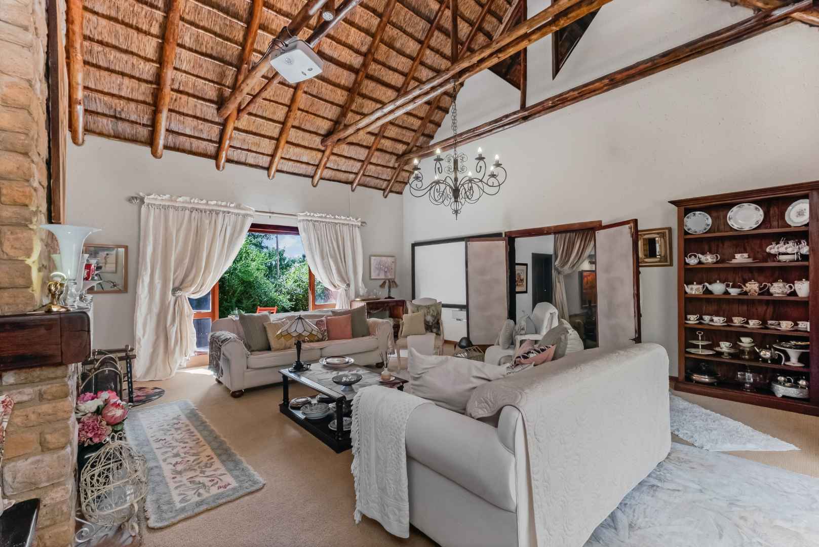This vast, well-maintained property offers the following: African blue slate, wooden windows and railway sleeper lintels throughout the main residence, double automated garage with loft / workshop which has direct access into the home, covered carports to accommodate 8 vehicles on the property, solar PV (2x10.65KWH batteries, 8.8 KWH invertor, 7.4 KWH x 16 solar panels), heat pump providing 525 litres hot water through 3 geysers, prepaid electricity, electric fence plus alarm system, 2 french drains plus septic tank, double staff accommodation with small kitchenette, plus the home and cottage is fibre enabled.