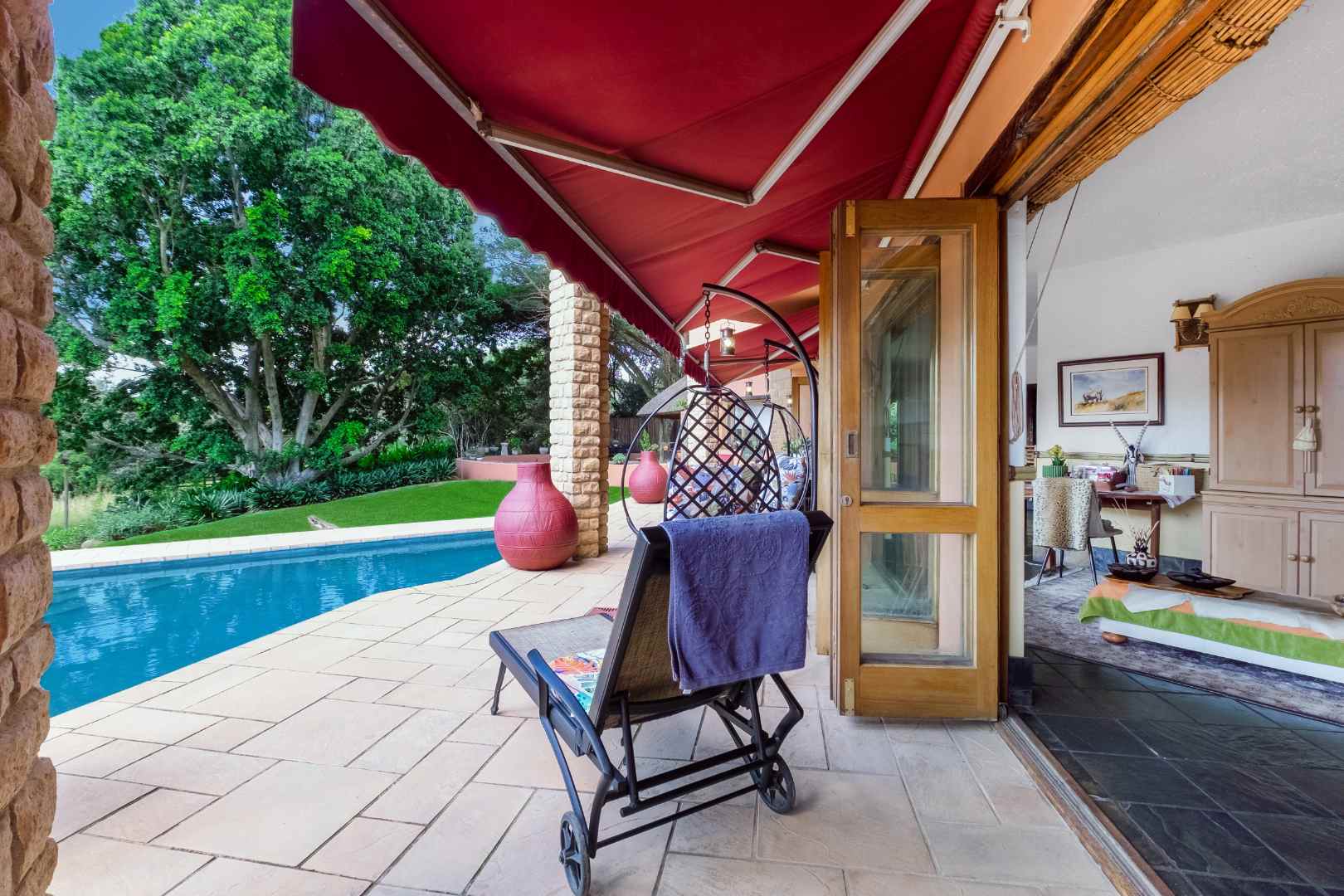 The established garden boasts a bush-style boma with gas braai and open fireplace in the centre, creating the perfect setting for unforgettable evenings. The property welcomes abundant birdlife throughout the year, which offers a great sense of peace and solitude away from the hustle and bustle of busy Johannesburg life.