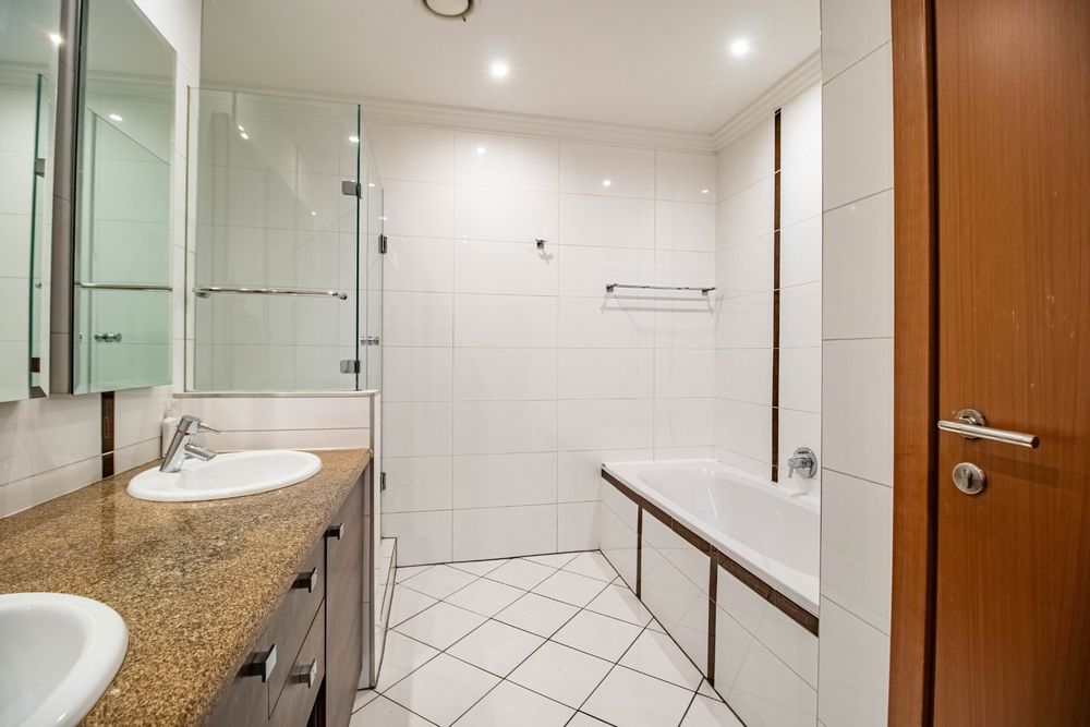 Modern and Stylish, the interiors are designed for comfort and elegance. Tiled apartment with laminated floors in the bedrooms, provide a blend of warmth and ease of maintenance. The en-suite bathroom features a double vanity, shower, and a bathtub, perfect for relaxation after a long day.