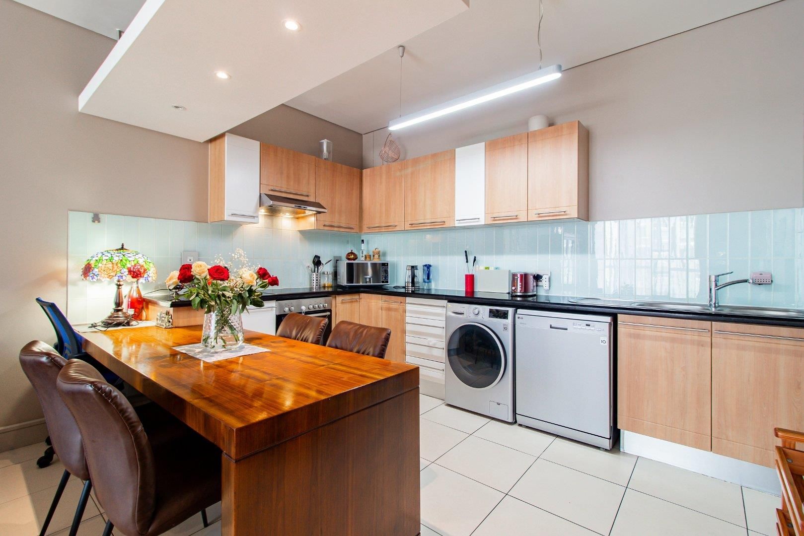 The heart of this apartment is the spacious kitchen, which includes a built-in dining area. This open-concept design allows for seamless transitions between cooking, dining, and relaxation, making it a perfect space for hosting family and friends. The kitchen features high-quality appliances, ample counter space, and and space for 2 appliances and a fridge/freezer.