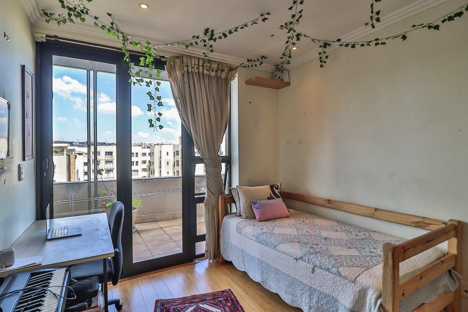 The lounge and all bedrooms lead out onto the spacious balcony overlooking the gardens from the top floor.